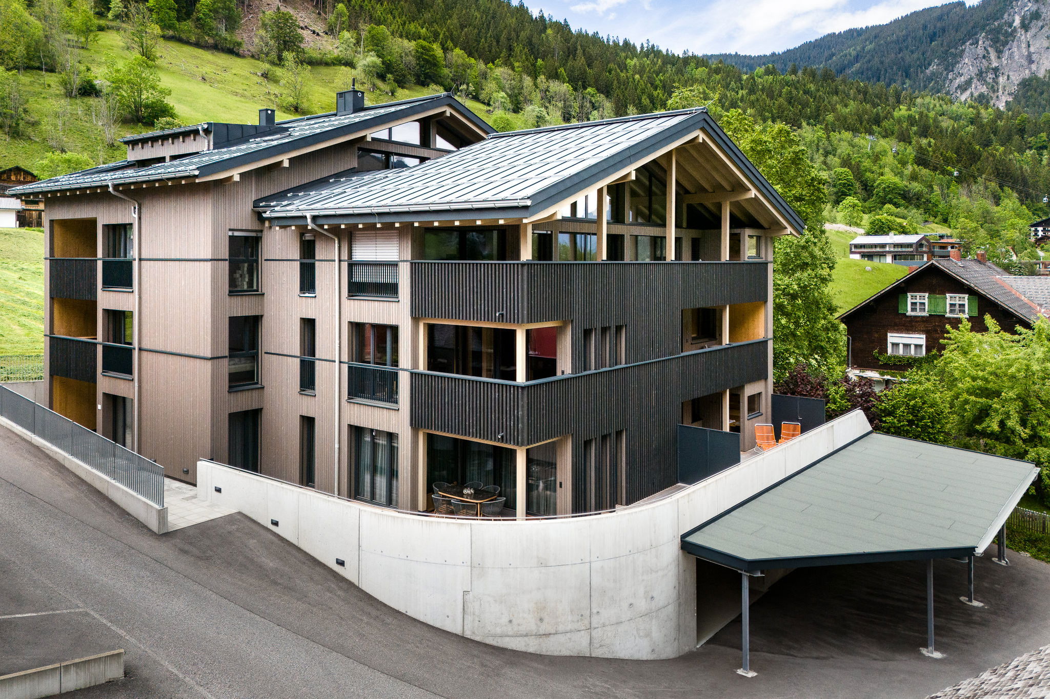 The deep and very spacious terrace is aligned in two directions and guarantees sun in the morning and in the afternoon, as far as the mighty peaks of the Rätikon allow.