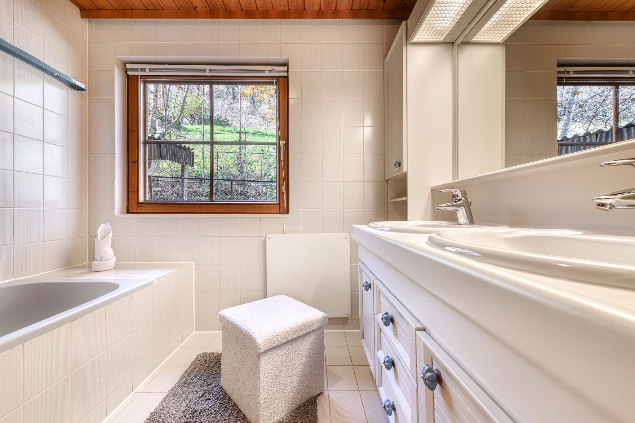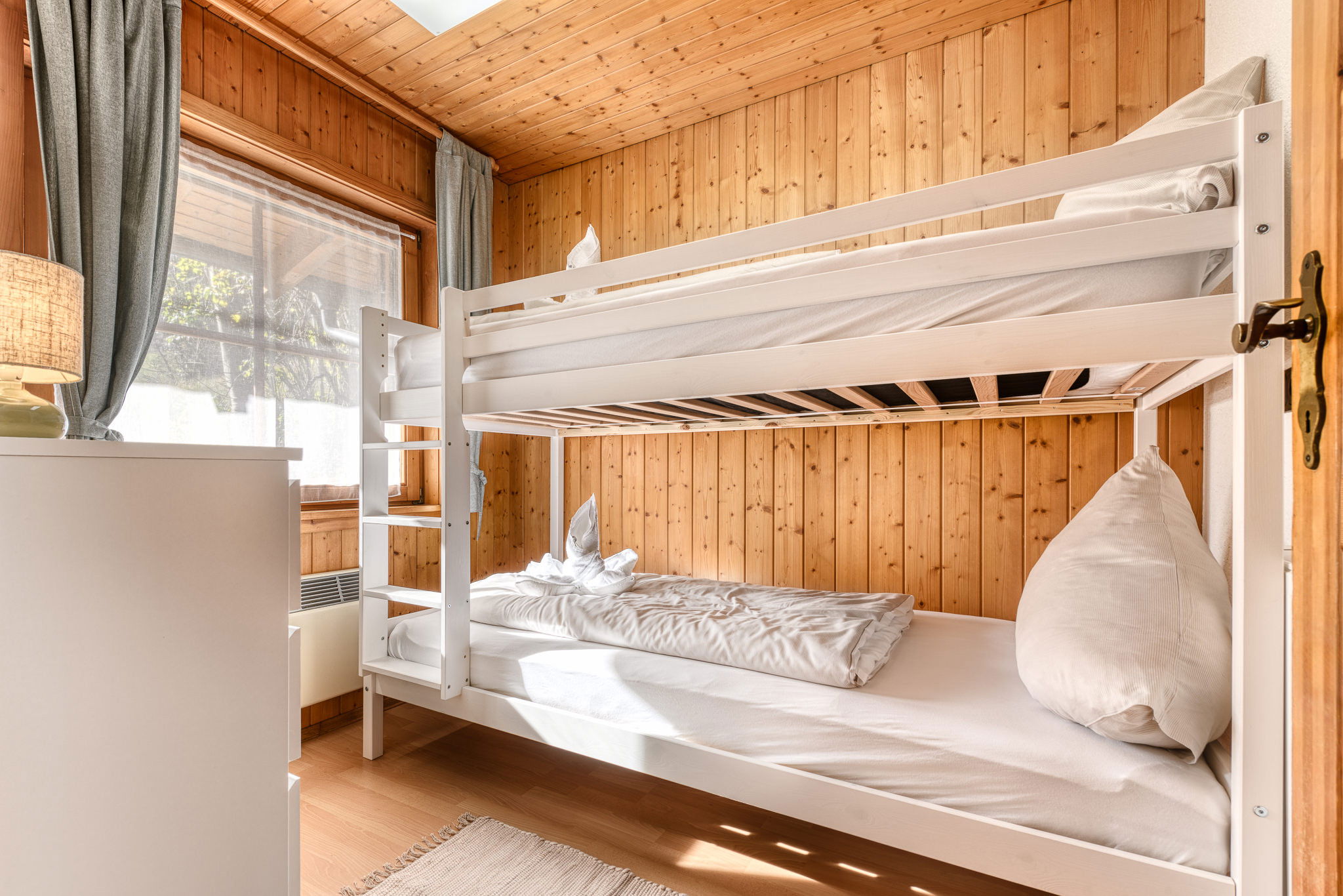 Upstairs you will find two bedrooms: a large double room and a room with bunk beds - ideal for children. There is also a double sofa bed in the upper living room. A spacious bathroom with bathtub and double washbasin offers you additional comfort.