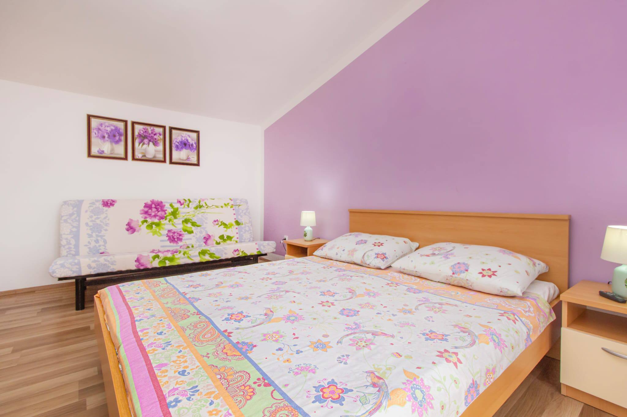 Discover a charming 60 m² apartment in the picturesque coastal village of Tribunj, perfectly suited for families and small groups. This cozy accommodation comfortably sleeps up to 6 guests with a thoughtful bedroom configuration. One bedroom with queen size double bed and one extra bed, and the second bedroom with two single beds and one extra bed.