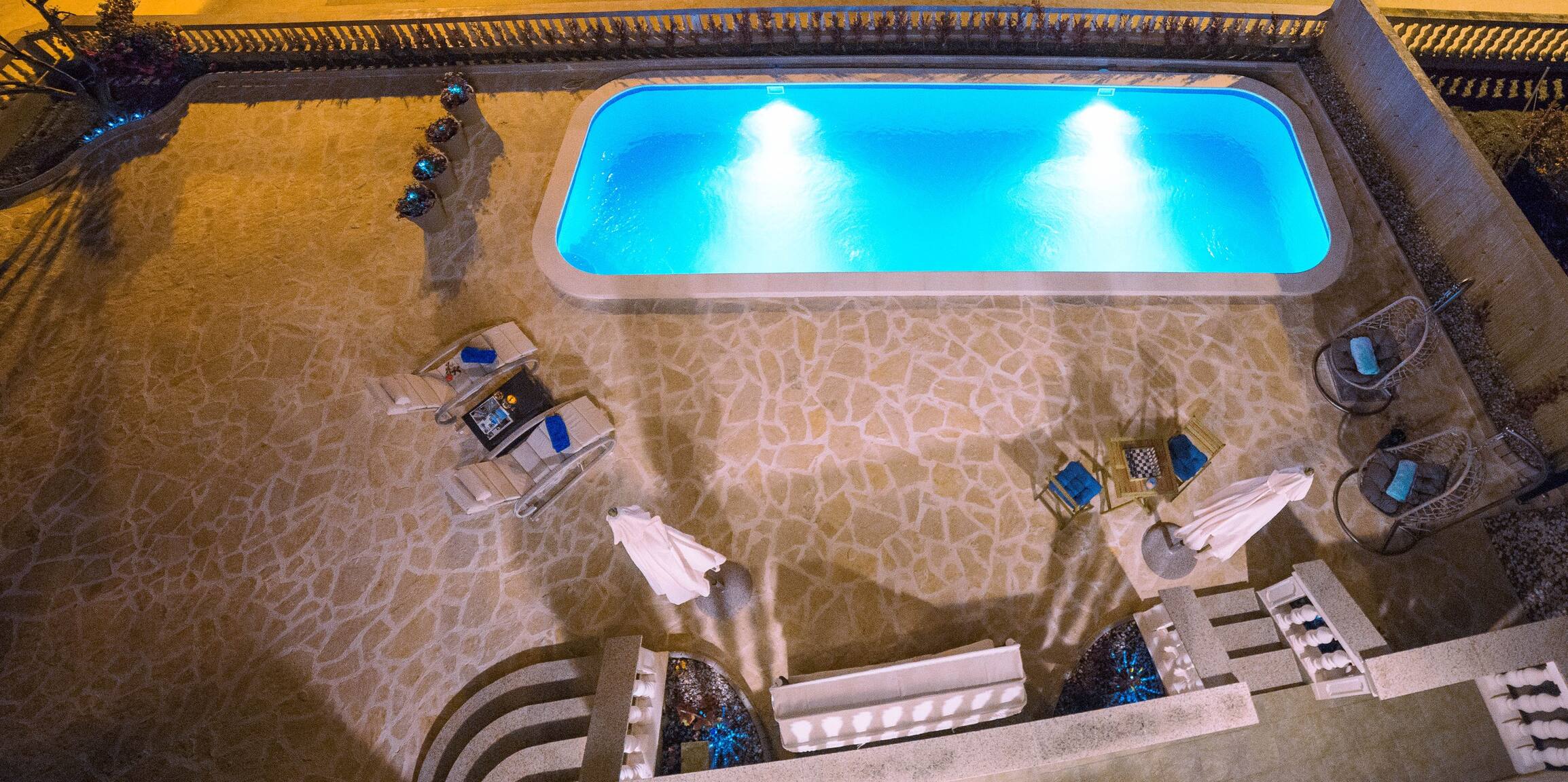 Outdoor pool. The size of the pool is 10x3 and the depth is 1.5 meters. It is not heated.