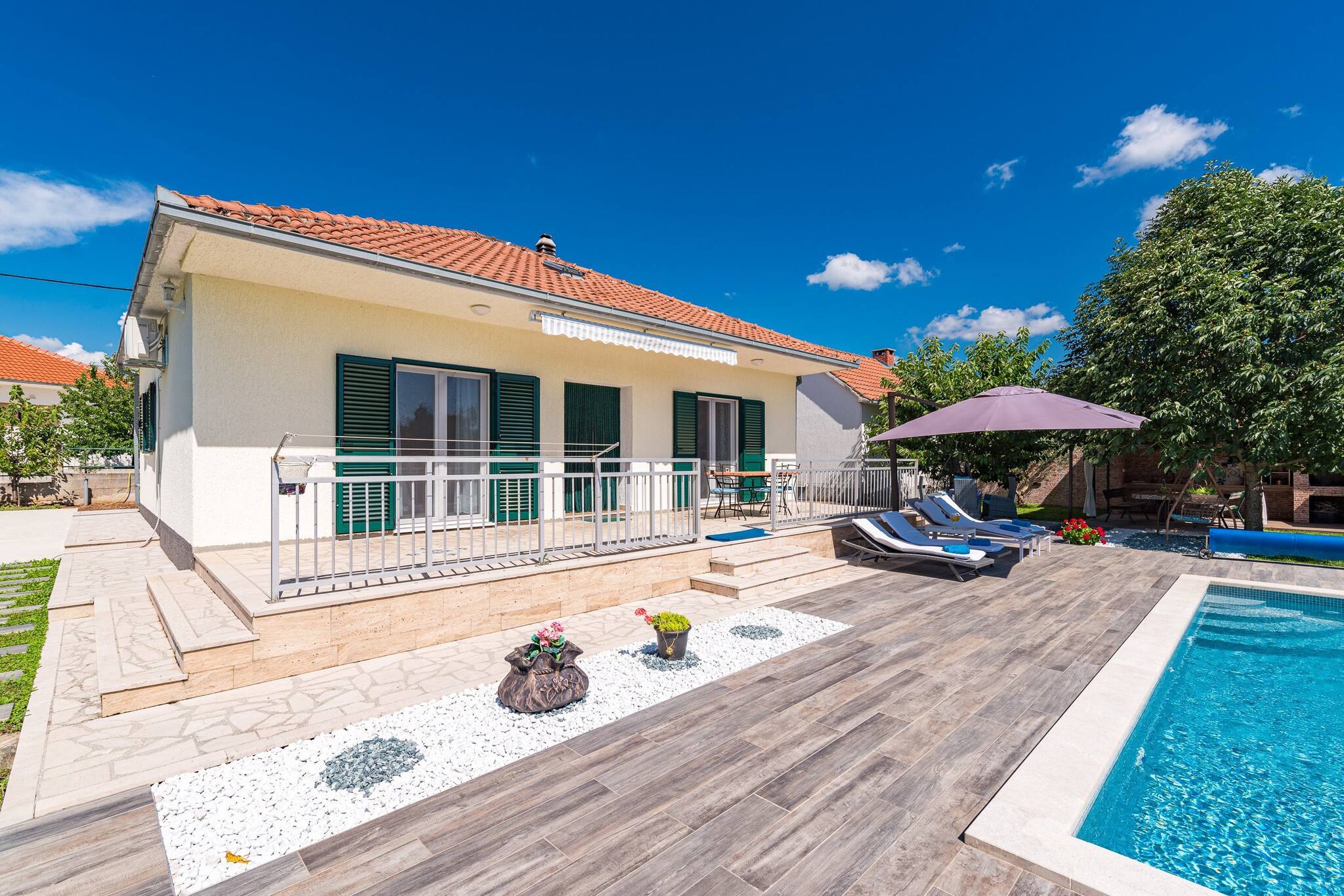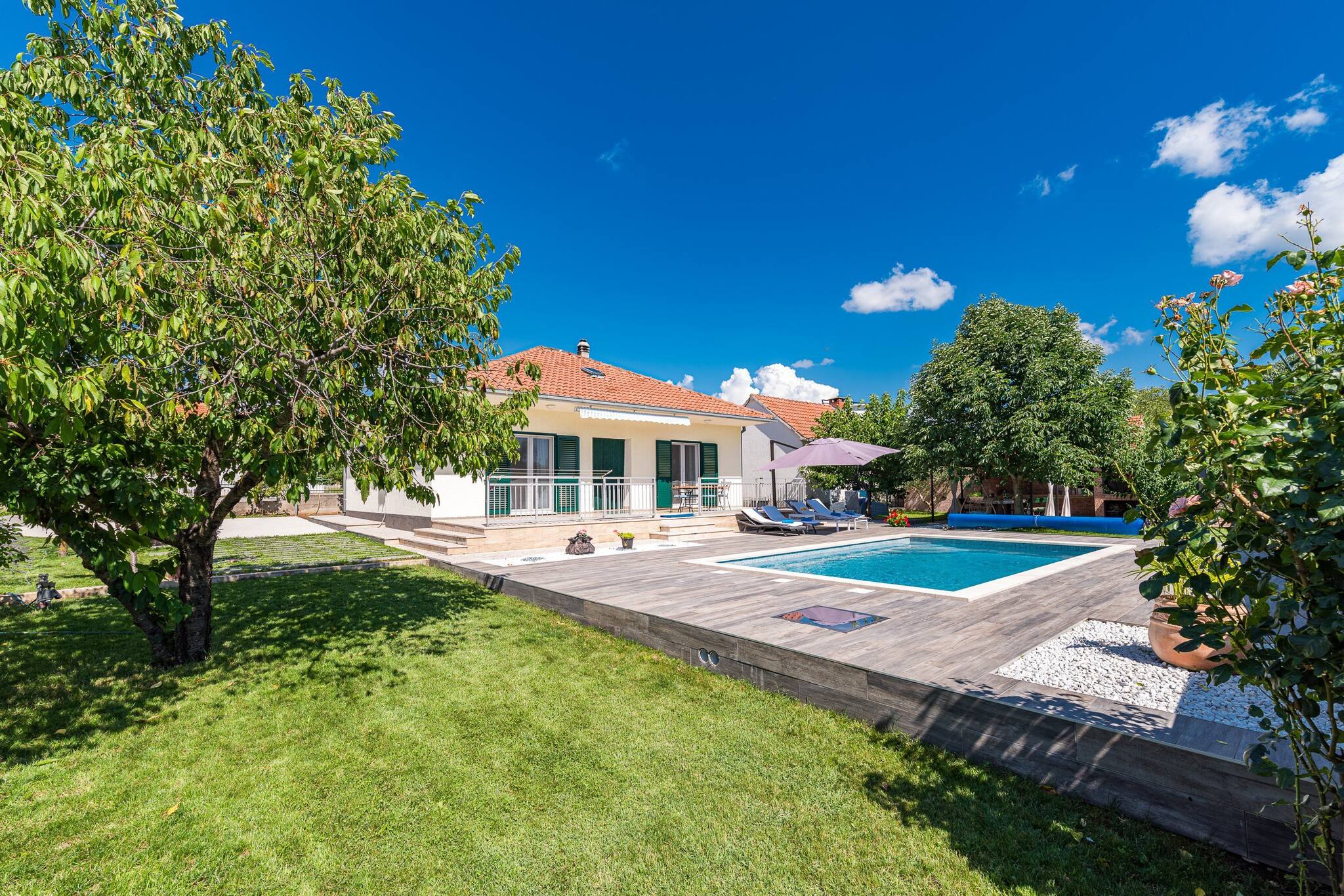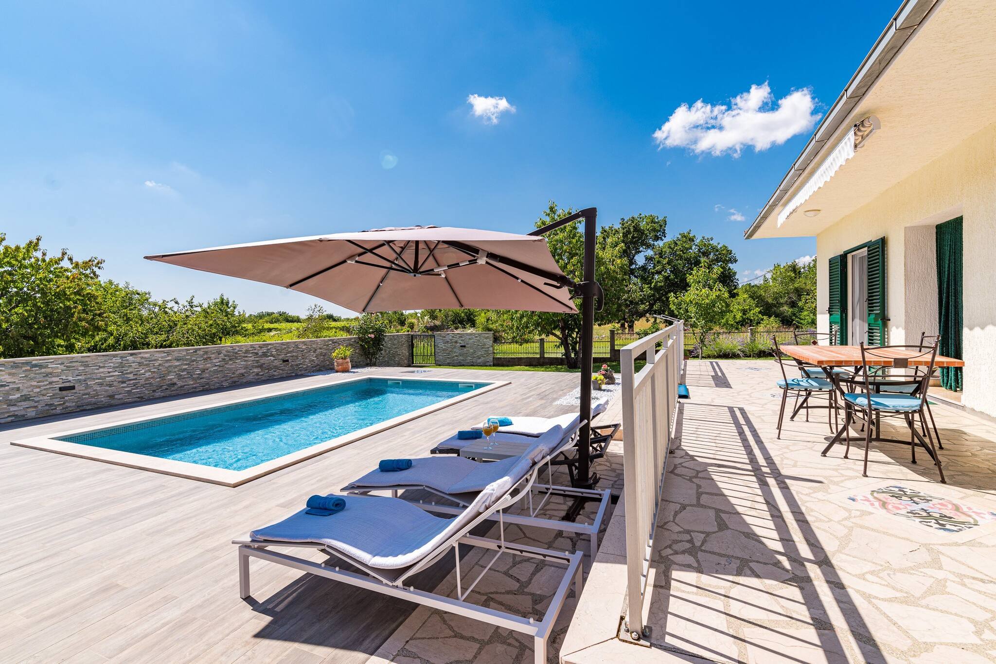 The property is situated in an ideal location for families, with a range of attractions and activities nearby. Guests can explore the nearby Krka National Park, visit the Aquapark Dalmatia, or enjoy a meal at the nearby Seosko gospodarstvo Sv. Jure restaurant. The property also offers stunning views of the pool and garden.