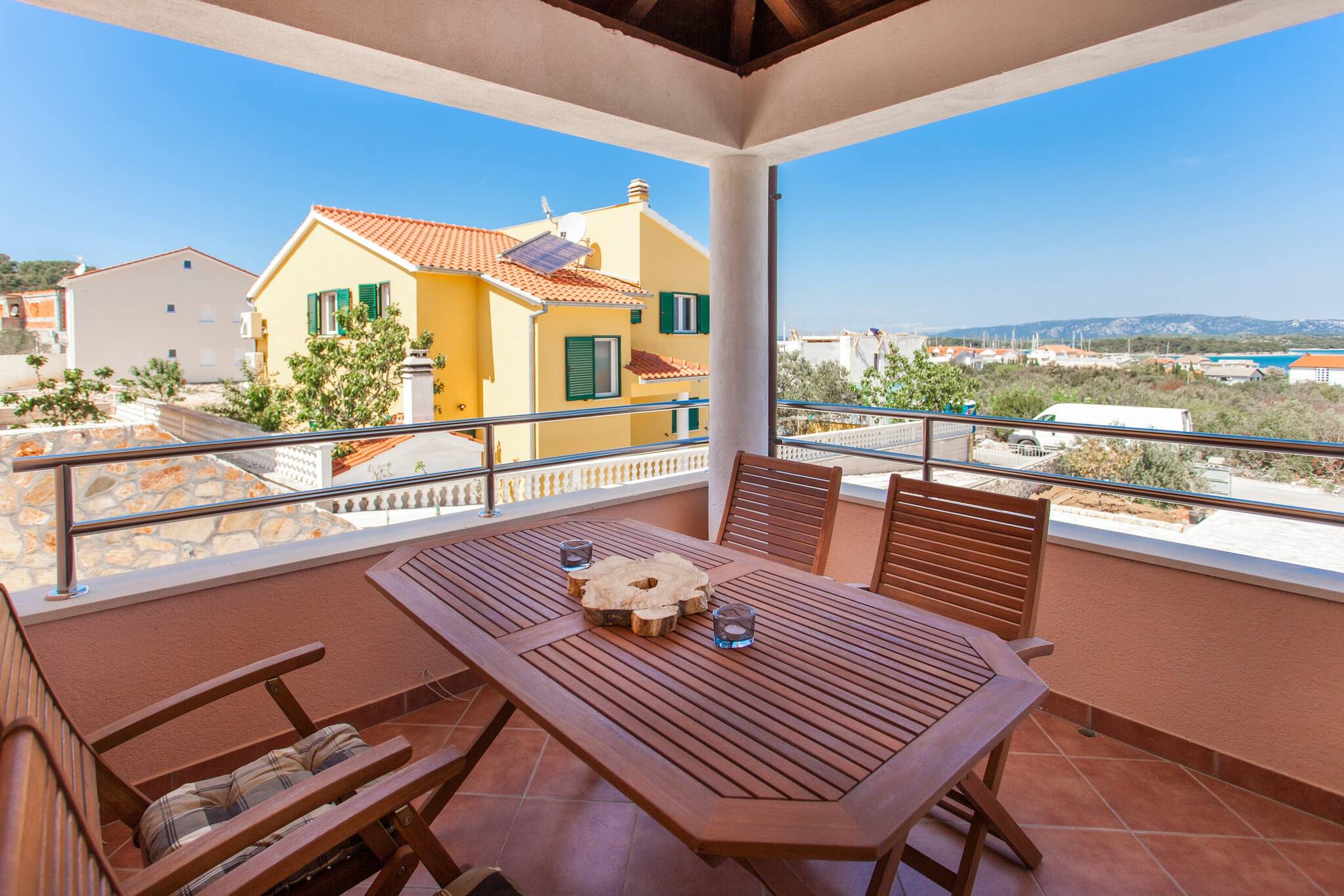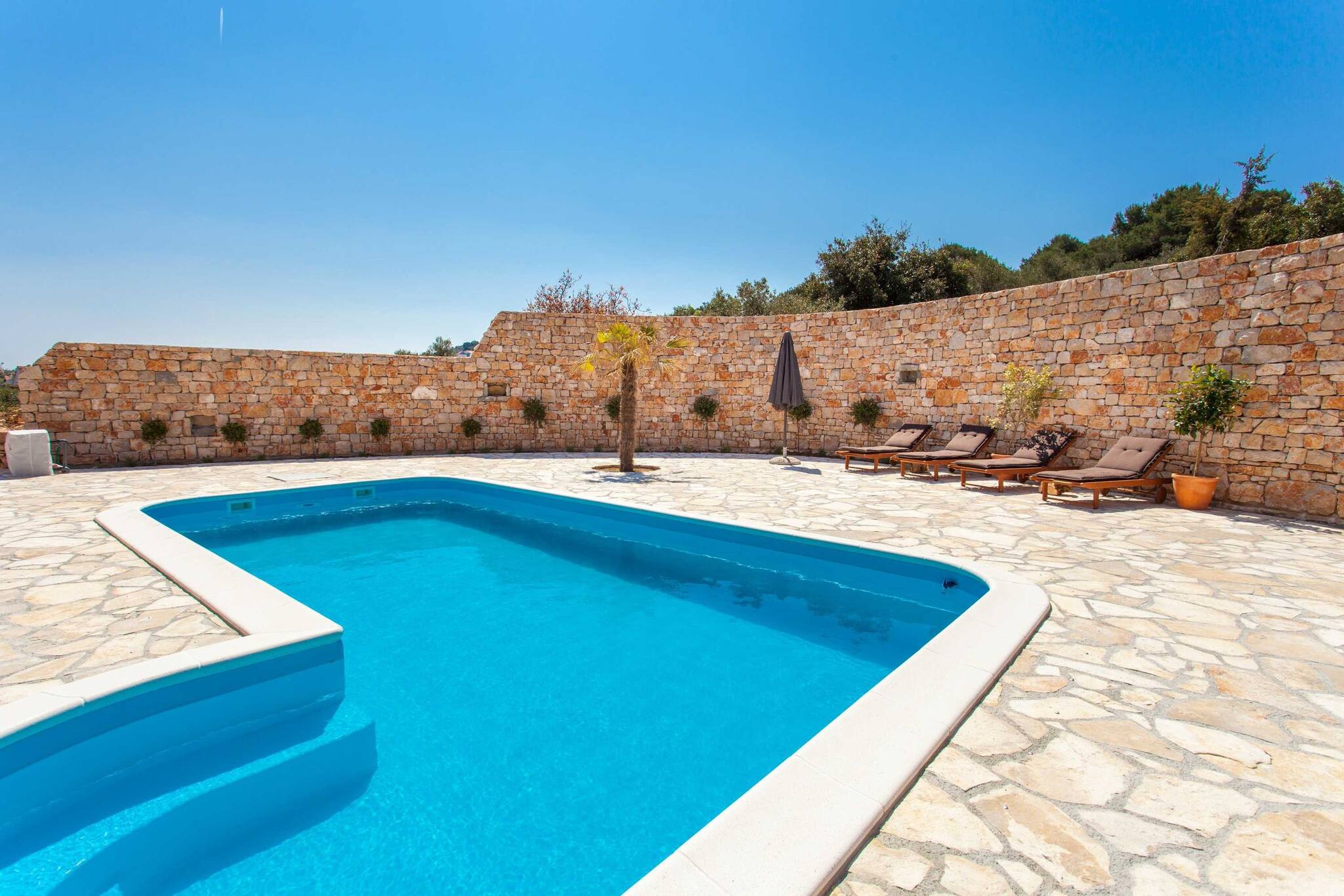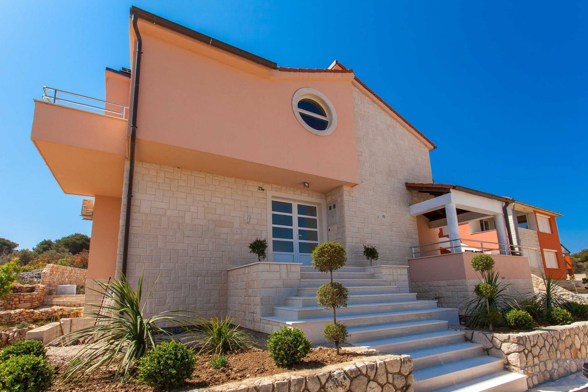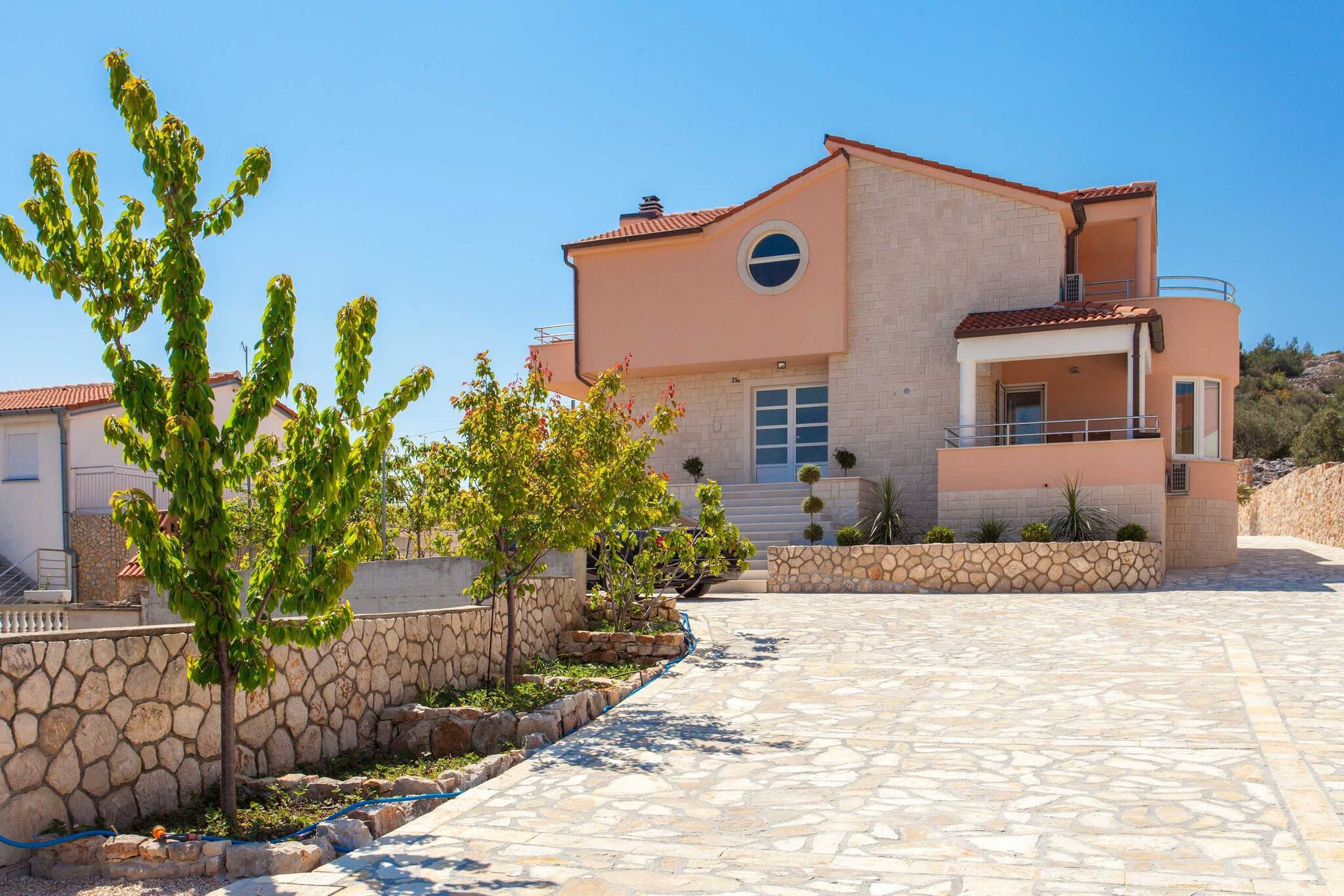 Villa Roza is located in Murter. It features WiFi, Air conditioning and flat screen smart and sat TV. There is also a yard, BBQ facilities, outdoor pool and gym. House has kitchen, dining area, living room four bedroom, three bathroom, balcony and terrace.