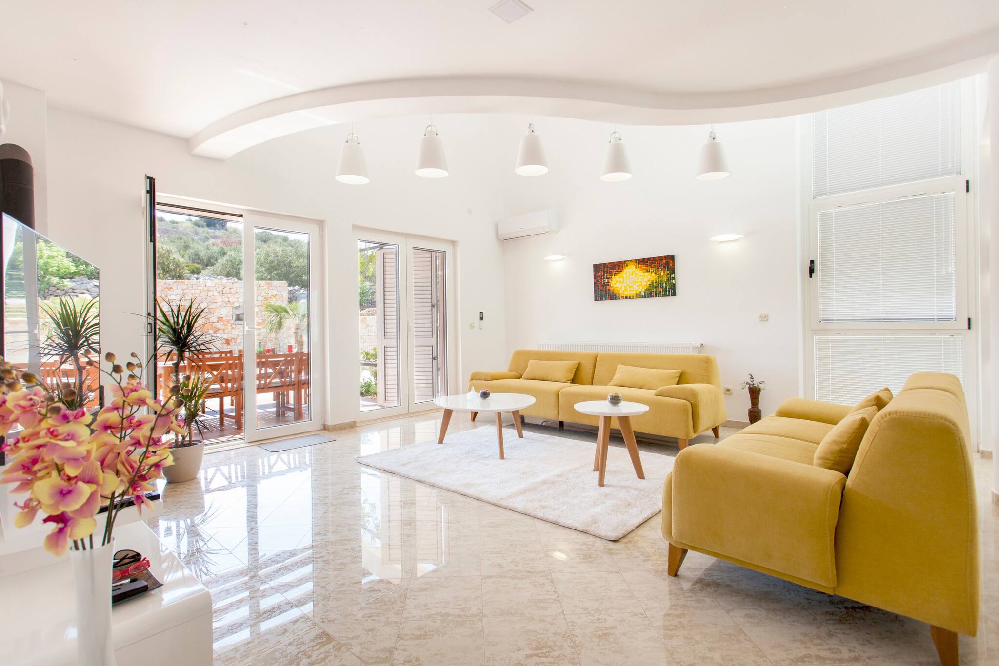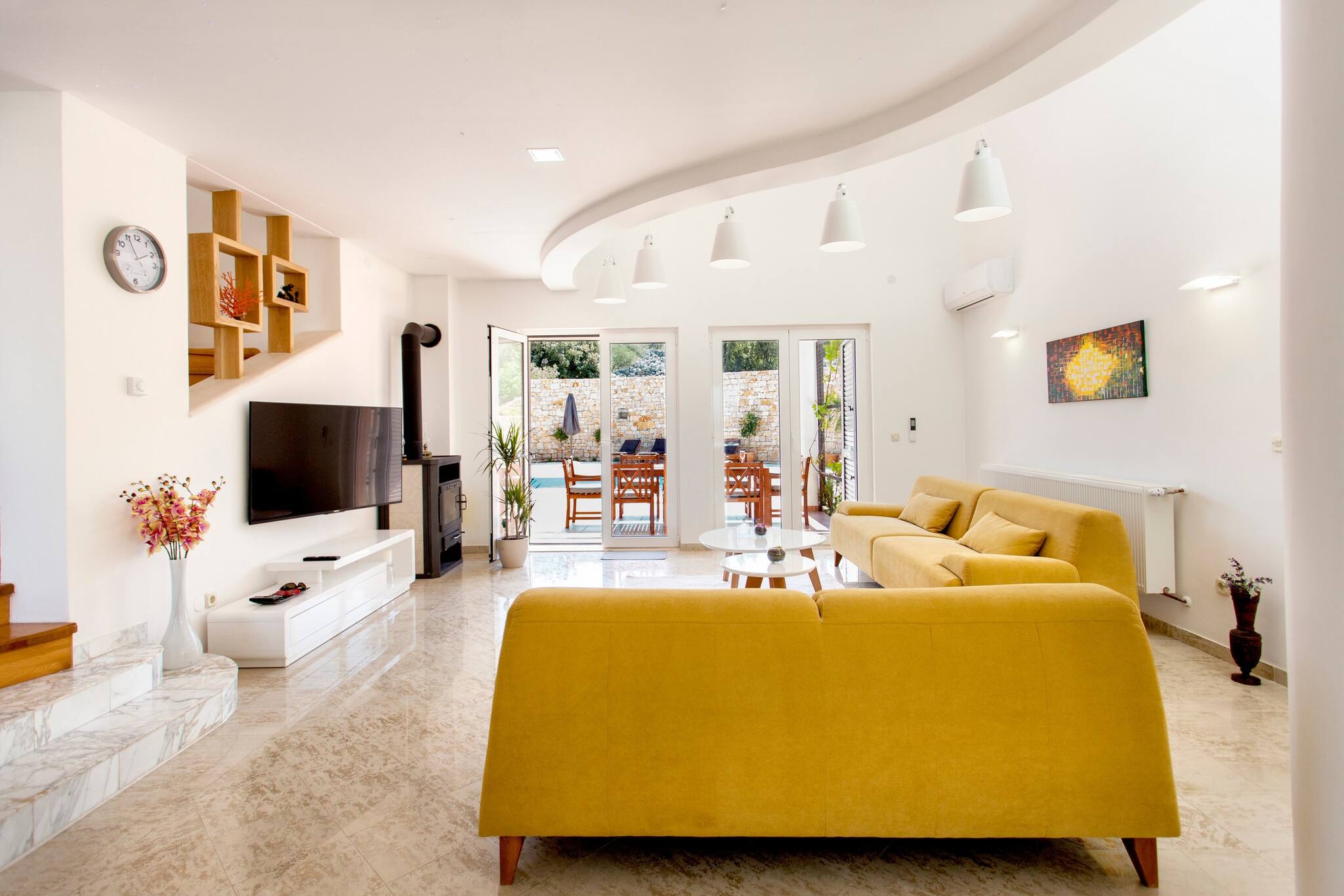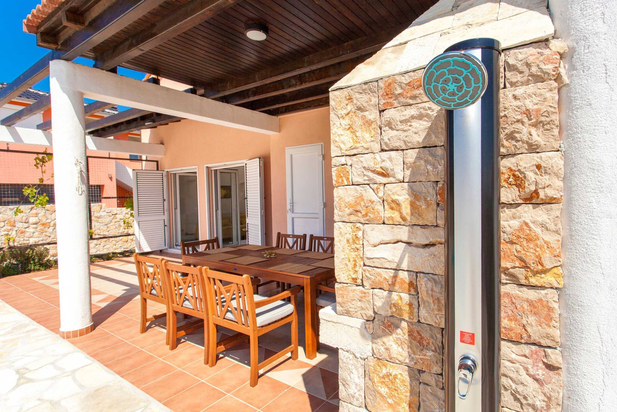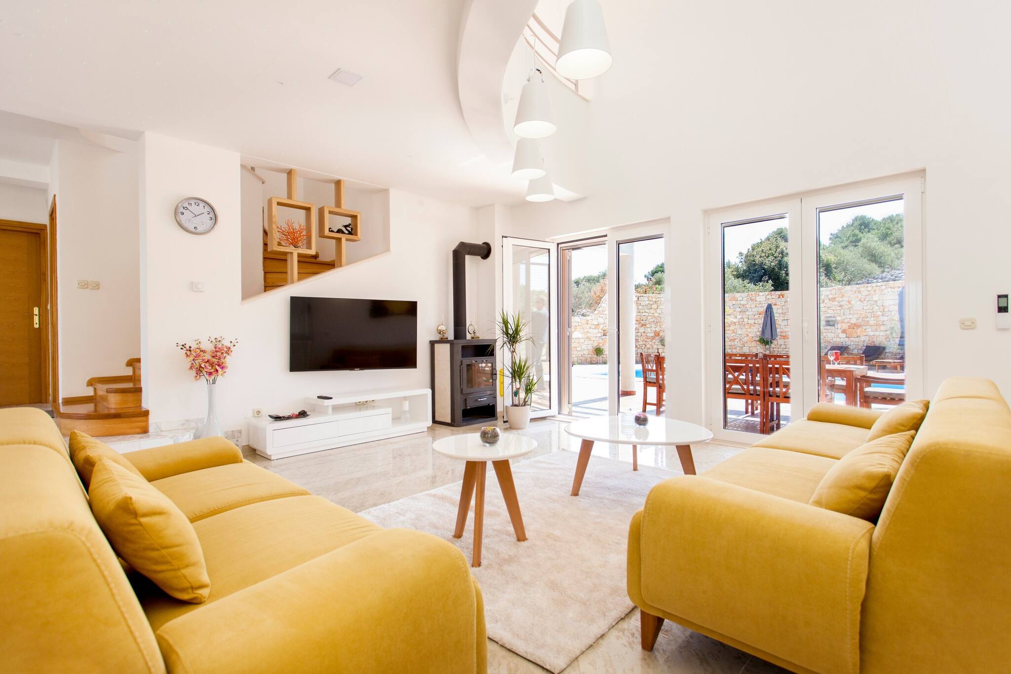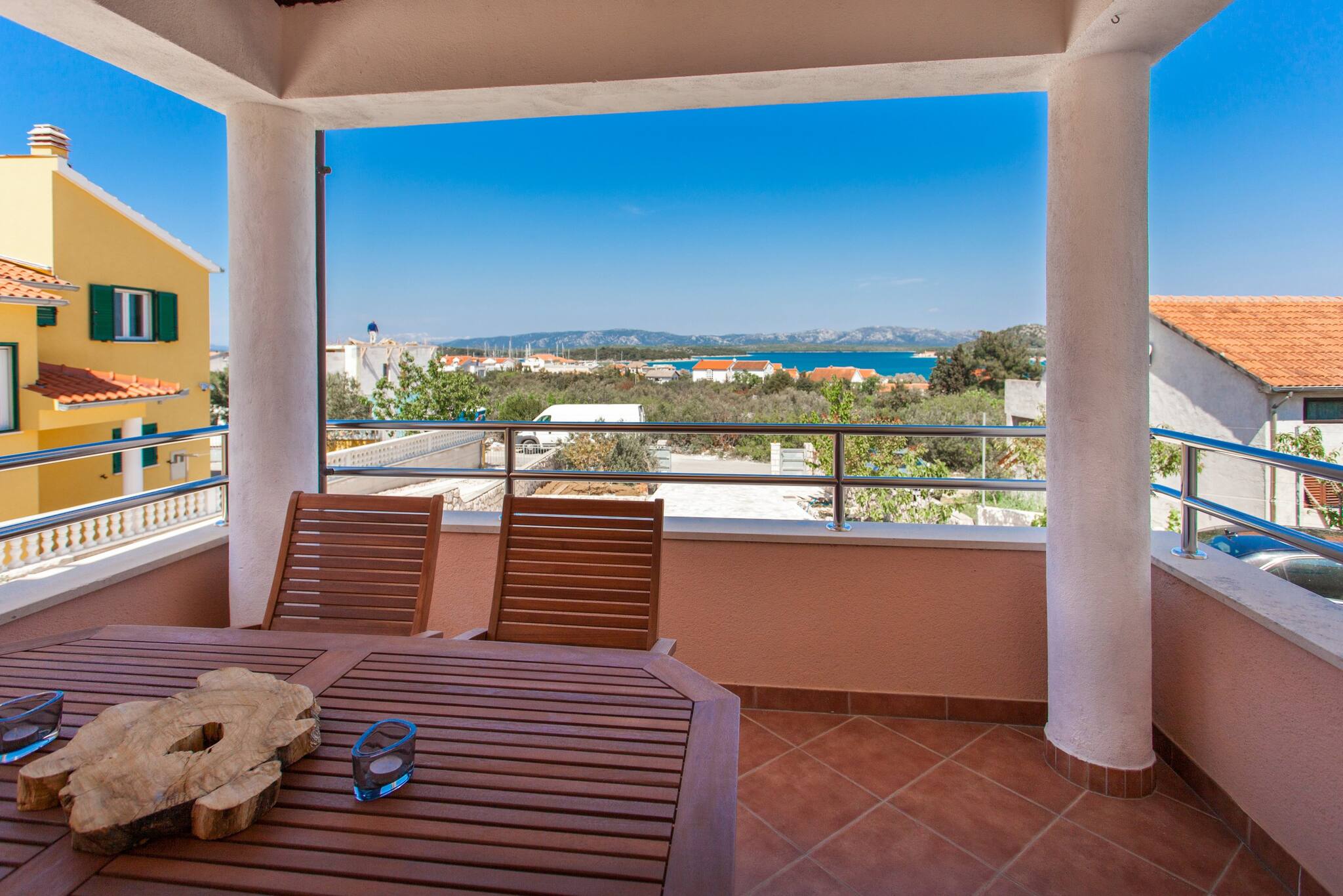Villa Roza is located in Murter. It features WiFi, Air conditioning and flat screen smart and sat TV. There is also a yard, BBQ facilities, outdoor pool and gym. House has kitchen, dining area, living room four bedroom, three bathroom, balcony and terrace.