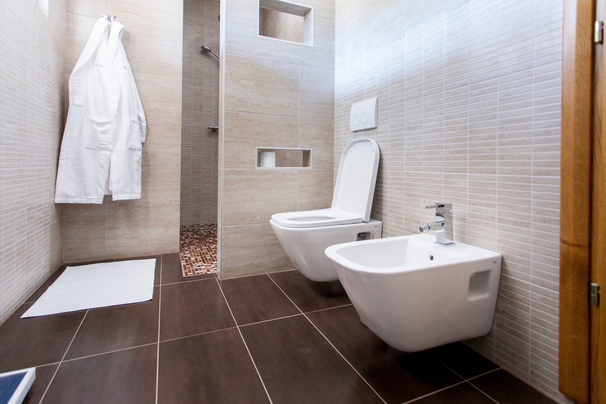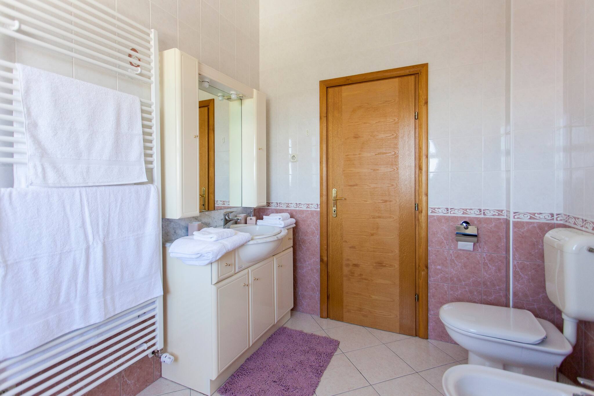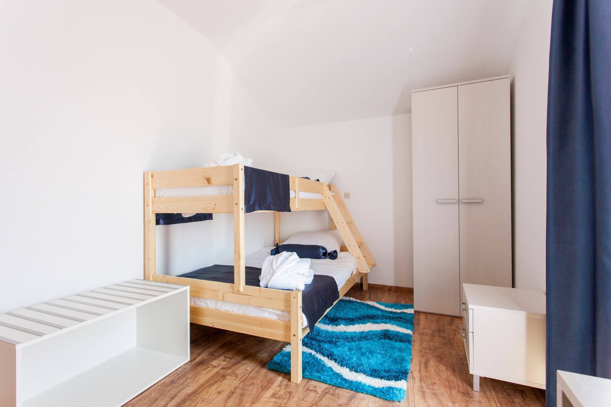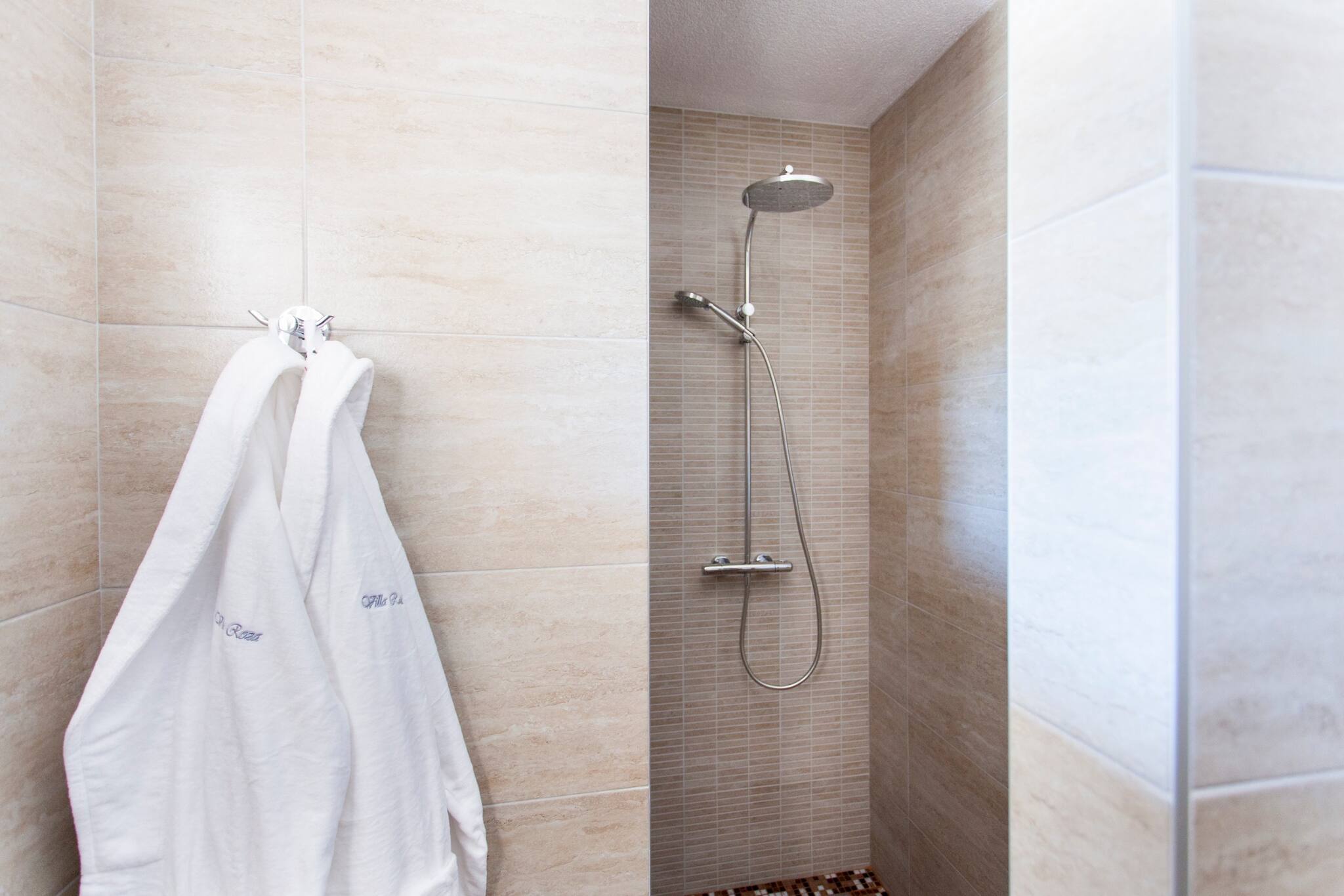 Villa Roza features WiFi, Air conditioning and flat screen TV. Kitchen is equipped with stove, oven, kitchen utensils, water kettle, toaster, microwave, refrigerator, coffee maker, dishwasher and dining table. Living room has flat screen TV and sofa. There is four bedrooms. There is one bedroom with extra large double bed, two bedrooms with large double bed and one with bunk bed. There are three bathrooms. Two bathrooms have shower and one have spa bath. There is toilet, bidet, hairdryer, toiletries and one washing machine. There is also a balcony and terrace with outdoor furniture and sea view.