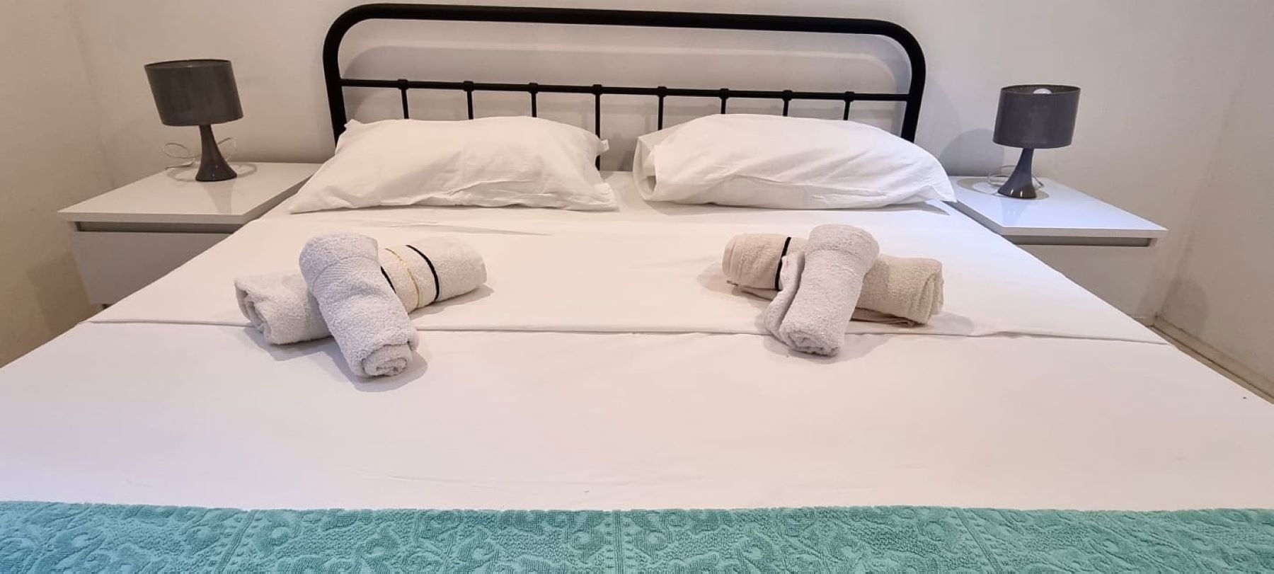 The apartment boasts three bedrooms, accommodating up to 5+1 guests comfortably. The bedrooms feature a mix of queen-size beds and a single bed, ensuring everyone has a comfortable night's sleep. The living area is equipped with a sofa bed, providing additional sleeping space if needed.