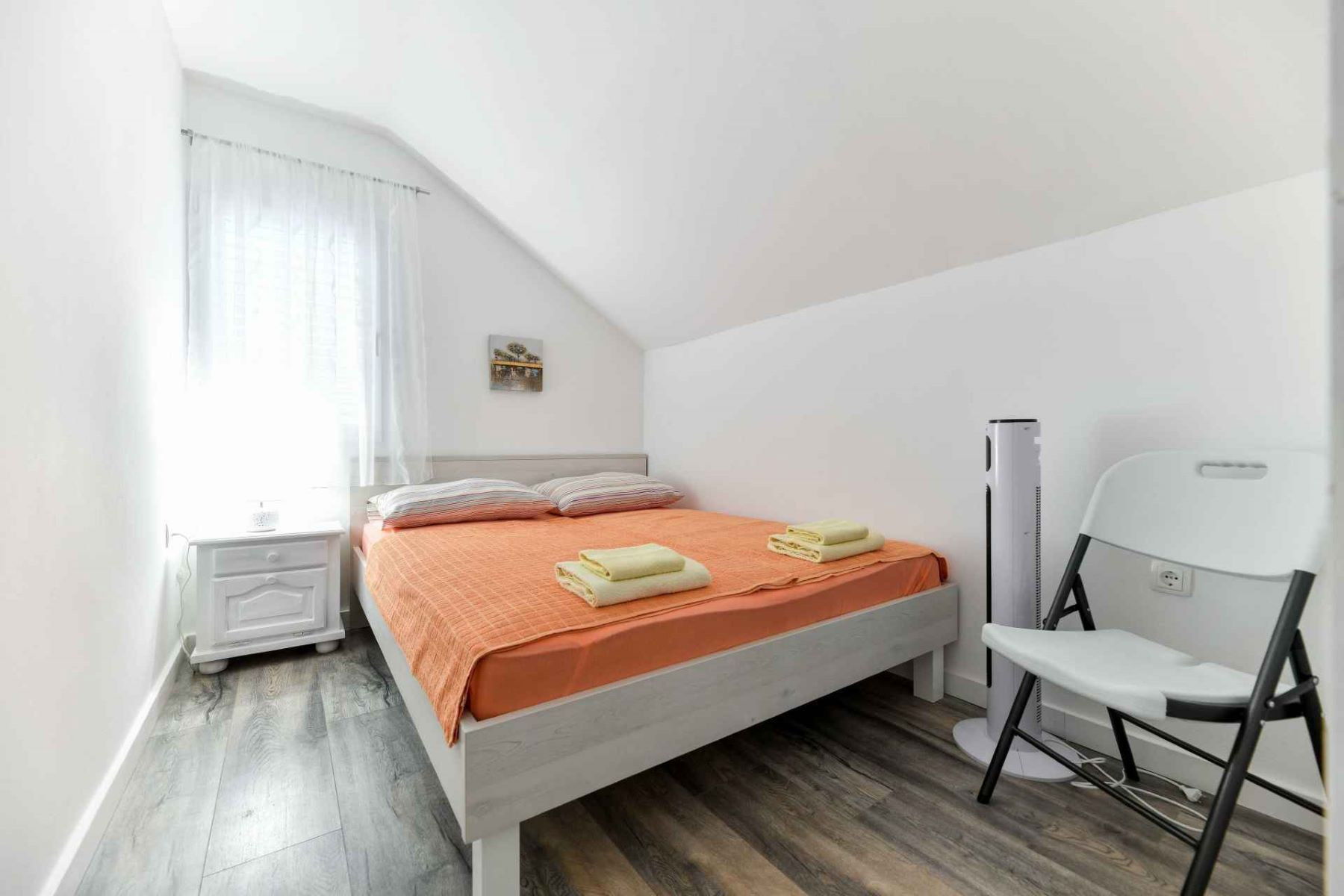 The surrounding area is truly idyllic, with a sand and rock beach just 550 meters away, and a supermarket and coffee shop within a short distance. For those seeking adventure, the Aqua park Biograd is just 12km away, and the stunning Krka National Park is a 67km drive.