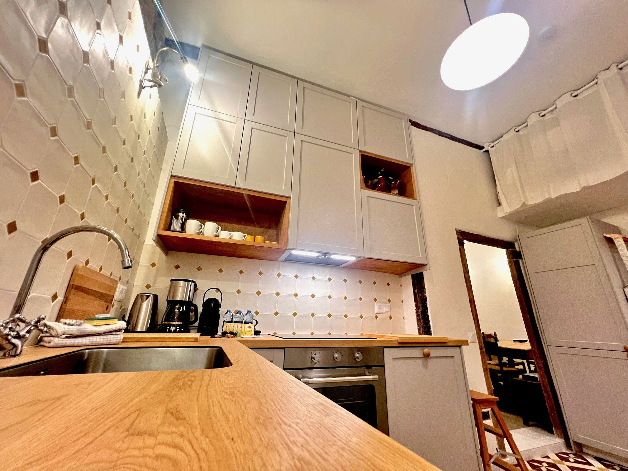 The independent kitchen is fully equipped with induction hobs, an oven, a microwave, a dishwasher, a fridge with freezer, as well as all the necessary utensils and appliances: crockery, coffee maker, toaster, kettle... Enough to cook comfortably in the city centre.