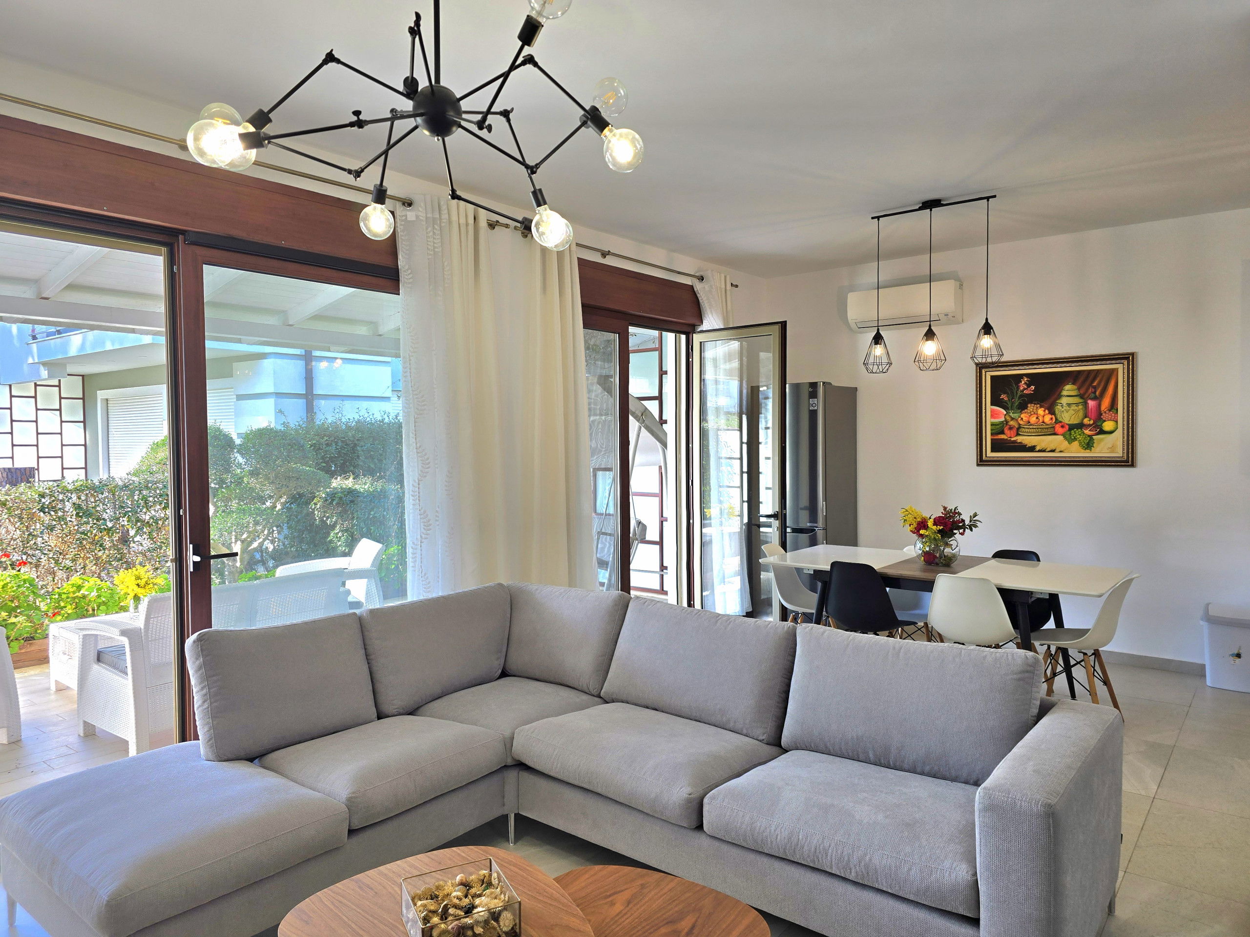 Furnished in a modern way. All requirements necessary for a comfort holiday next to the sea: Air Condition, solar panel, dish washer, washing machine, fridge, smart TV, coffee-maker. Built in two floors: living room and 1 bathroom in the ground level, 3 bedrooms and 1 bathroom upstairs. With a terrace and a garden. Located just 200 meters distance from the beach. Close to bars and restaurants. Great for vacations with friends or family.