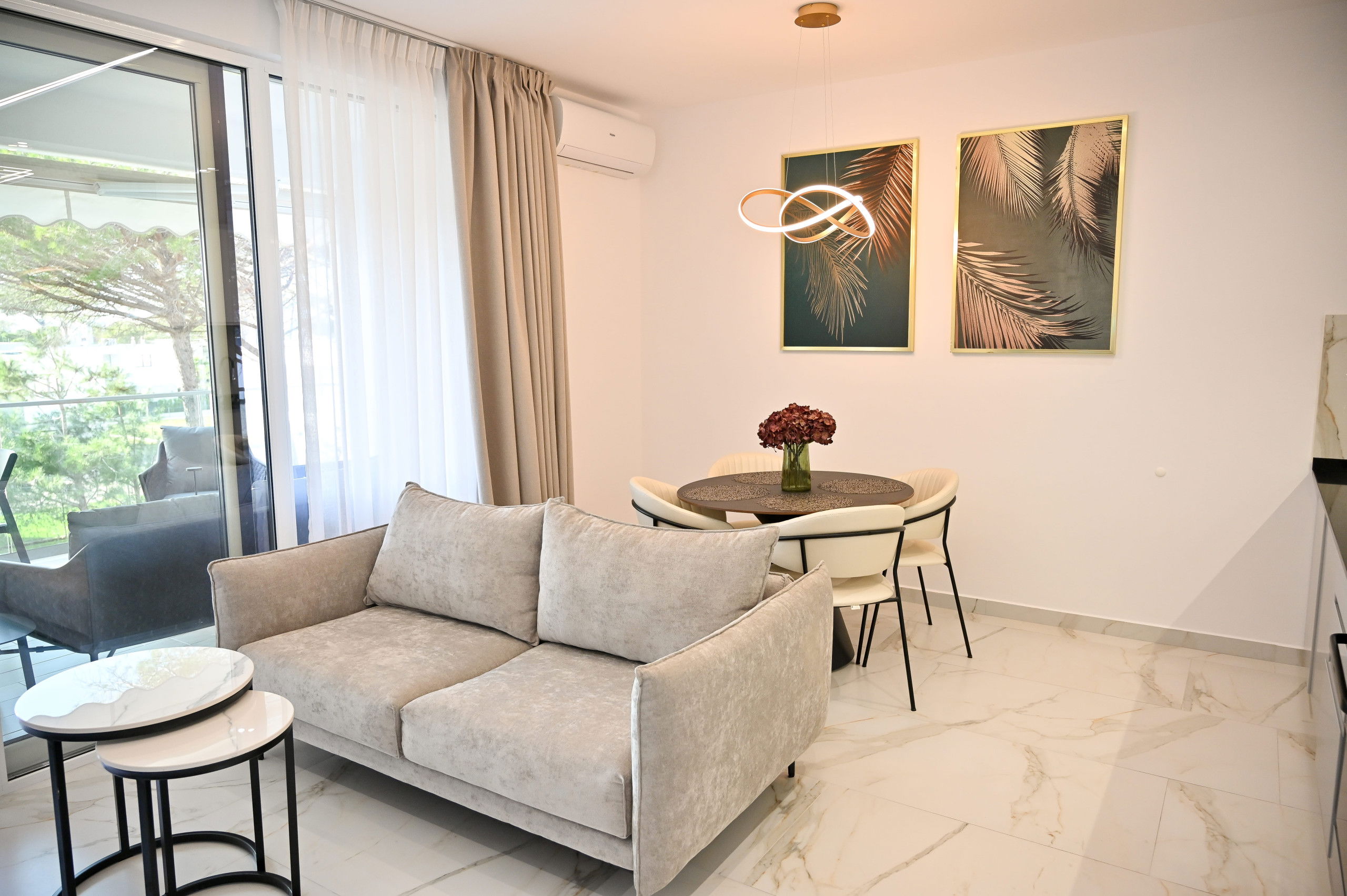 The apartment is located in the beautiful San Pietro Resort, a gated residence with 24/7 surveillance and maintenance. The area around is quiet and offers a lot of services to make your holidays as best possible. There is a supermarket in the center of the complex called Juland. You may enjoy the beach bars and restaurants located on the beach side.
