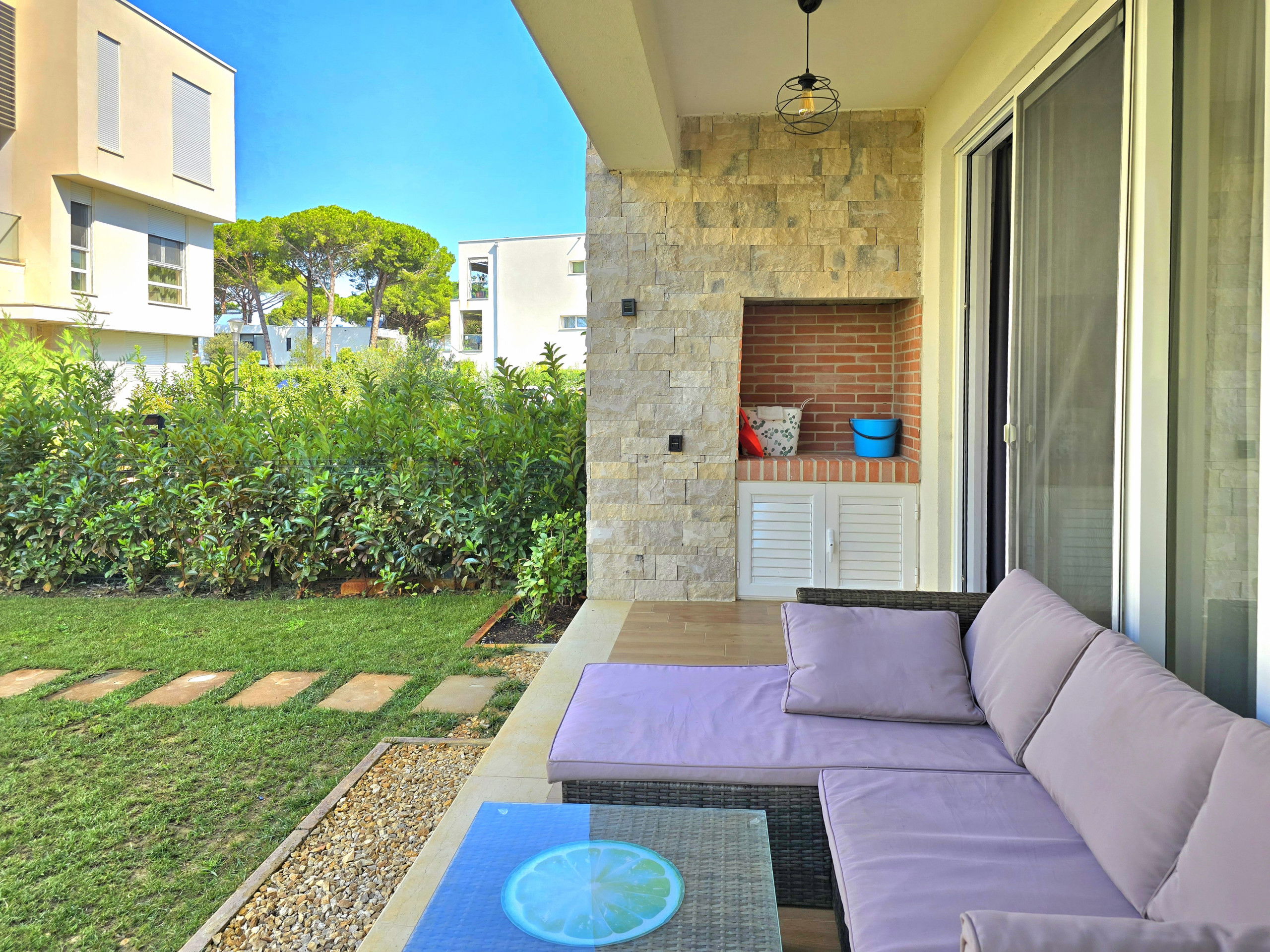 The apartment is located in the beautiful San Pietro Resort, a gated residence with 24/7 surveillance and maintenance. The area around is quiet and offers a lot of services to make your holidays as best possible. There is a supermarket in the center of the complex called Juland. You may enjoy the beach bars and restaurants located on the beach side.