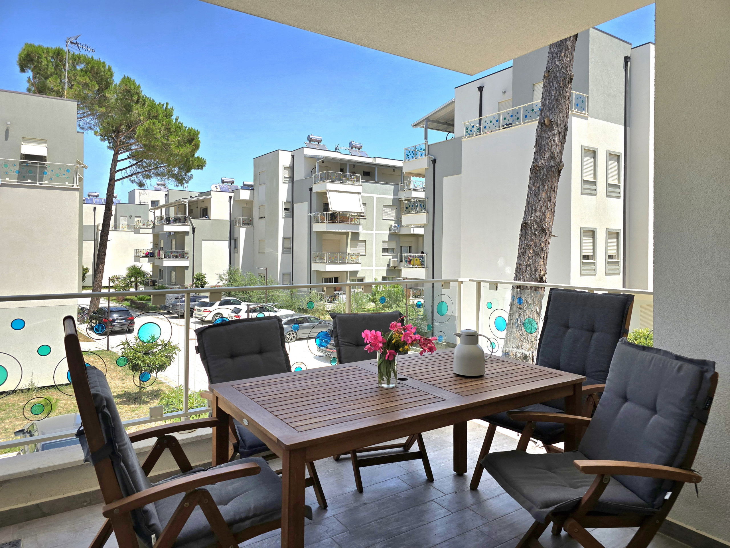 Enjoy the comfort of individually controlled air conditioning and efficient heat pump heating, ensuring a pleasant environment throughout the year. The apartment also features a balcony perfect for enjoying morning coffee or evening relaxation, along with garden furniture for outdoor dining.