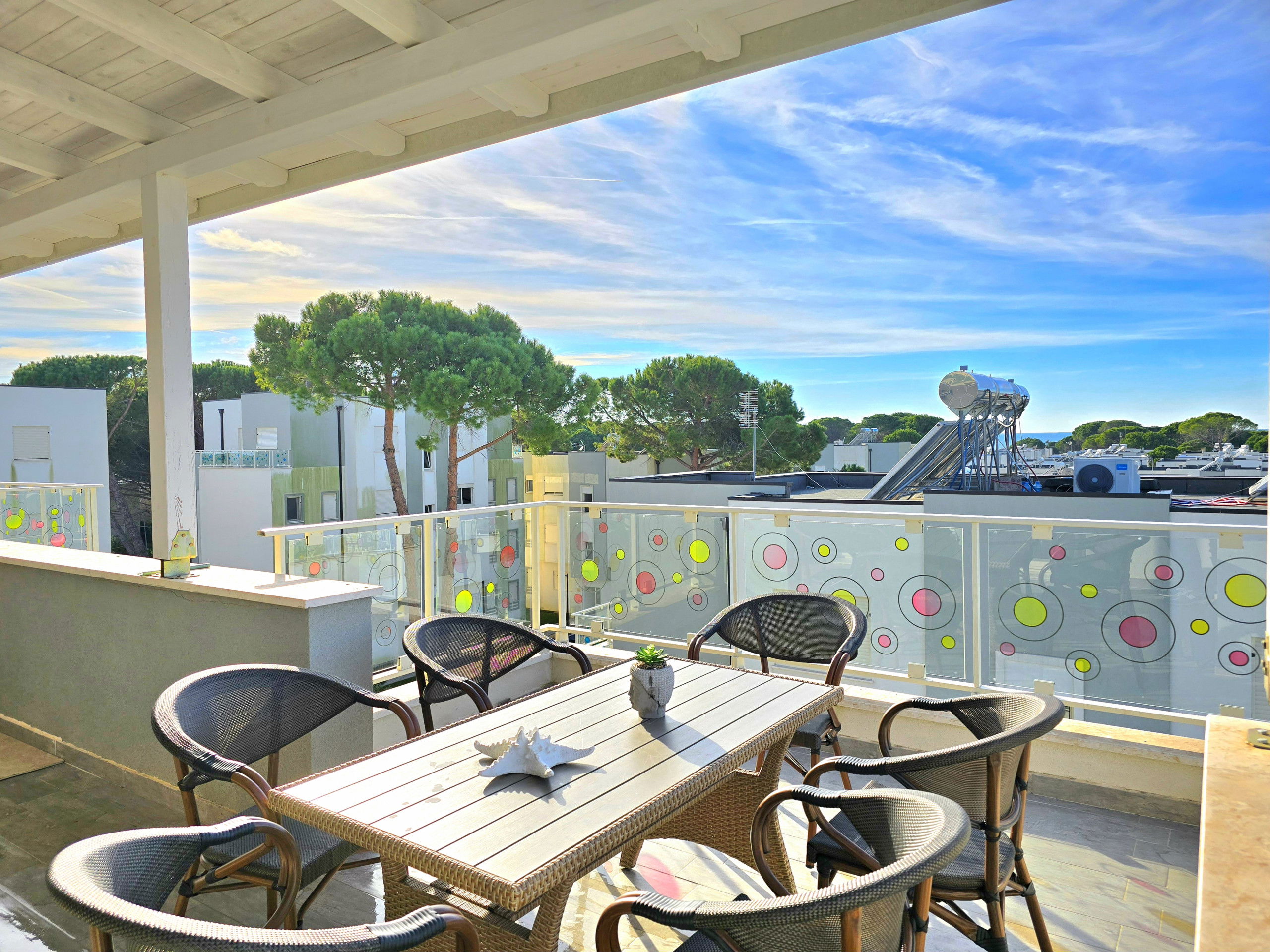 Enjoy the comfort of individually controlled air conditioning throughout the accommodation and efficient heat pump heating. The property includes a TV, WiFi, and practical amenities like an iron and hangers. A private balcony and spacious 120 sq meter terrace offer delightful outdoor relaxation spaces.
