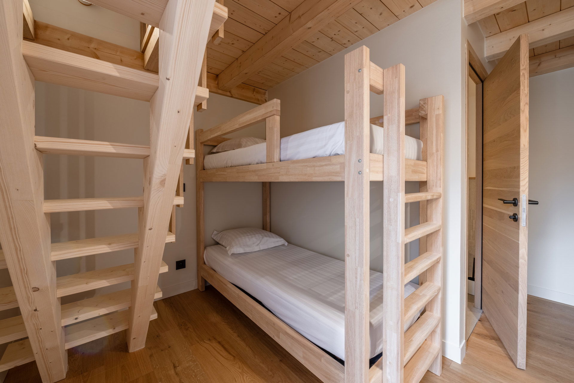 - 1 family room on 2 levels, sleeping area with bunk bed (80x190) on ground floor and bedroom with double bed (160x200) upstairs.