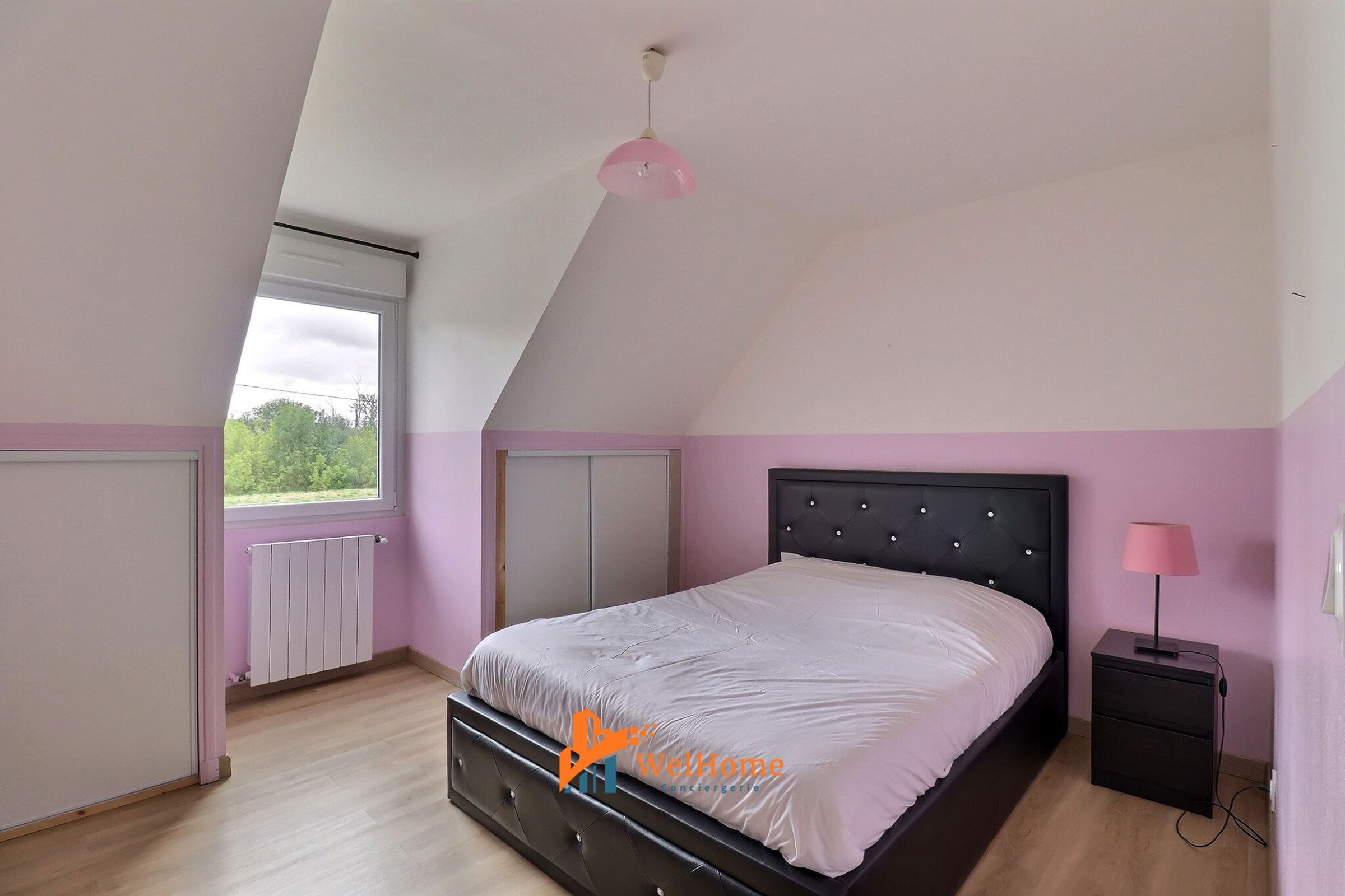 A bedroom with a double bed (140x190).