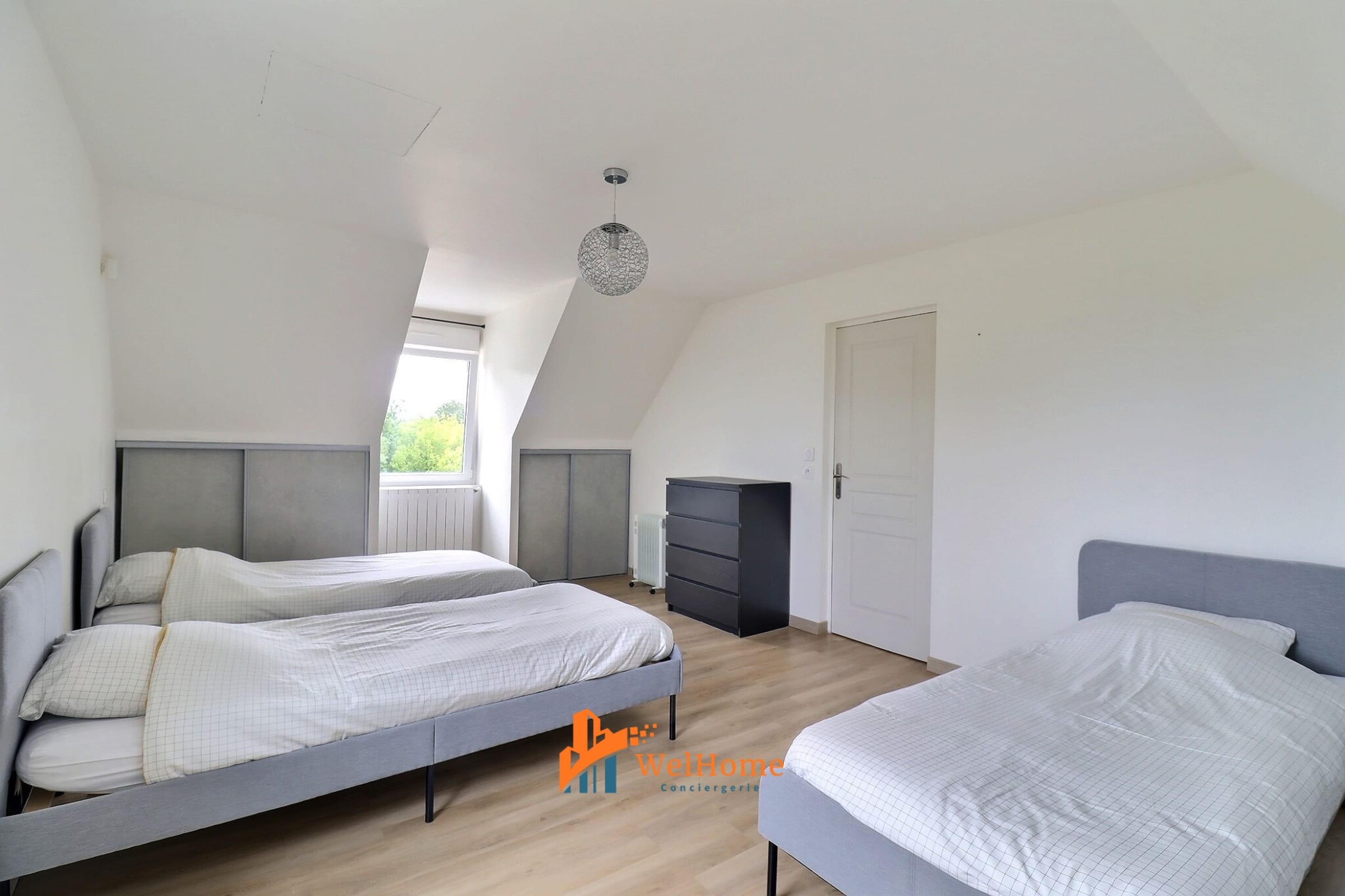 A room with 3 single beds (90x200), perfect for children or friends.