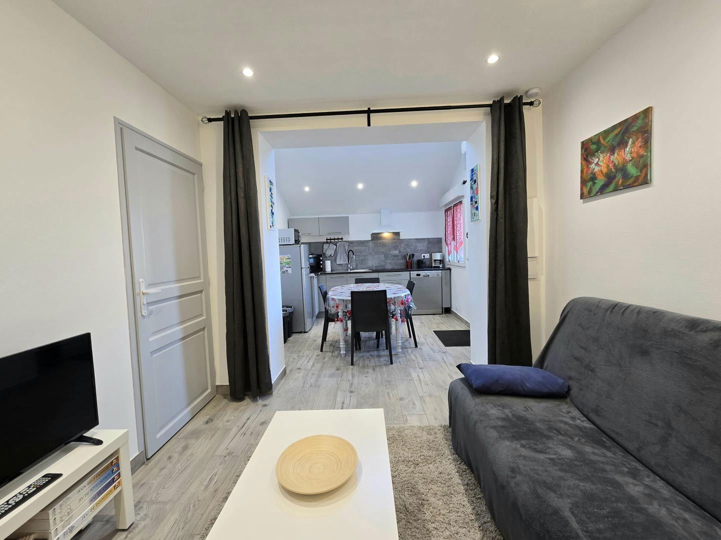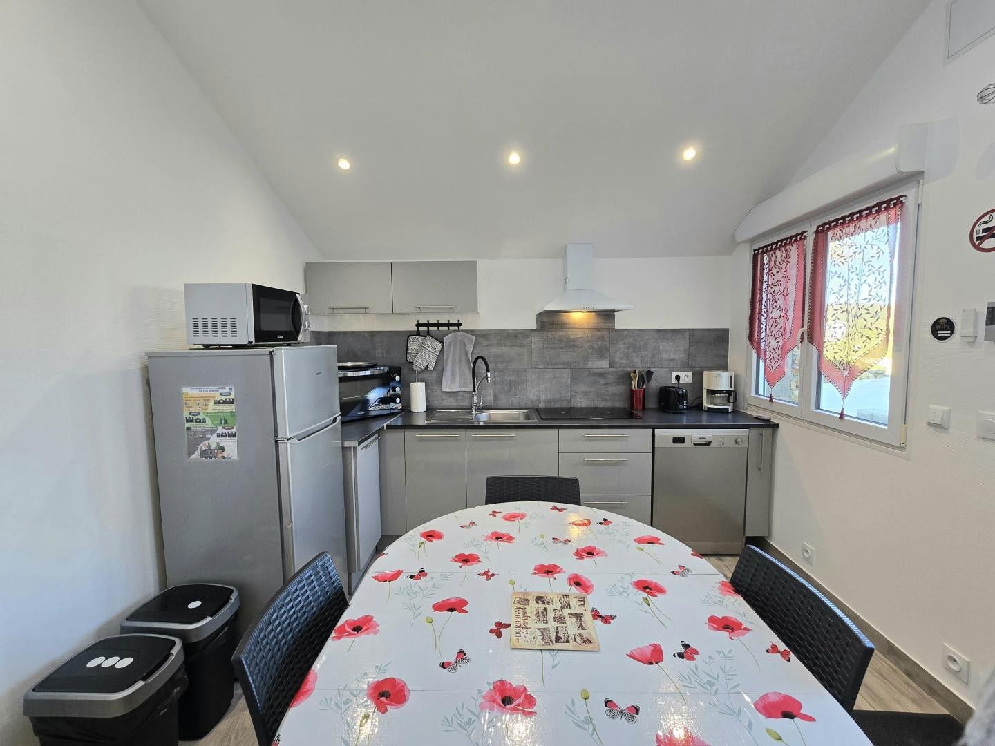Equipped kitchen: dishwasher, induction hob, freezer, microwave, Senseo, mini-oven. Living room: sofa bed (120x190), TV, Wi-Fi. Bedroom: double bed (140x190), en-suite shower room with washing machine. Separate toilet. Linen included: sheets, towels, tea towels. Cleaning, electricity, heating included. Private terrace in front with garden furniture, barbecue and shared garden of 200m2. Private parking on site at the cottage. Baby equipment: travel cot, booster seat, bathtub. Everything has been designed to ensure that your stay meets your expectations.