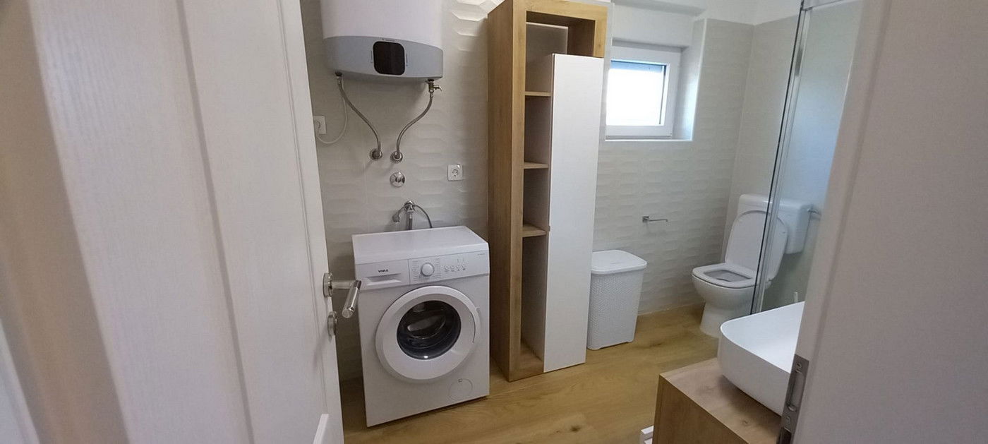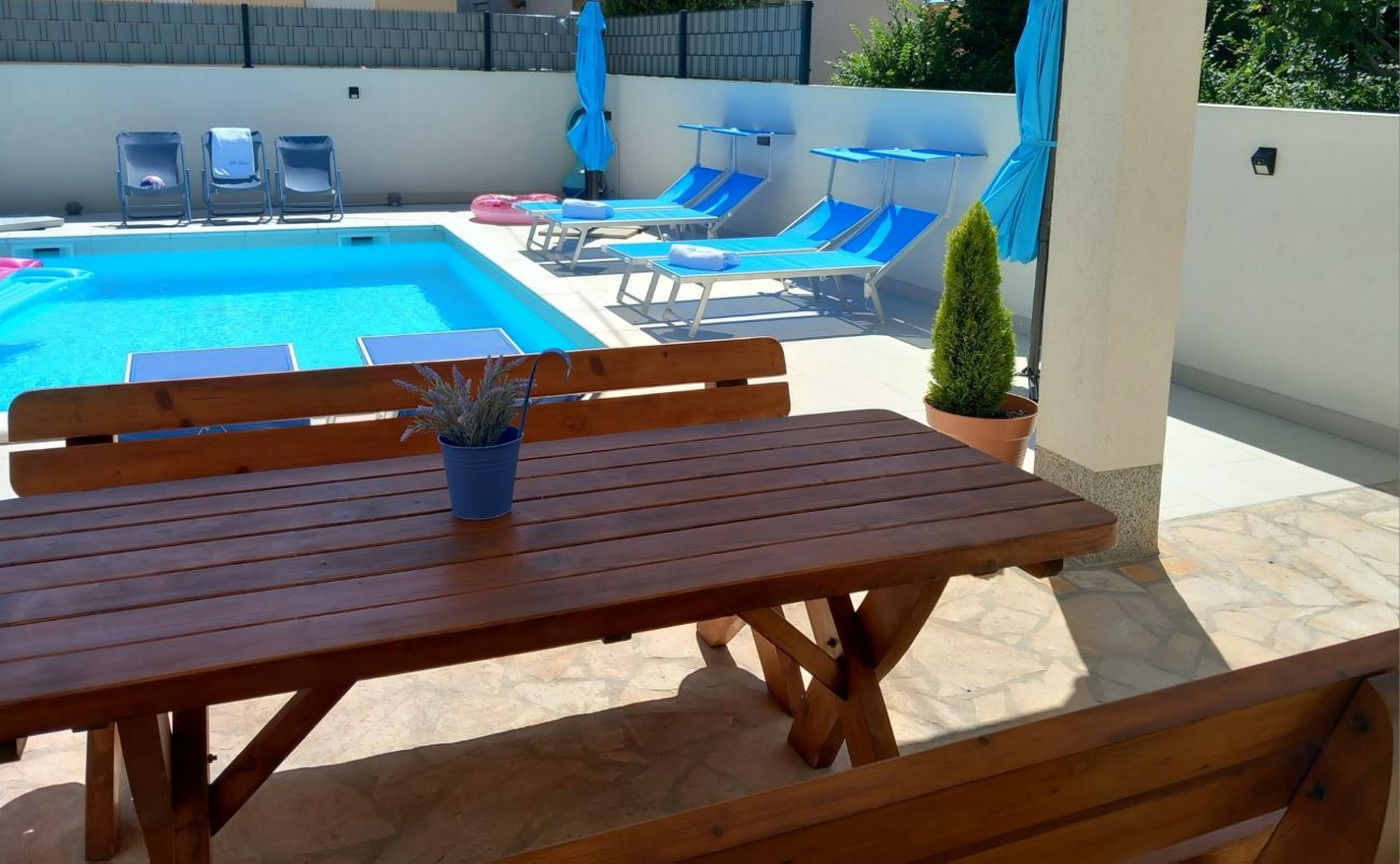 The apartment boasts a private outdoor pool measuring 6x4 meters, ideal for cooling off on warm Croatian days. Enjoy the sun terrace with outdoor furniture and dining area, creating the perfect setting for memorable holiday moments. The fenced plot provides privacy and security, making it an excellent choice for those seeking a tranquil getaway.