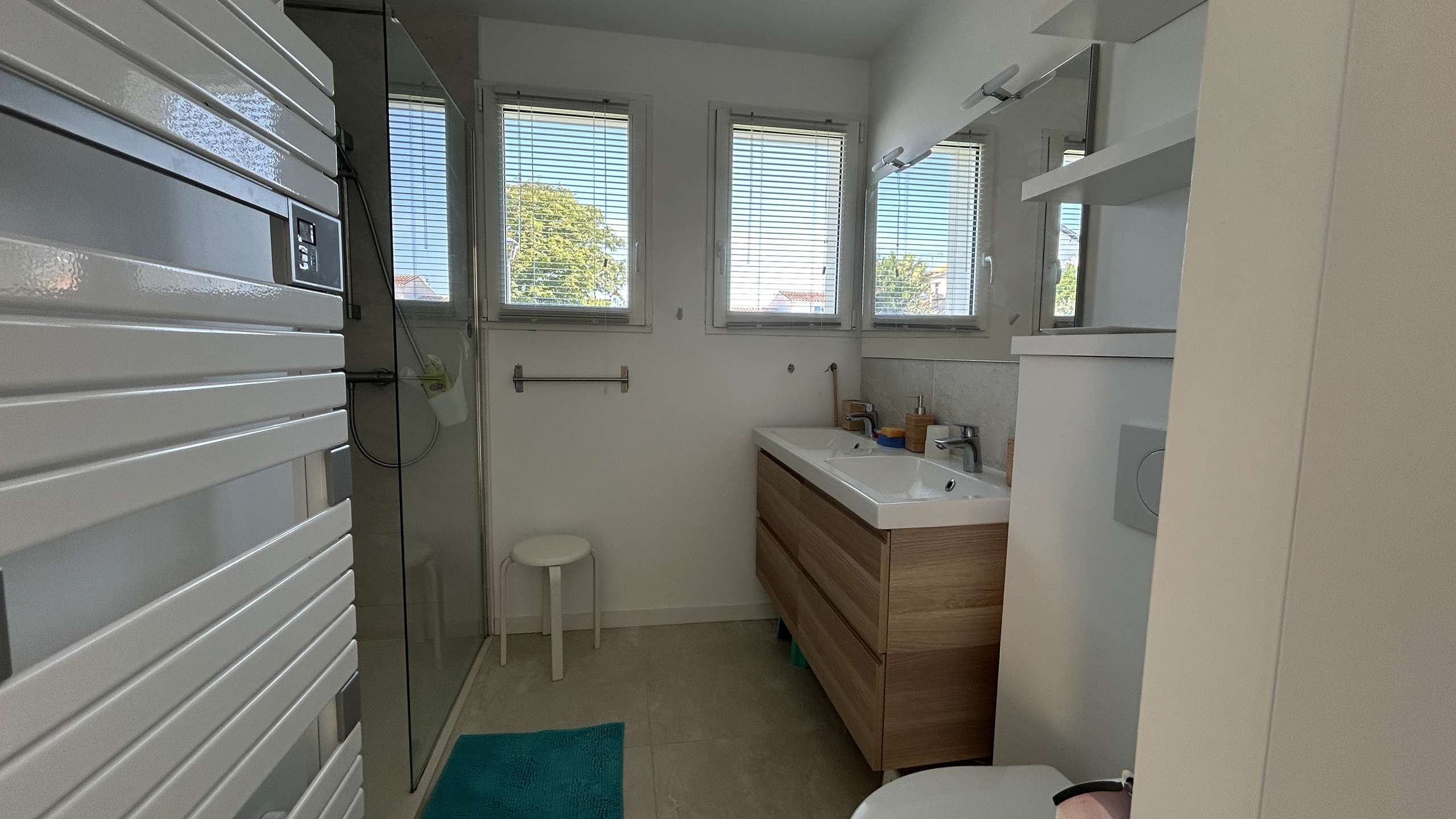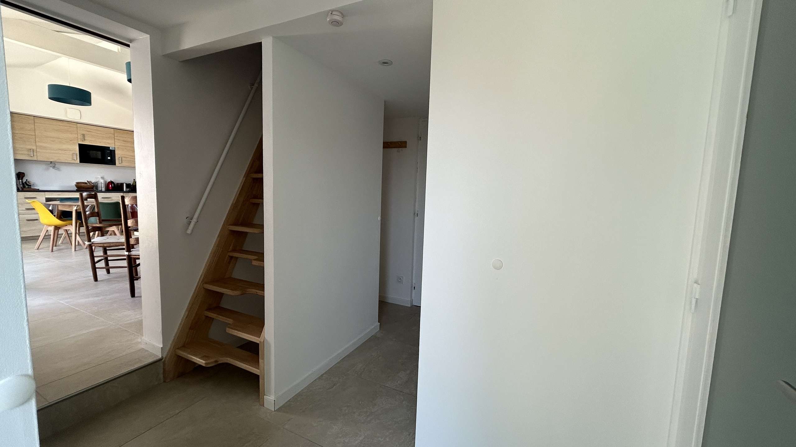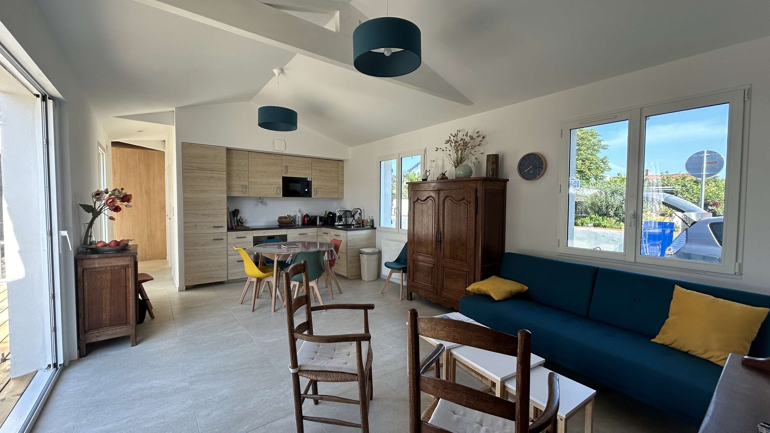 Accommodation: This completely renovated holiday home 100m from the beach includes on the ground floor, a bright living room with an open kitchen opening onto the terrace at the back, three bedrooms with 140 double bed, a shower room-wc, a laundry room, another wc. wifi access.