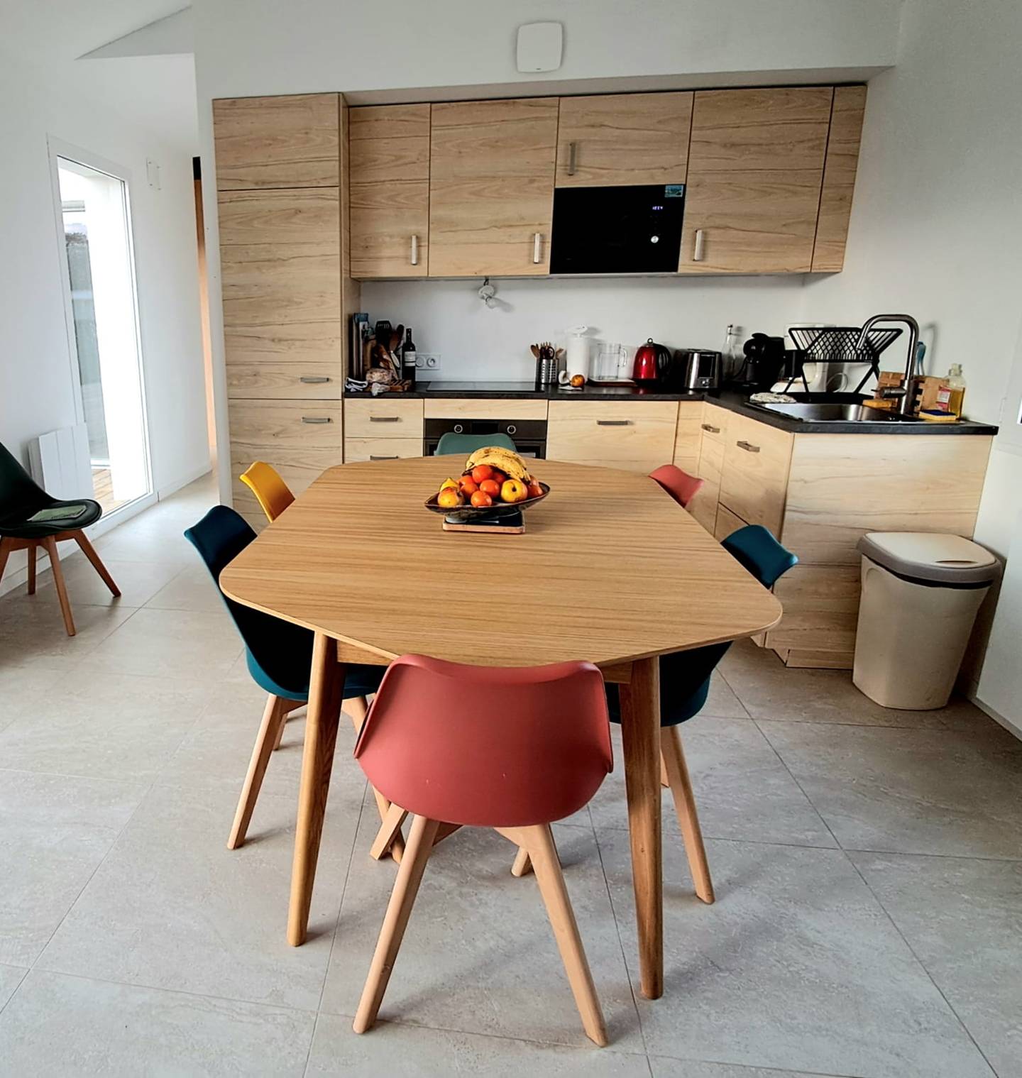 You have a large wooden terrace, sheltered from view, equipped with garden furniture. baby bed, high chair, bathtub. Plancha and gas BBQ, ping pong table, parking