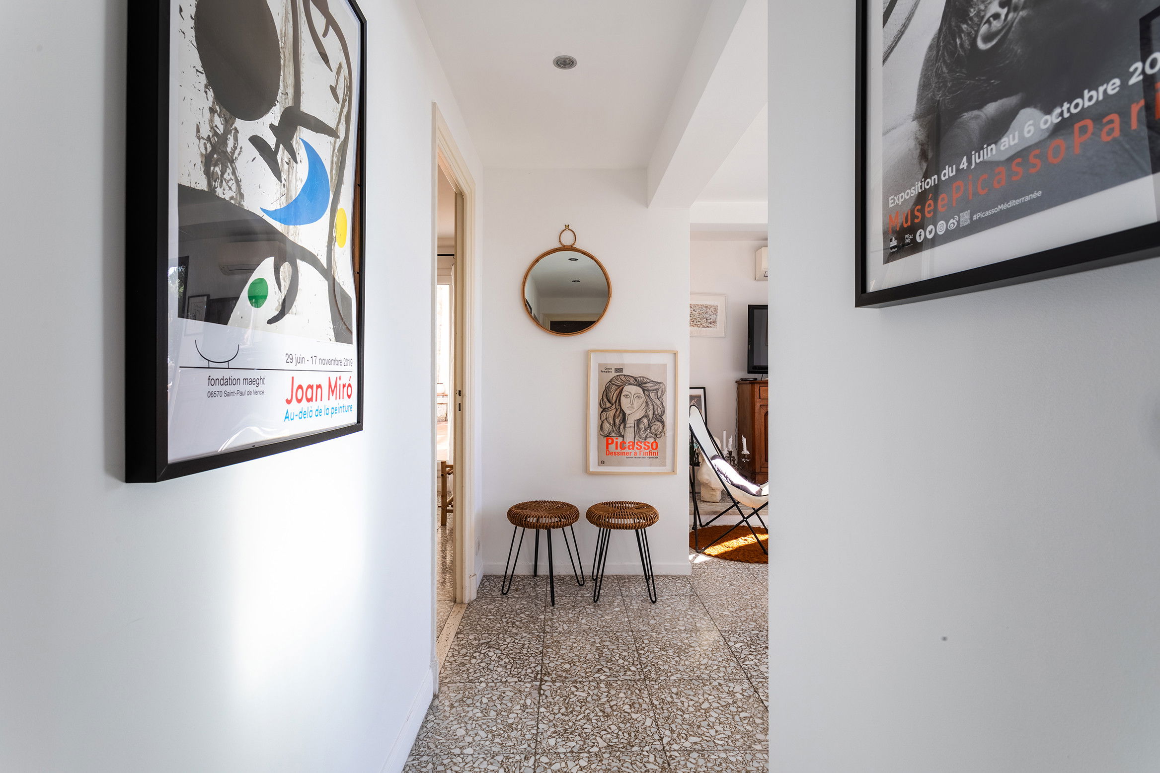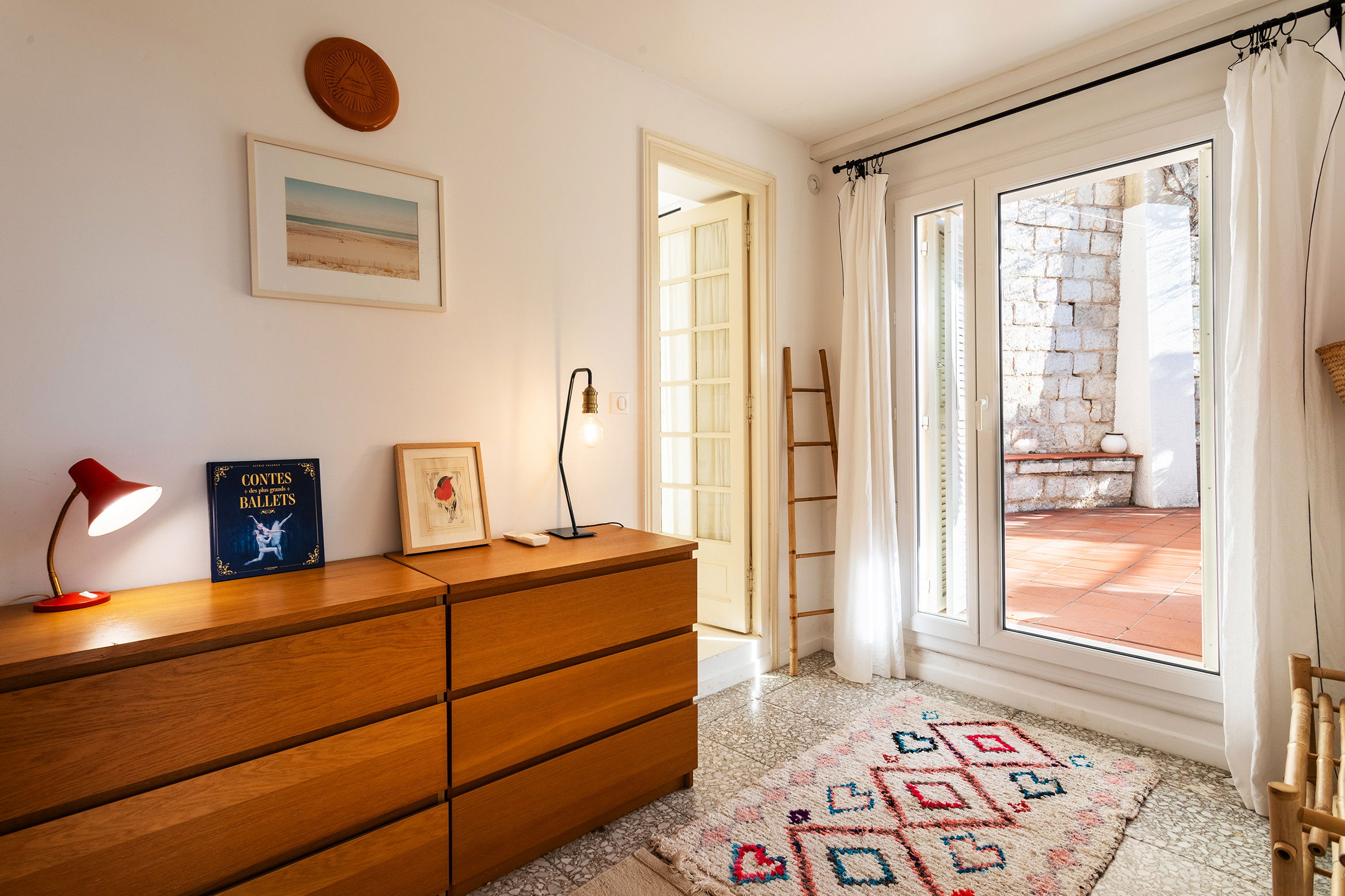 Approximately 20 minutes walk from beaches and the old town, also offering parking possibility along the road, it is the perfect compromise between tranquillity and village proximity. The accommodation is composed as follows: Open entrance leading to the living area equipped with a sofa, two armchairs, a sideboard, a coffee table, a TV, WiFi internet connection and a dining table that can accommodate 6 guests. It opens onto the terrace and also offers a superb sea view. The functional kitchen, with dishwasher, oven, fridge/freezer, cooking plates, extractor hood, toaster, coffee maker and all necessary equipment for cooking and eating.