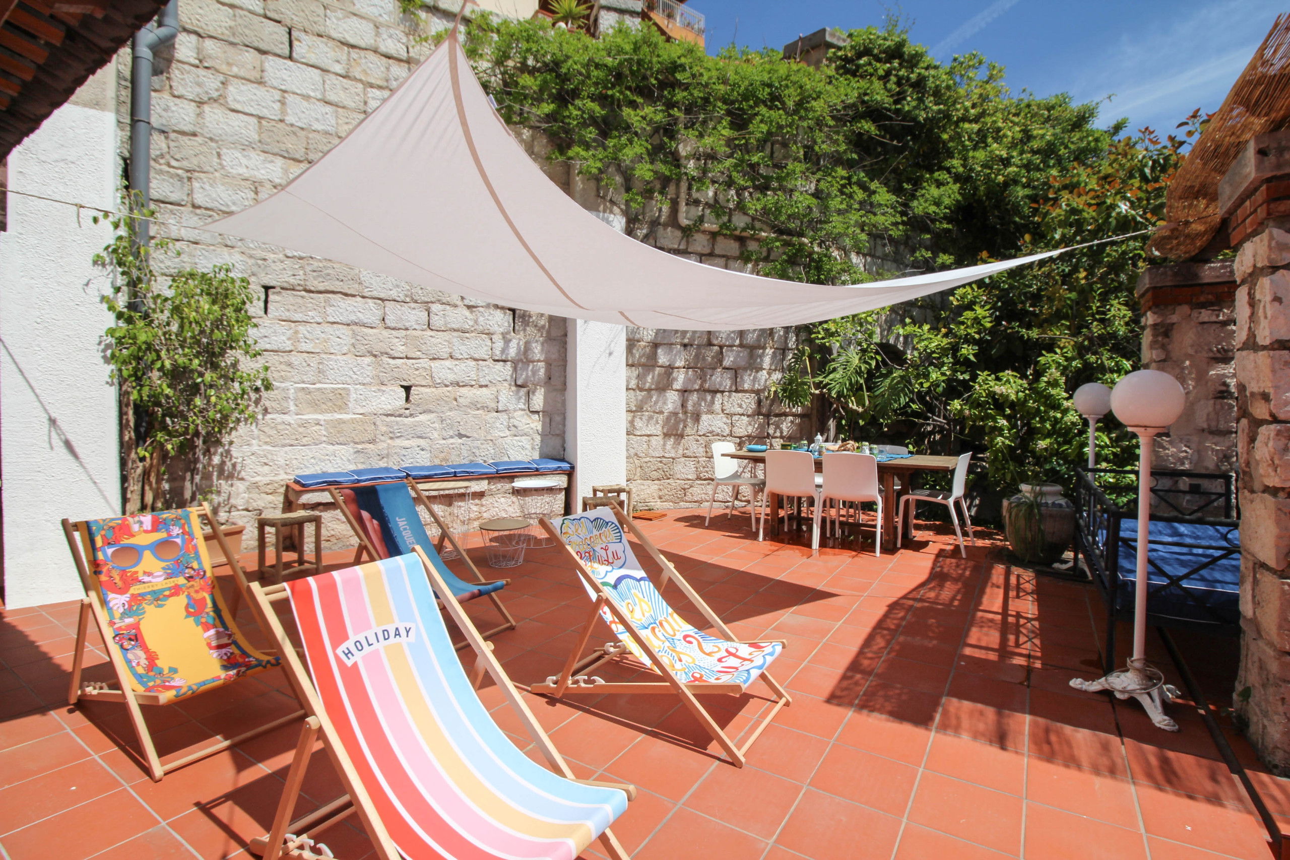 Beautiful tree-lined terrace of 100m2 offering a superb sea view with a relaxation area with 4 sunbeds, a dining area with outdoor table and barbecue.