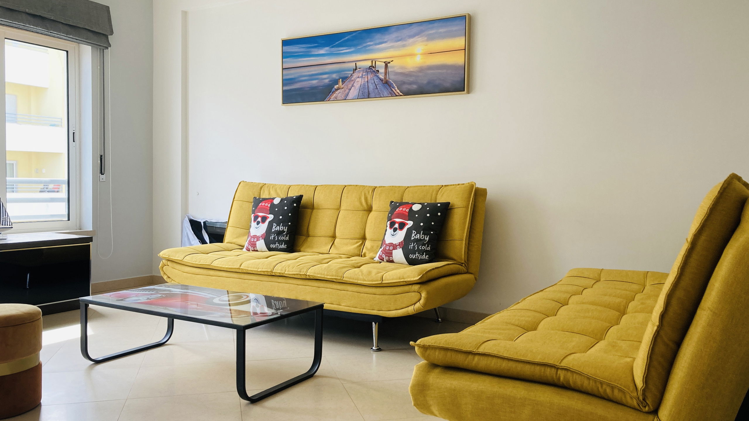 This functional apartment welcomes you into a warm and bright space. Upon arrival, you'll be delighted by the balcony offering a narrow yet captivating view of the sea, where you can relax while gazing at the sparkling waves.