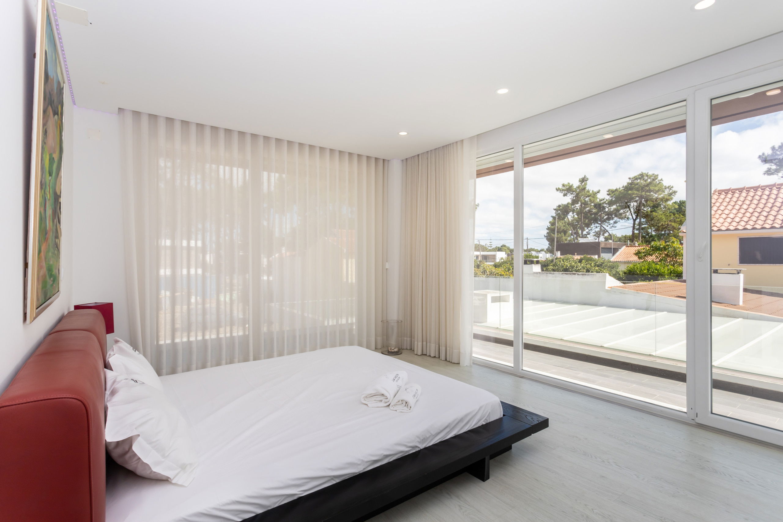 The villa in Aroeira has 3 bedrooms and capacity for 6 people.