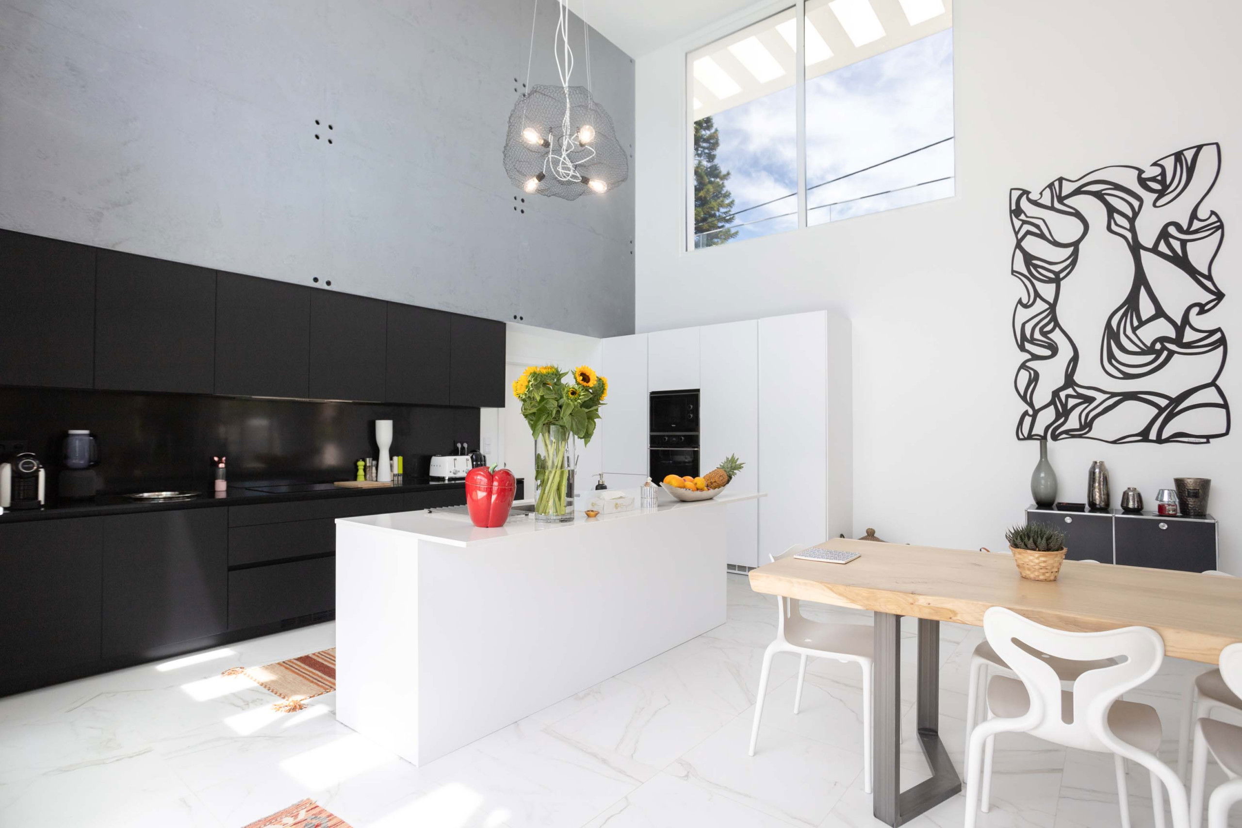 The modern and fully equipped kitchen will allow you to easily prepare delicious meals. It includes all necessary household appliances, as well as numerous storage spaces and kitchen utensils.