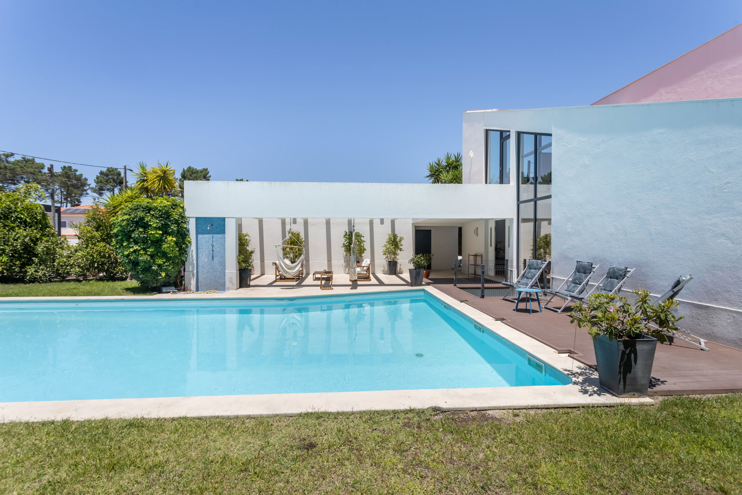 Ideally located just 7 minutes by car from the superb Fonte da Telha beach, you can enjoy the sun and the Atlantic Ocean. Back at the villa, dive into the large swimming pool to cool off or relax on the sun loungers on the outdoor terrace while savouring a glass of Portuguese wine.