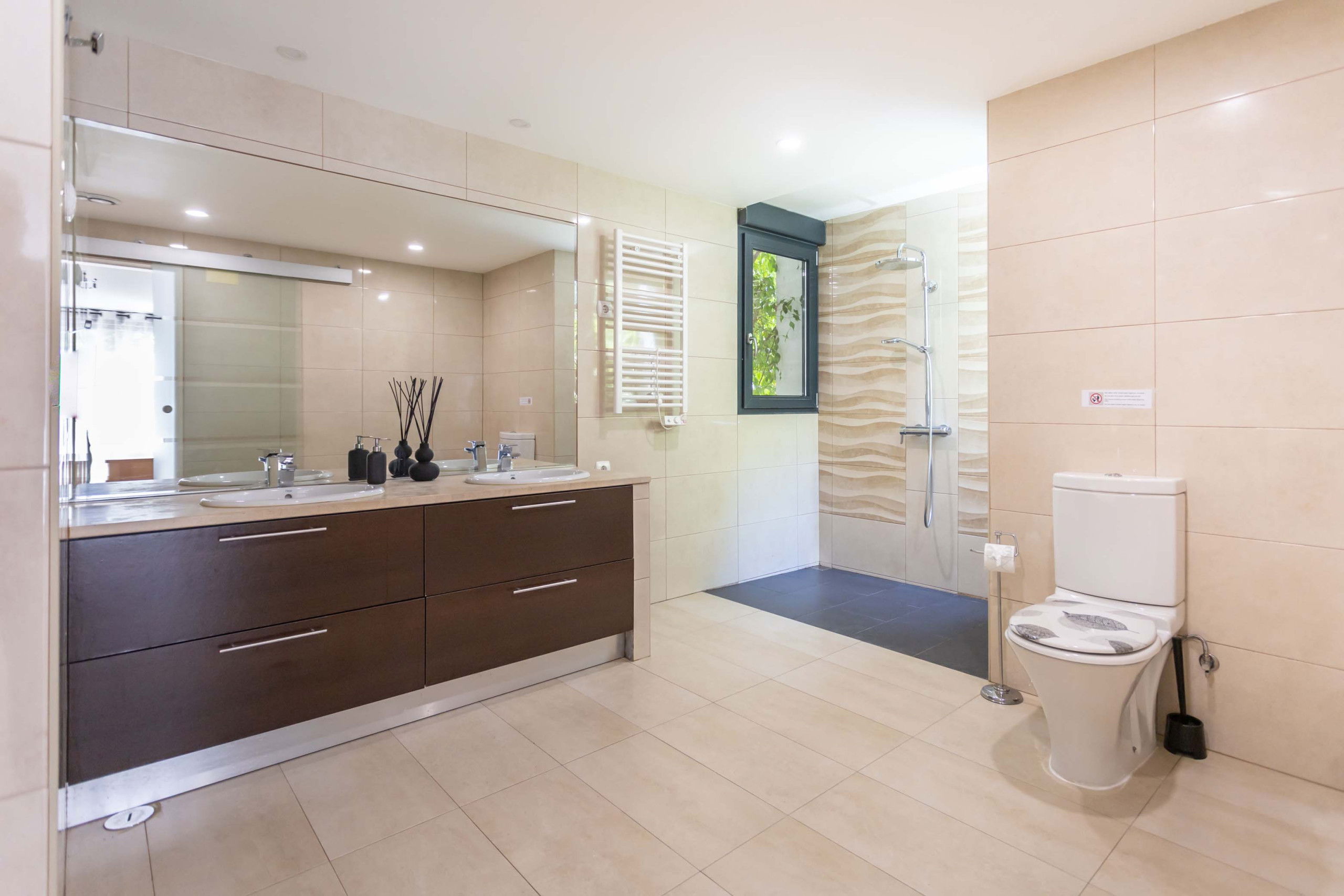 The bright and airy living/dining room is the ideal place to meet and share precious moments. With 5 comfortable bedrooms and 3 bathrooms**, the villa can accommodate up to 10 people, ensuring a comfortable stay for everyone. The kitchen is fully equipped, and all rooms in the house are air-conditioned, except for one bedroom on the ground floor (the one adjacent to the living room).