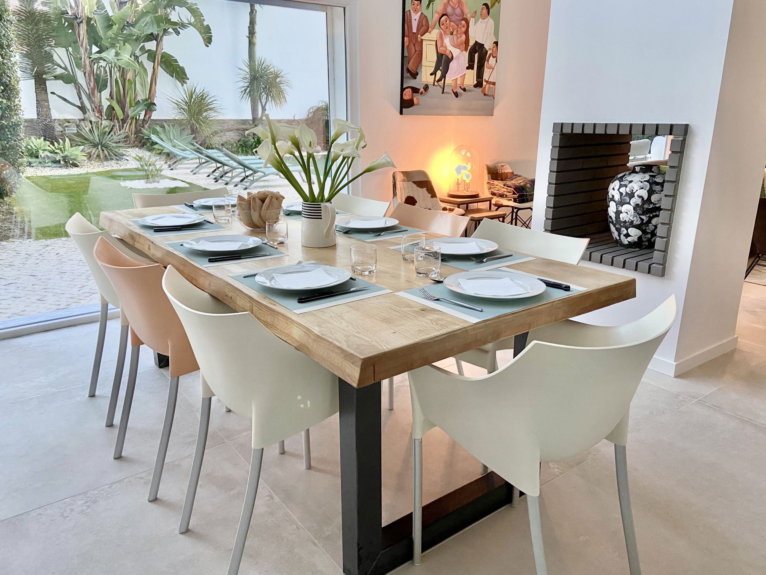 A large barbecue and summer kitchen will allow you to enjoy meals on the terrace in a shaded area under the palm trees, with a large table that can accommodate up to 10 people.