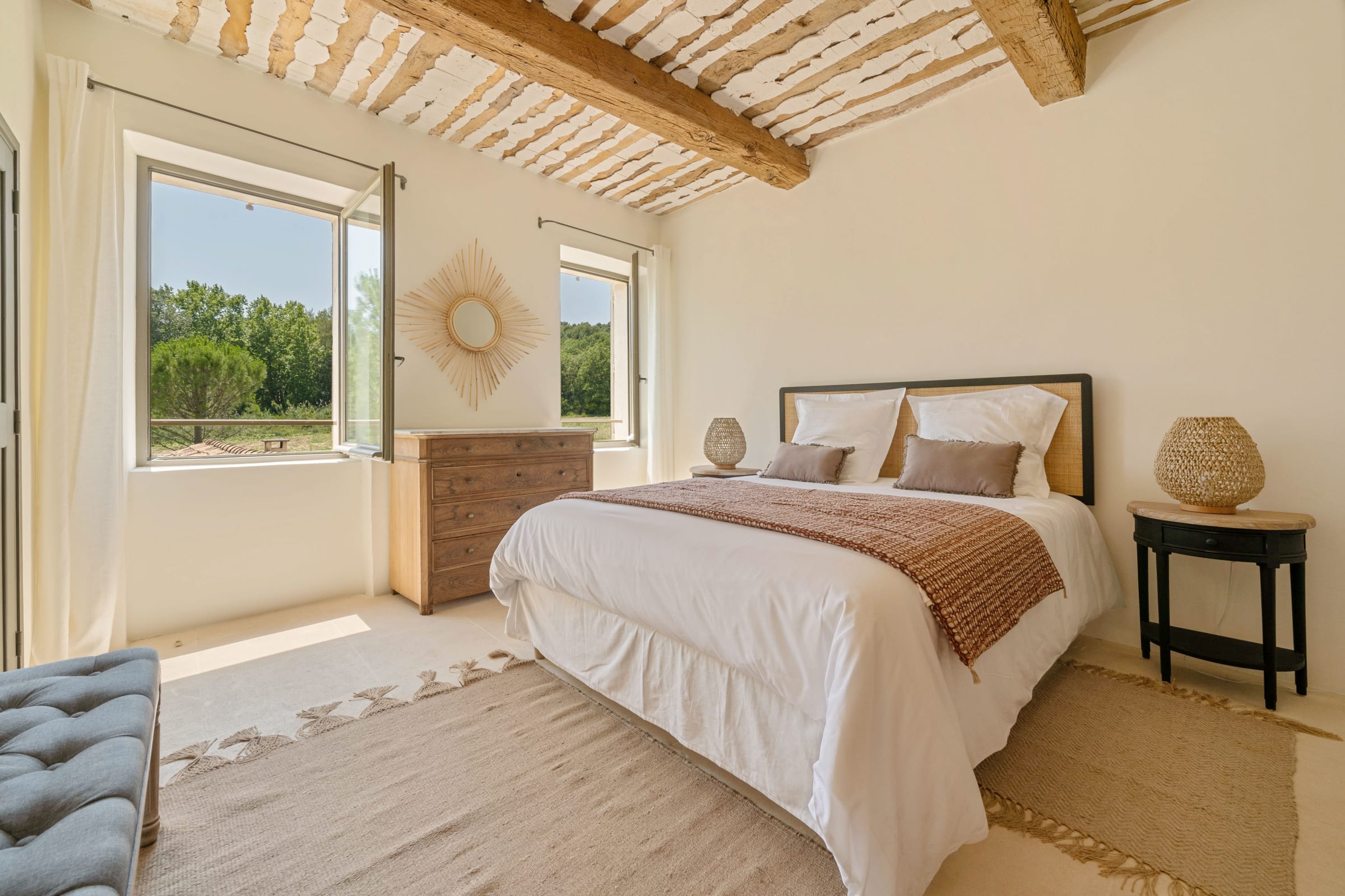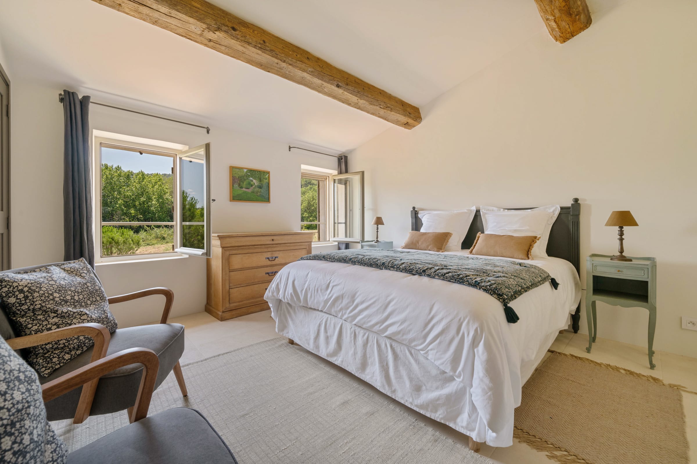 Located about 2km from the charming village of Saint-Saturnin-les-Apt, close to all amenities, this large capacity holiday home for rent offers 10 hectares of wooded land with a panoramic view of the Luberon and a swimming pool. Enjoying a quiet and preserved environment, this magnificient house on 3 levels has 550m² of living space with large equipped kitchen, 2 dining rooms, 8 bedrooms and 7 bathrooms. Fully air-conditioned and renovated with high-end materials, it provides nice amenities for guaranteed comfort.