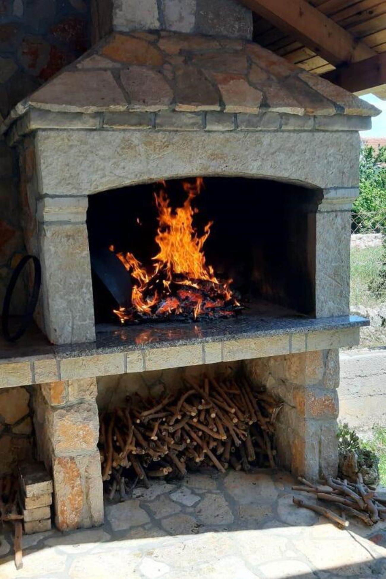 Smoking is not allowed in the house, only outside.