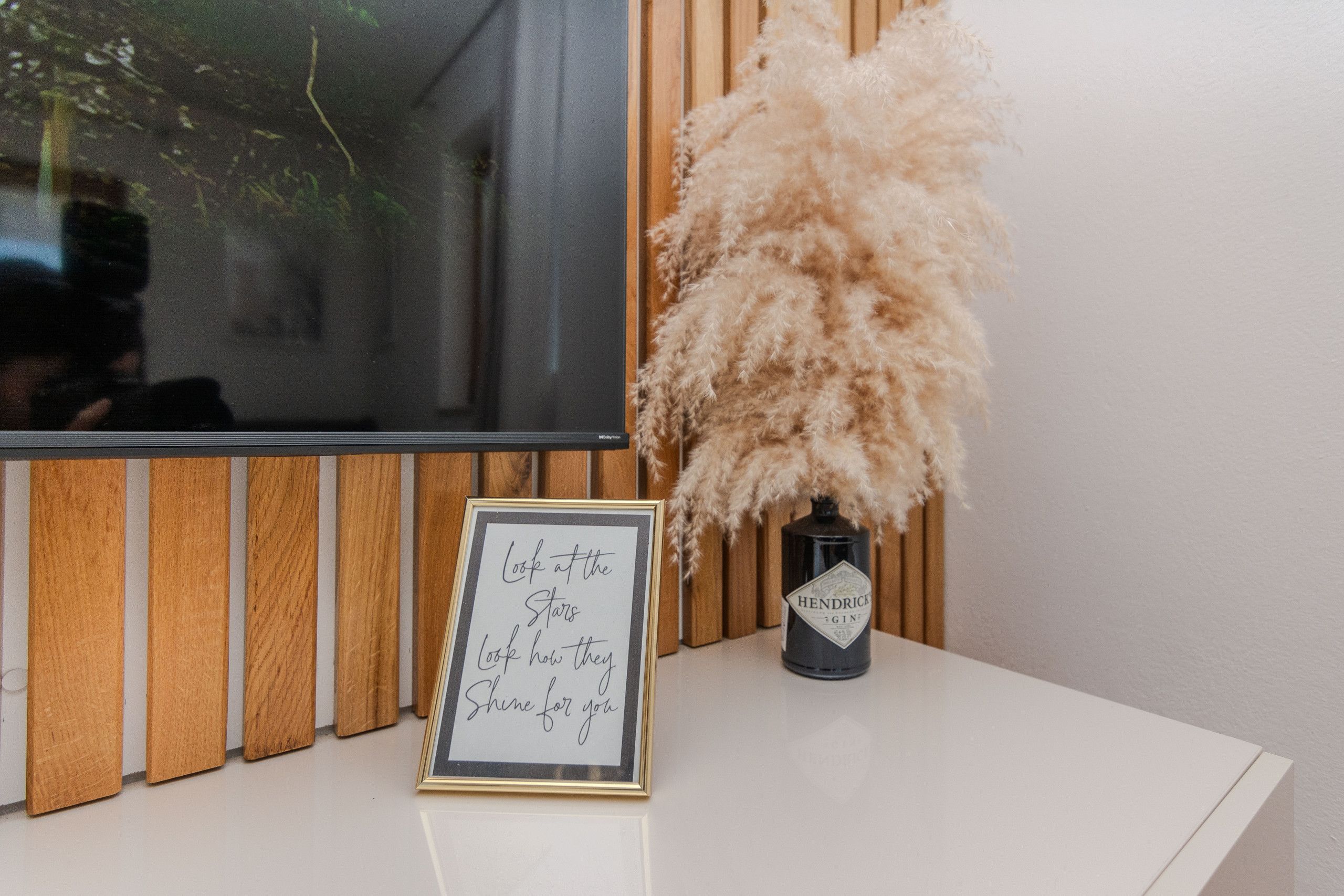 Holiday Home Lucy boasts three well-appointed bedrooms with a versatile sleeping arrangement, including a queen-size bed, a double sofa bed, and two individual beds. The home features two bathrooms, both equipped with refreshing showers, ensuring ample space and privacy for all guests.