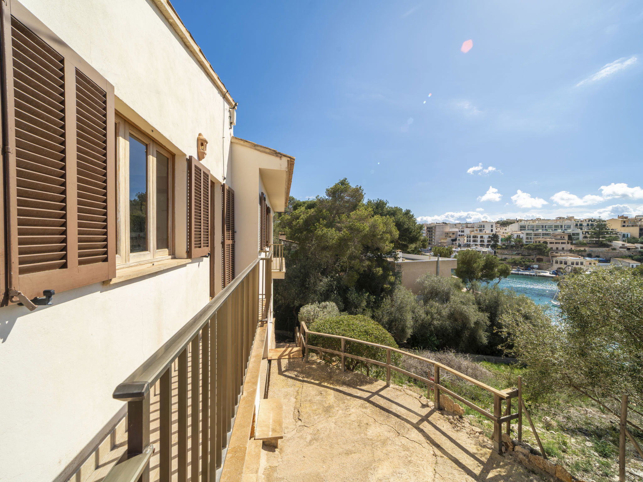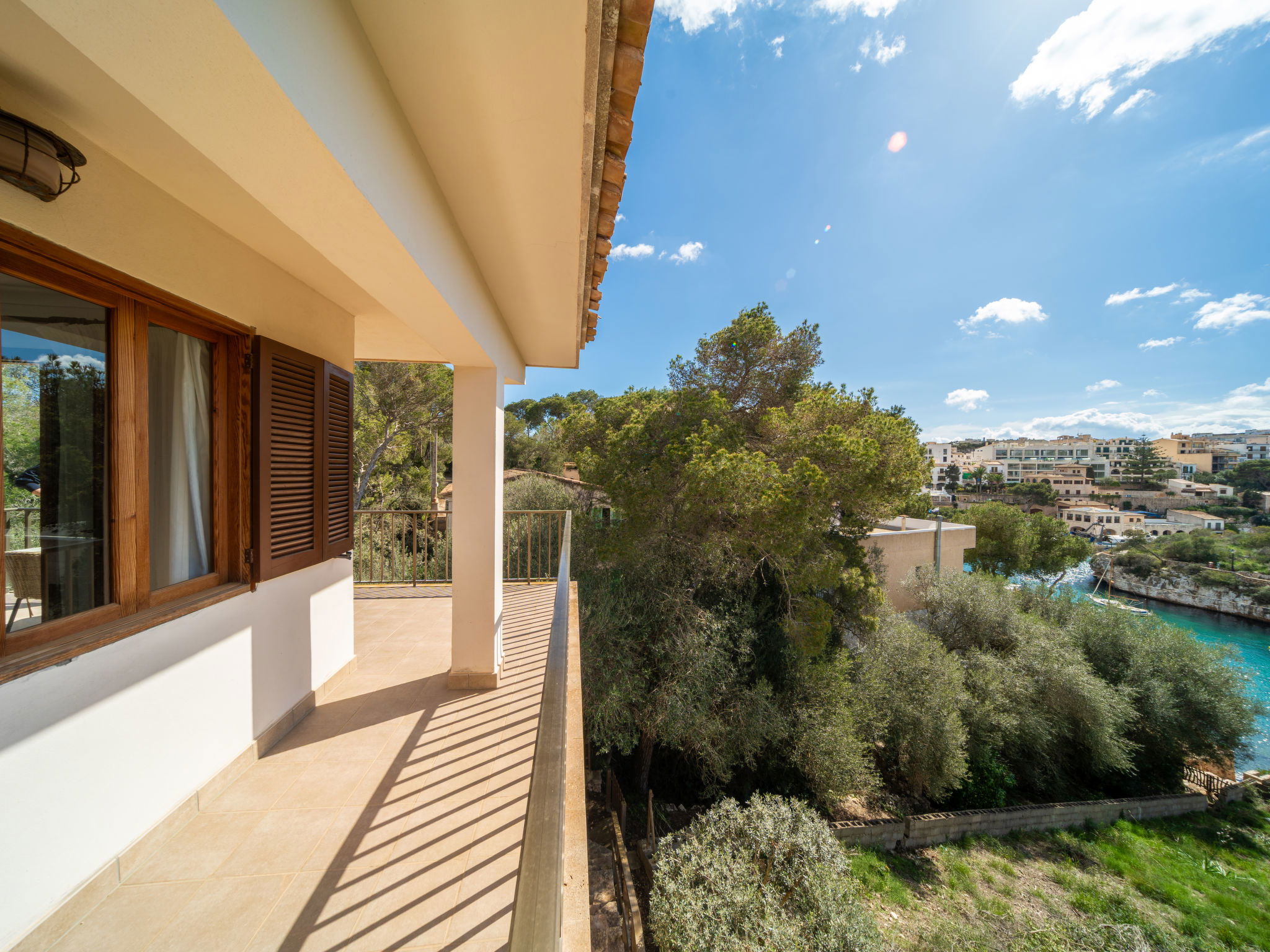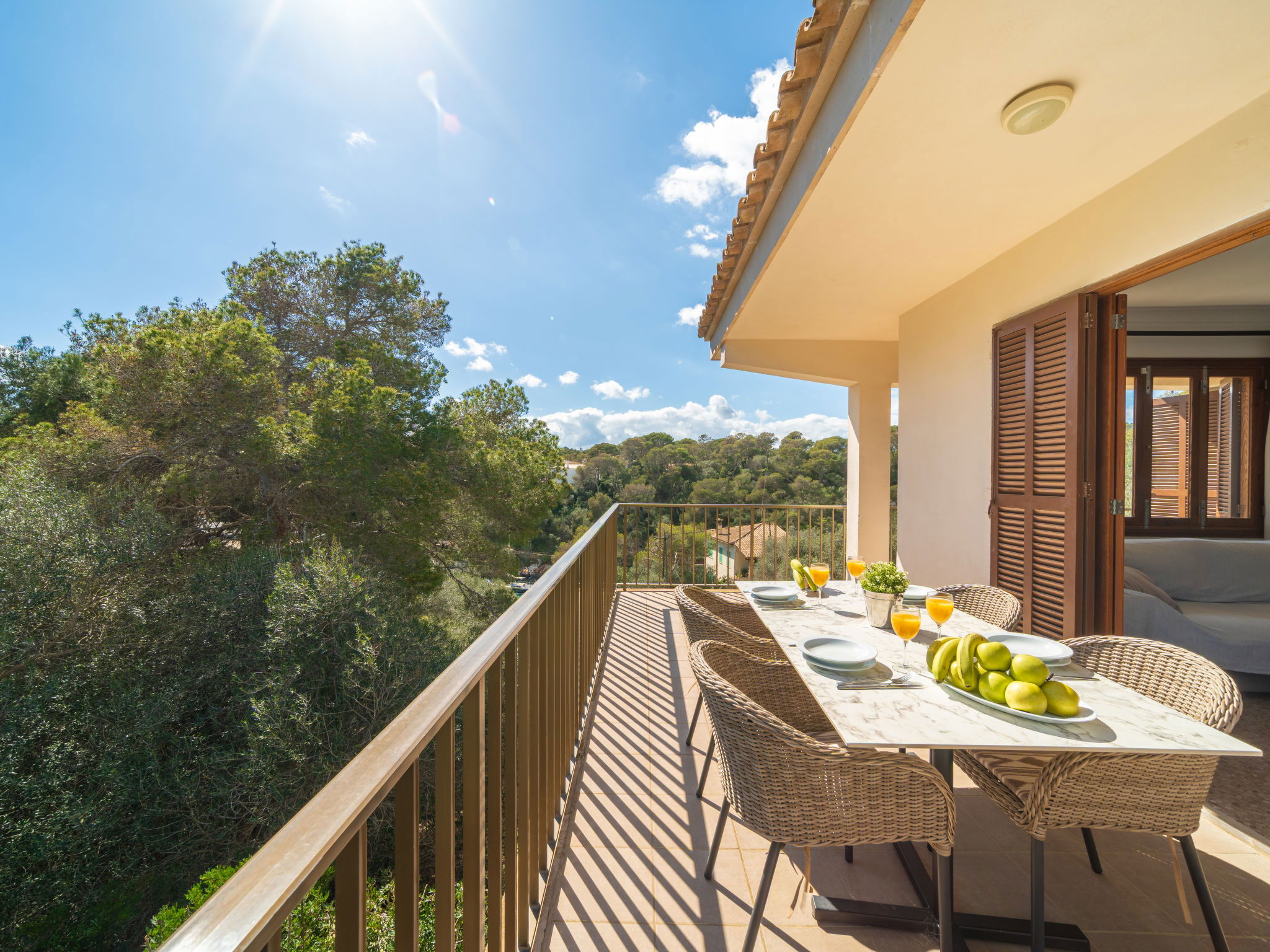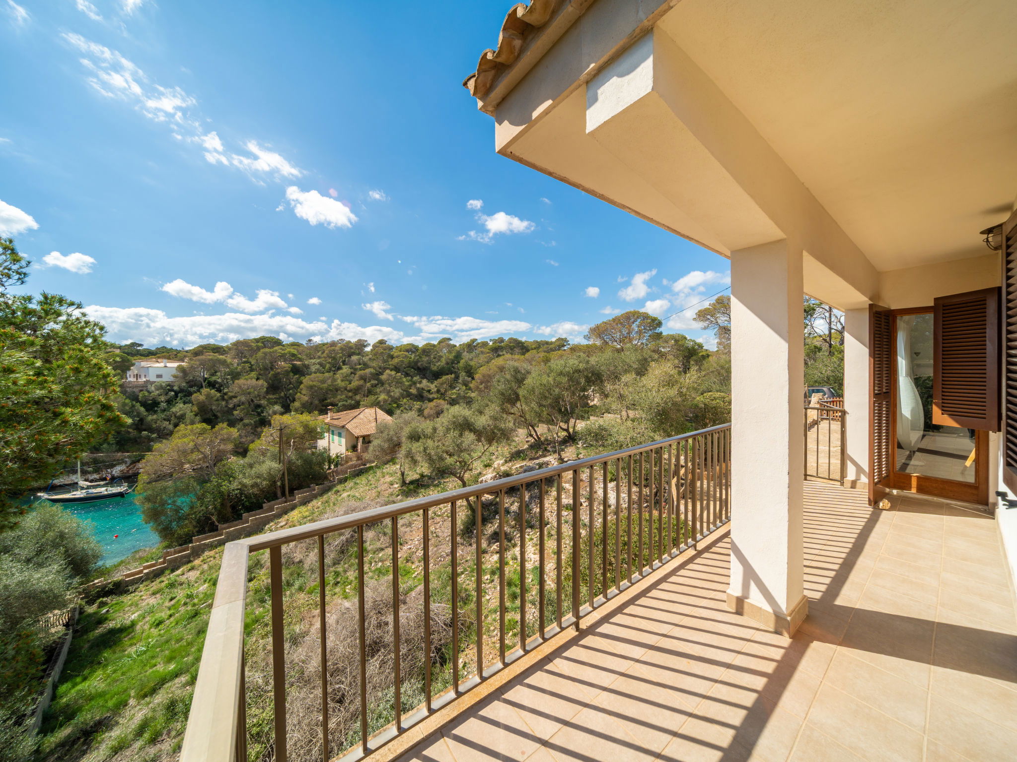 "Cas Padrins de Santanyi", 4-room villa 160 m2. Object suitable for 4 adults + 2 children. Bright, simple and practical furnishings: living/dining room with air conditioning and forced-air heating. Exit to the terrace. 2 double bedrooms, each room with 1 french bed (1 x 180 cm, length 200 cm), air conditioning and forced-air heating. 1 double bedroom with 2 beds (90 cm, length 200 cm), air conditioning and forced-air heating. Kitchen (oven, dishwasher, 4 ceramic glass hob hotplates, toaster, kettle, microwave, electric coffee machine). 2 baths/WC. Natural stone floors. Patio. Terrace furniture, barbecue, deck chairs, sitting area. Very beautiful view of the bay. Facilities: washing machine, iron, children's high chair, baby cot for up to 2 year olds, hair dryer. Internet (WiFi, free). Parking at the house. Suitable for families. ETV/8248 // Reg. Nr.: ESFCTU00000700800074732400000000000000000000ETV/82482