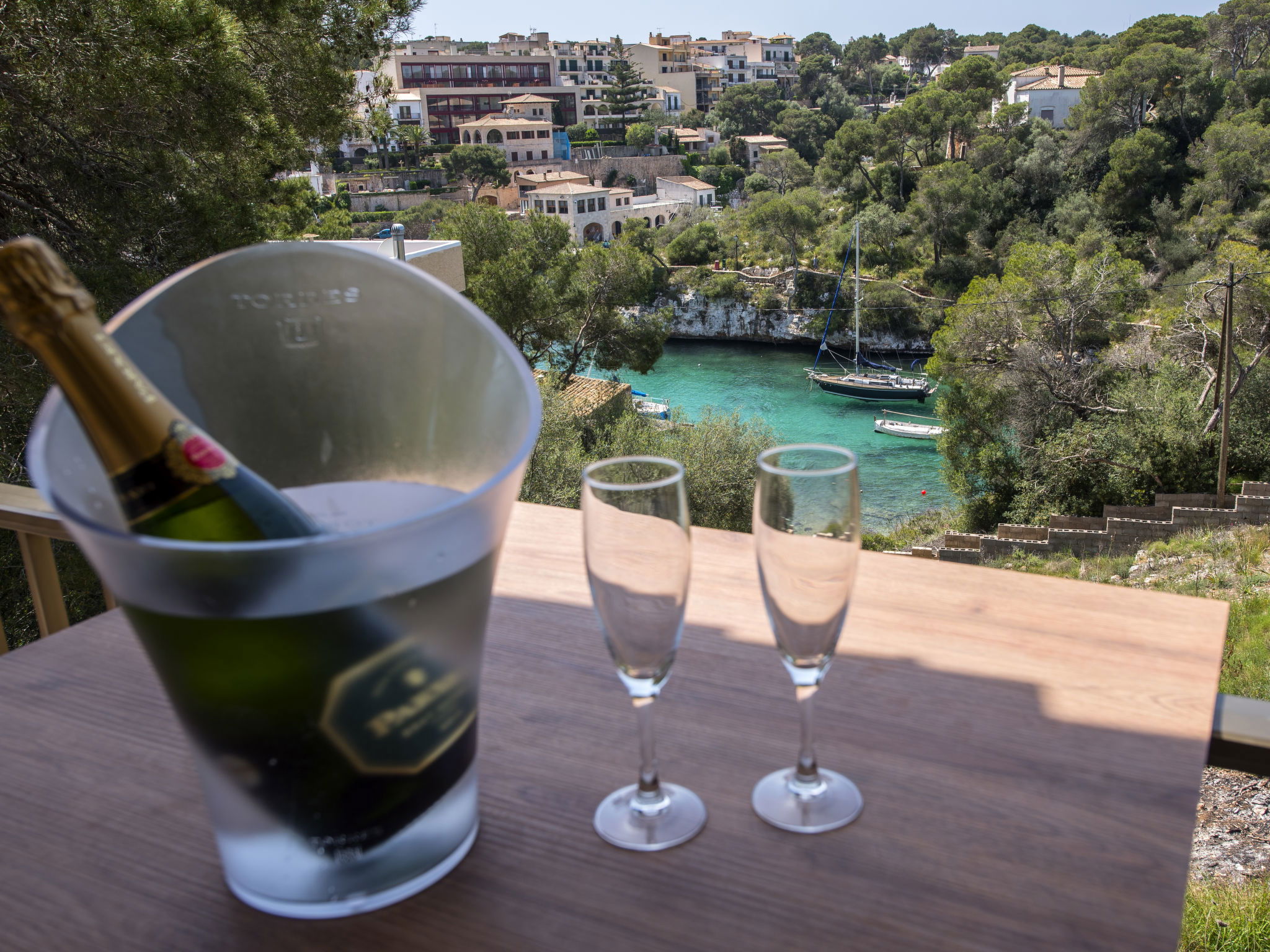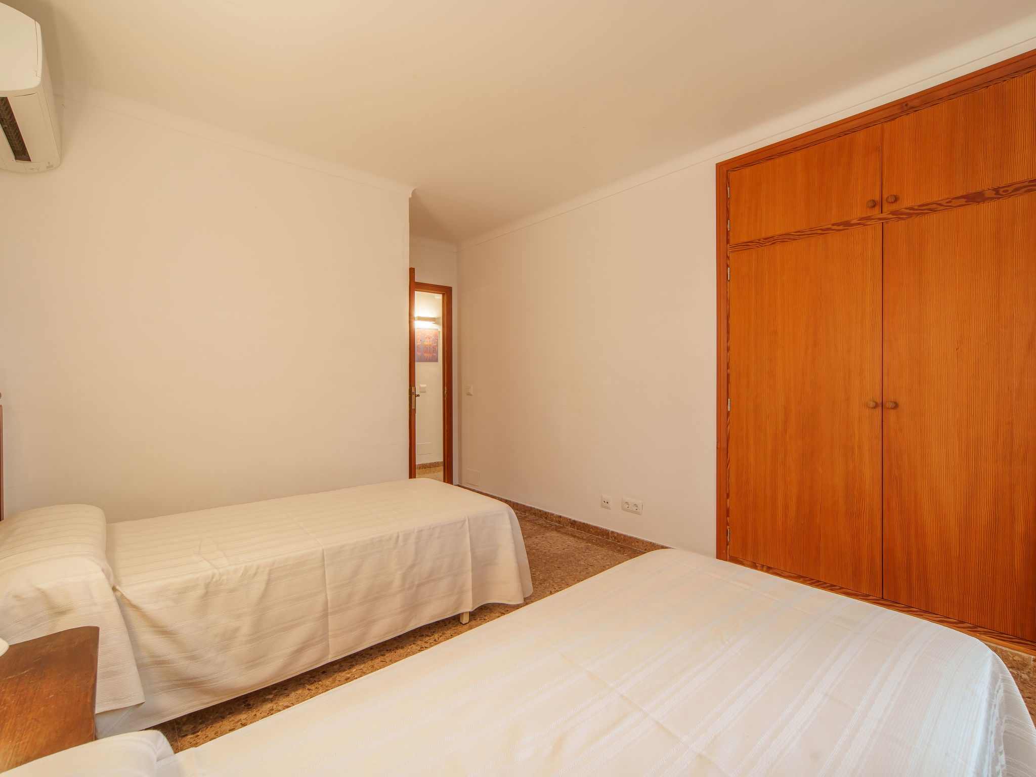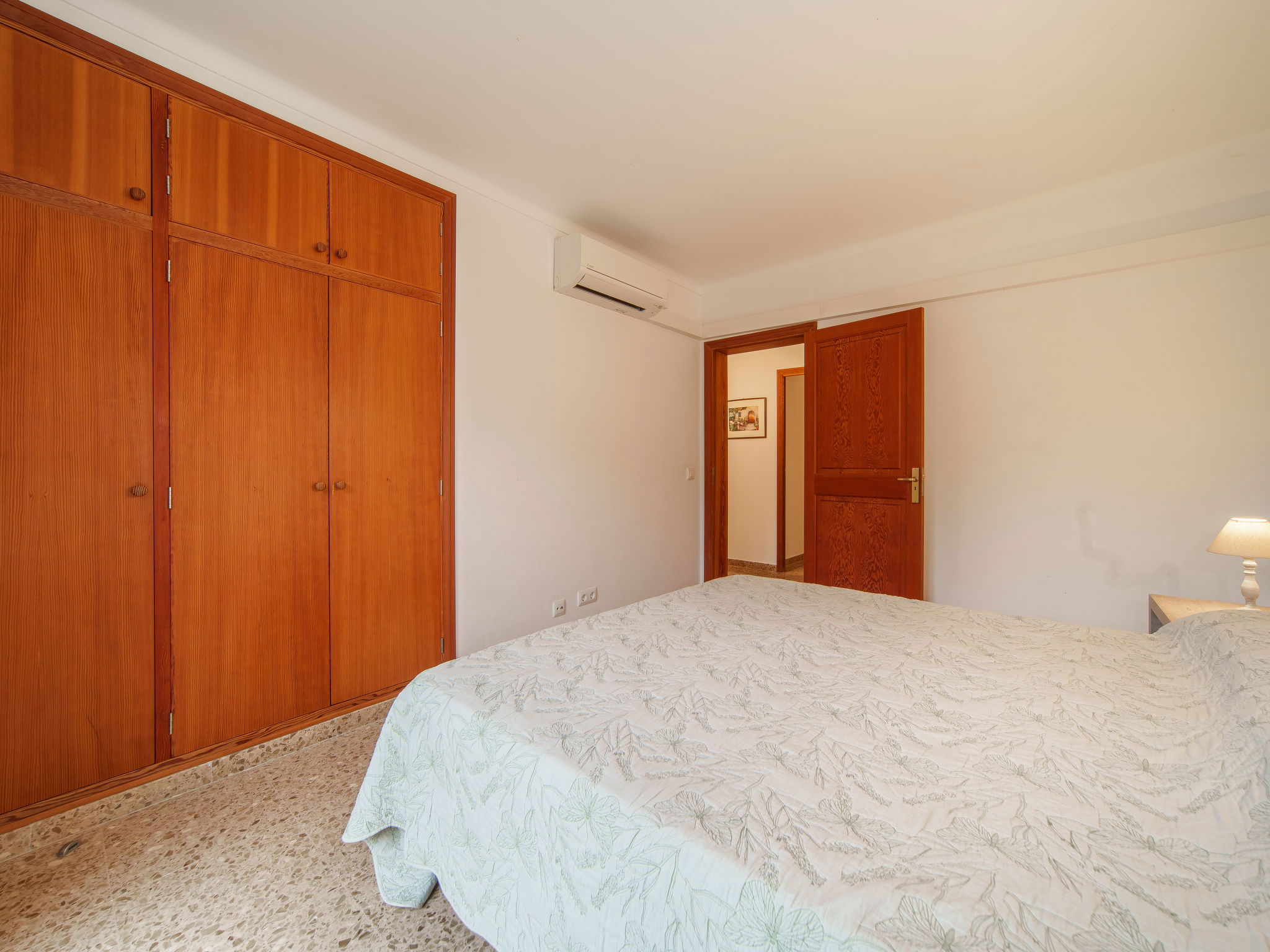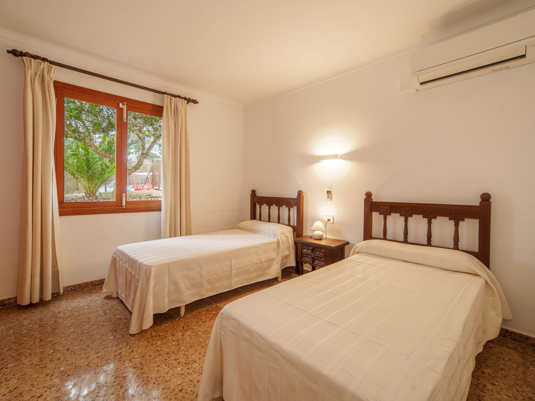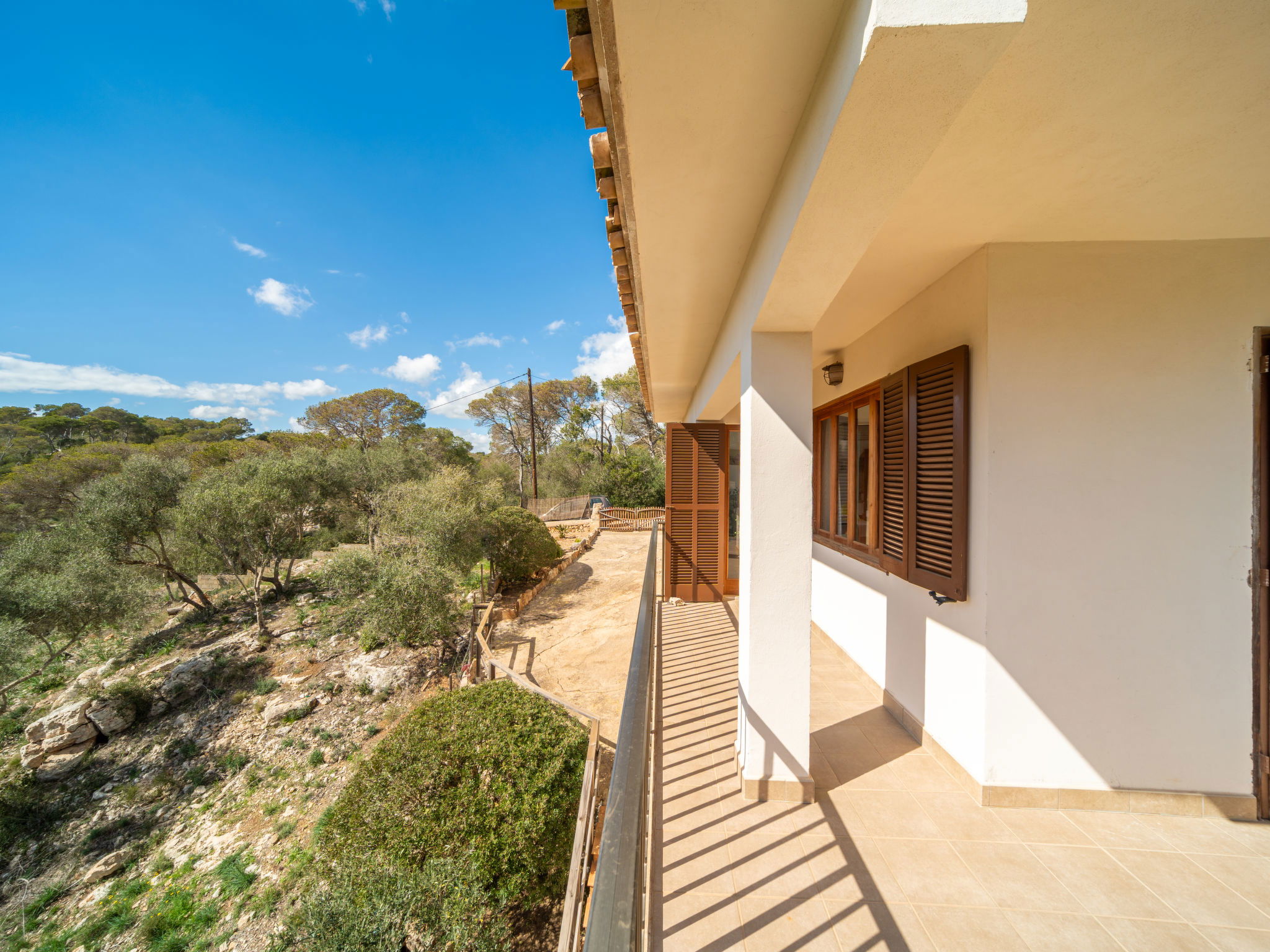 "Cas Padrins de Santanyi", 4-room villa 160 m2. Object suitable for 4 adults + 2 children. Bright, simple and practical furnishings: living/dining room with air conditioning and forced-air heating. Exit to the terrace. 2 double bedrooms, each room with 1 french bed (1 x 180 cm, length 200 cm), air conditioning and forced-air heating. 1 double bedroom with 2 beds (90 cm, length 200 cm), air conditioning and forced-air heating. Kitchen (oven, dishwasher, 4 ceramic glass hob hotplates, toaster, kettle, microwave, electric coffee machine). 2 baths/WC. Natural stone floors. Patio. Terrace furniture, barbecue, deck chairs, sitting area. Very beautiful view of the bay. Facilities: washing machine, iron, children's high chair, baby cot for up to 2 year olds, hair dryer. Internet (WiFi, free). Parking at the house. Suitable for families. ETV/8248 // Reg. Nr.: ESFCTU00000700800074732400000000000000000000ETV/82482