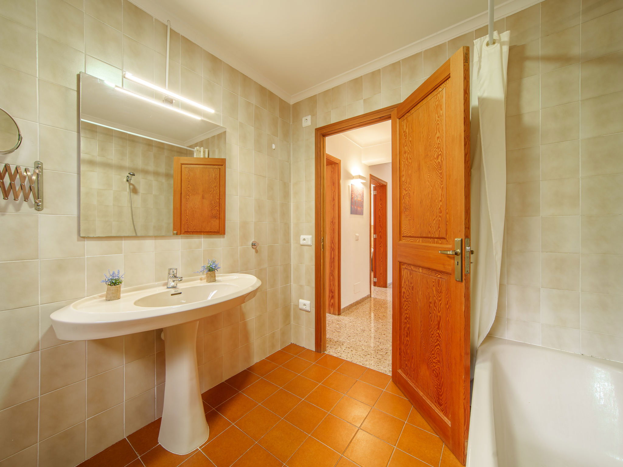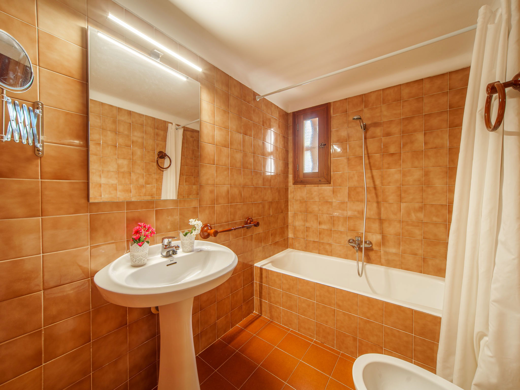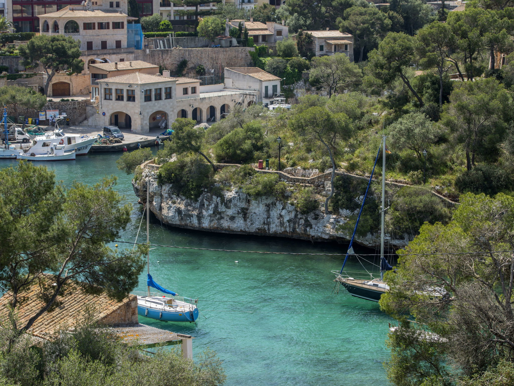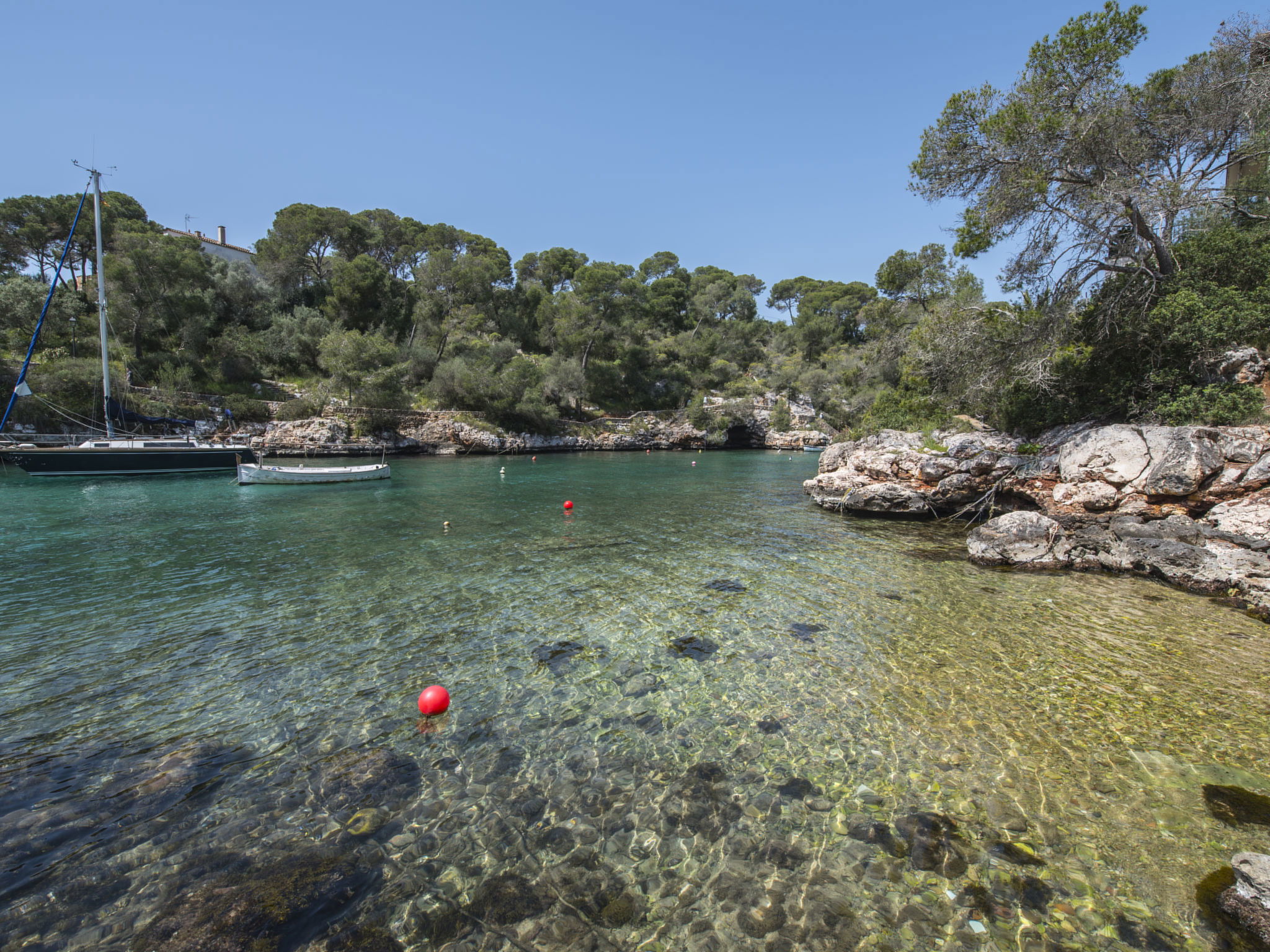 Santanyi: Large, cosy, simple house "Cas Padrins de Santanyi". 20 m from the sea, direct access to the beach. In the house: WiFi, air conditioning, washing machine. Parking at the house. Shop 6 km, grocery 6 km, supermarket 6 km, shopping centre 6 km, restaurant 700 m, bar 550 m, bus stop "Cala Figuera" 800 m, sandy beach "Ses Covetes" 3 km, shingle beach "Es mitjorn" 30 m, rocky beach "Cala Figuera" 25 m. Marina 200 m.