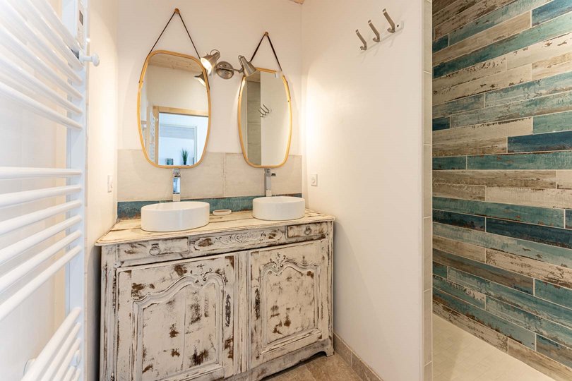 Upstairs, Villa has 3 bedrooms including a master suite with its adjoining bathroom, and two other bedrooms (a double bedroom and a bedroom with two single beds) which have a bathroom independent.