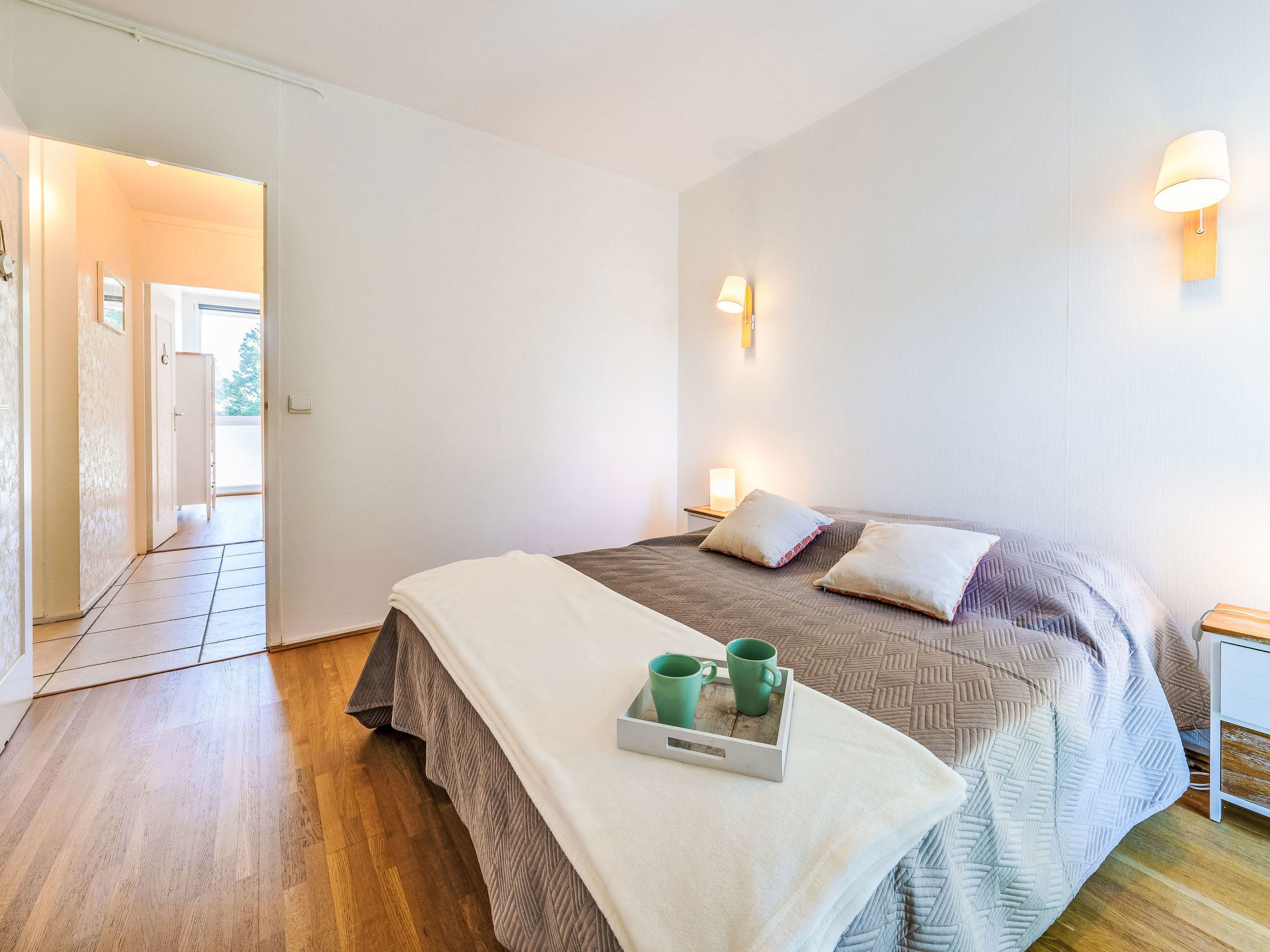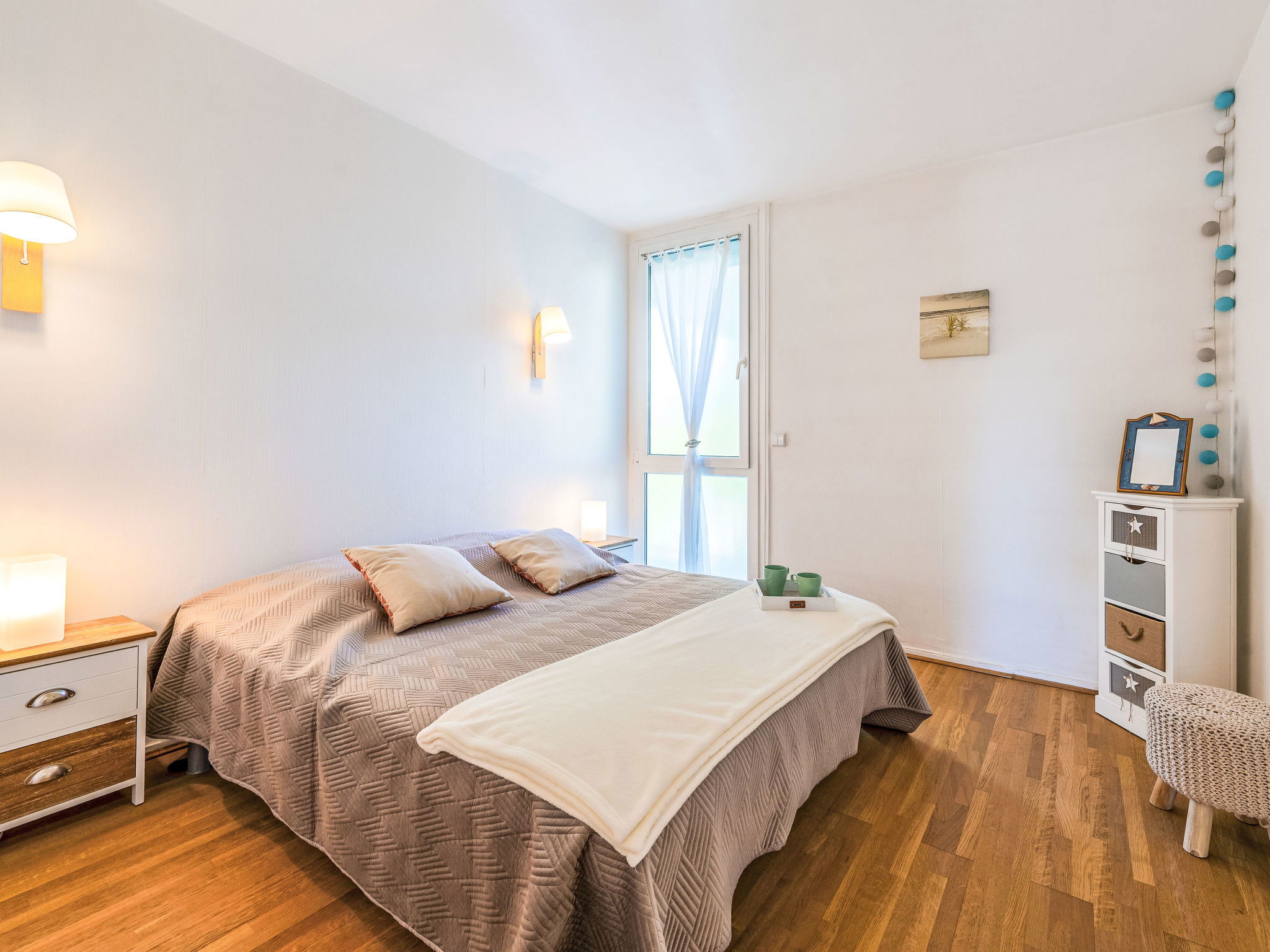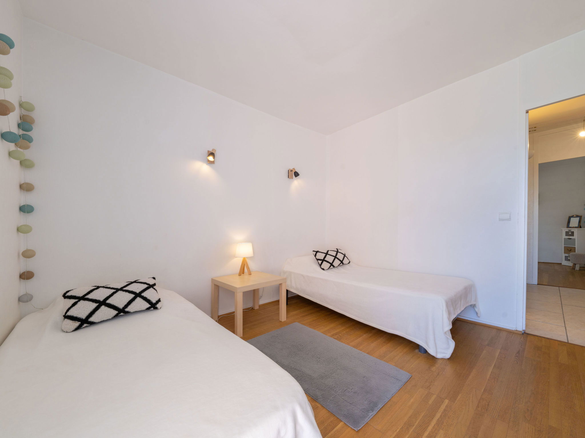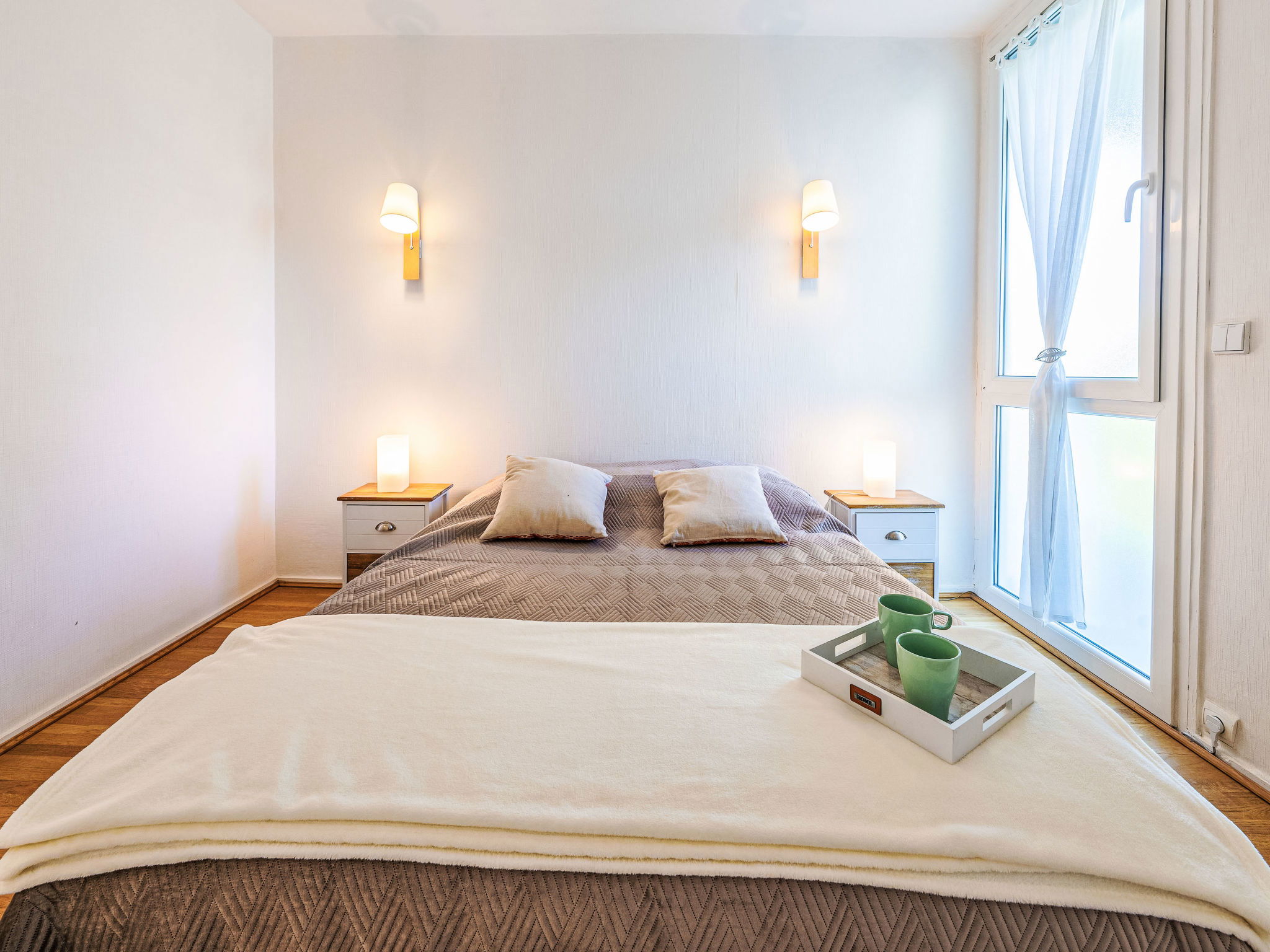 3-room apartment 73 m2 on 2nd floor. Comfortable and beautiful furnishings: living/dining room with TV (flat screen). Exit to the balcony. 1 room with 1 french bed (1 x 140 cm, length 190 cm). 1 room with 2 beds (90 cm, length 190 cm). Kitchen (4 hot plates, oven, dishwasher, toaster, kettle, microwave, freezer, electric coffee machine, Capsules for coffee machine (Nespresso) extra). Shower, sep. WC. Underfloor heating. Balcony 7 m2, east facing position. Balcony furniture. Facilities: washing machine, iron, hair dryer. Internet (WiFi, free). Parking space n 597 (1 car). Please note: smoke alarm, no lift. Offer by a private individual according to Art. 155, IV of CGI. 33529001777C5
