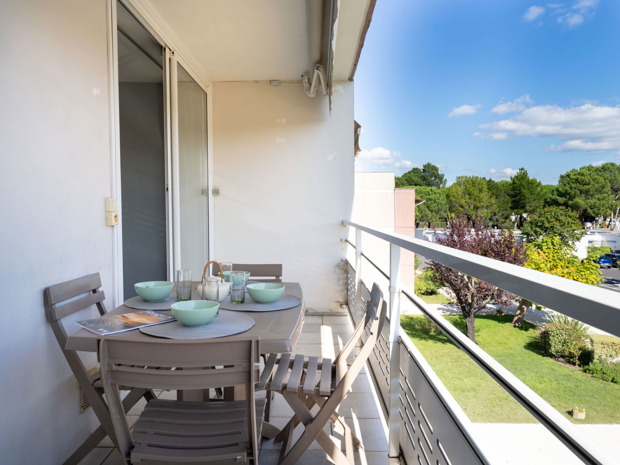Arcachon: Residence "Arcachon Marines". In the district of d'Aiguillon, 1.2 km from the sea, 1.2 km from the beach. Shop 1 km, grocery, supermarket 850 m, shopping centre 2.6 km, restaurant 1 km, bar 1 km, bakery 1 km, café 1 km, bus stop "Les Mouettes" 50 m, railway station "Arcachon" 1.7 km, sandy beach "Aiguillon" 1.2 km, park "Mauresque" 2 km, indoor swimming pool 50 m, thermal baths "Thalazur" 14.2 km. Sports harbour 2.3 km, golf course (18 hole) 4.6 km. Nearby attractions: Dune du Pyla 11.2 km, ArcaJetMarine 1.2 km, Observatoire Sainte Cécile 2.5 km, Marché Municipal 2.3 km, Eratopia 7.5 km, Navette Maritime pour le Cap Ferret 1.7 km. Well-known lakes can easily be reached: Lac de la Magdeleine 8.8 km, Lac de Cazaux 16.3 km. The keys‘ handover takes place by the agency in Arcachon, 2 km.