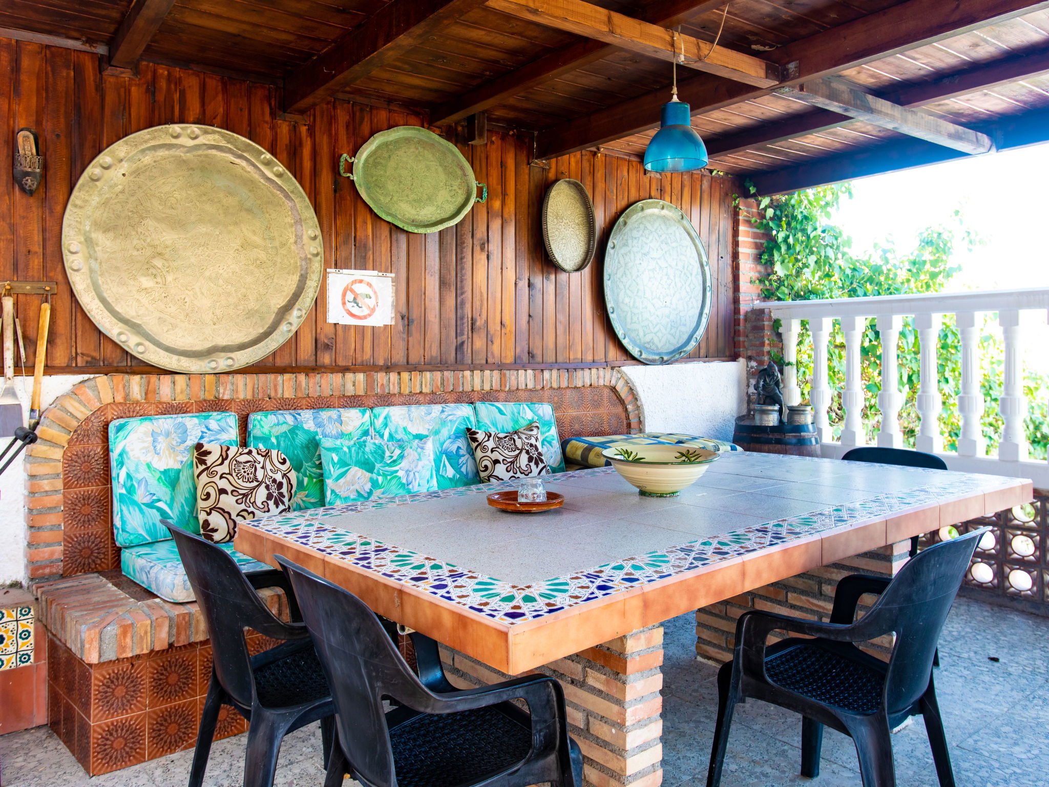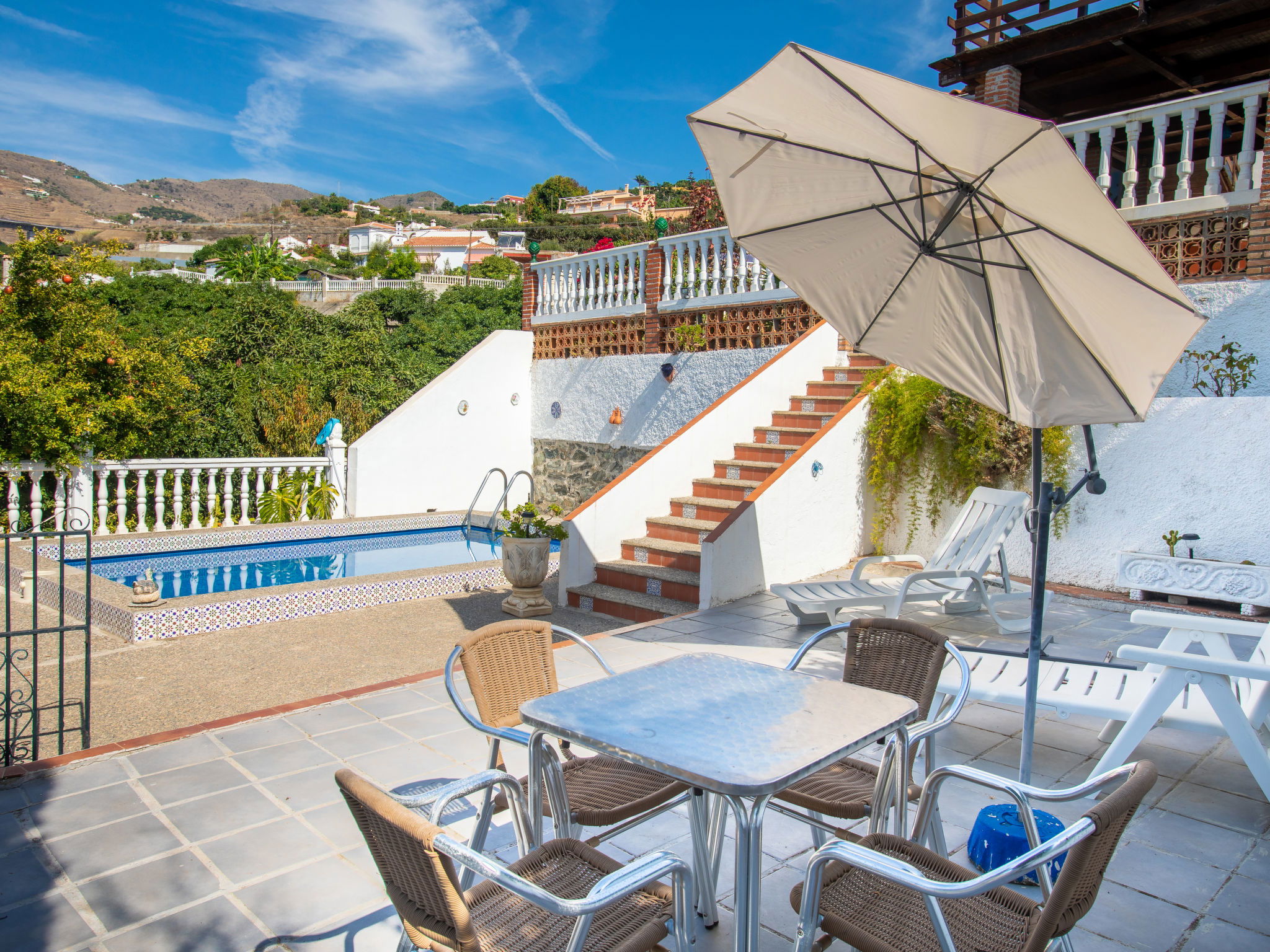 "Fortuna", 3-room house 100 m2. Practical furnishings: living/dining room with winter garden with dining table, digital TV, gas heater, air conditioning, fan and forced-air heating. Exit to the terrace. 1 room with 1 bed " 1.5 km, sandy beach "Playa Cabria" 300 m. Nearby attractions: Nerja, Cuevas de Nerja, Frigiliana, Granada, Salobreña, Aquatropic. Well-known ski regions can easily be reached: Sierra Nevada. Hiking paths: Valle de Lecrin, Alpujarras, Sierra Almijara. Please note: car recommended. The owner does not accept any youth groups. The owner lives on the same property.
