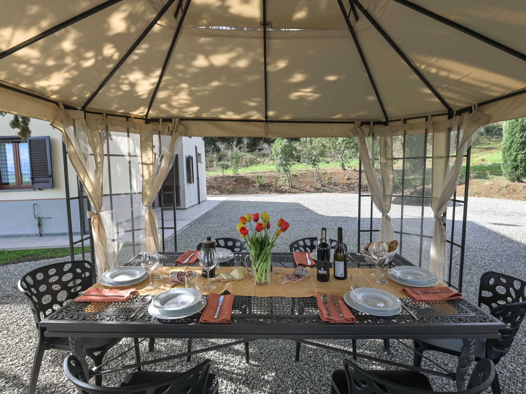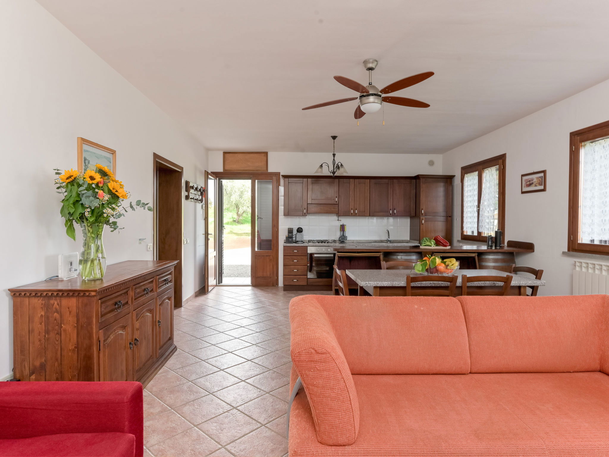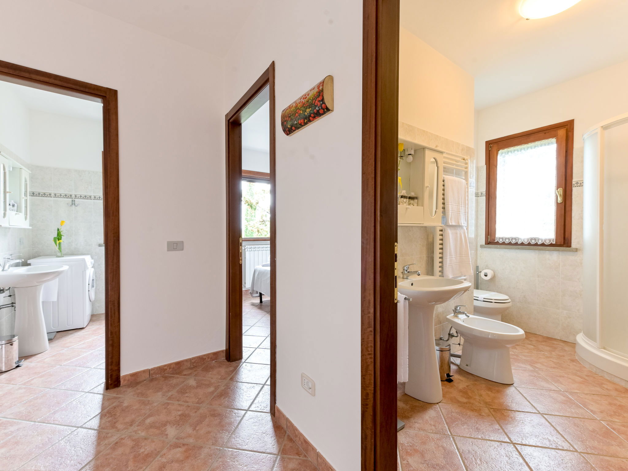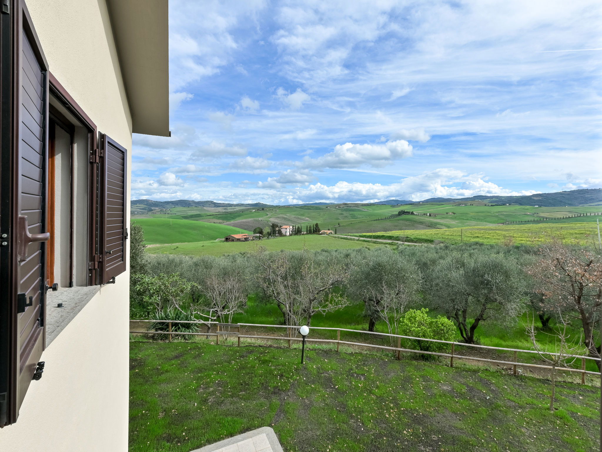 6-room house 160 m2 on 2 levels. Spacious, practical furnishings: large living/dining room with dining table and TV. Exit to the garden. 1 large double bedroom. 1 room with 2 beds. Open kitchen (oven, dishwasher, 4 gas rings, kettle, electric coffee machine). Exit to the garden. Shower/bidet/WC. Upper floor: 3 double bedrooms. 2 showers/bidet/WC. Gas heating. Heating available only from 15.10. to 15.04. Large balcony, large patio, garden, lawn, porch. Terrace furniture, balcony furniture, barbecue, deck chairs. Beautiful panoramic view of the countryside. Facilities: washing machine, mosquito net, baby cot for up to 2 year olds, hair dryer. Internet (WiFi, free). Please note: maximum 2 pets/ dogs allowed. Private entrance, smoke alarm, fire extinguisher. No internal connecting door between the floors. IT053004B5564DLFYO