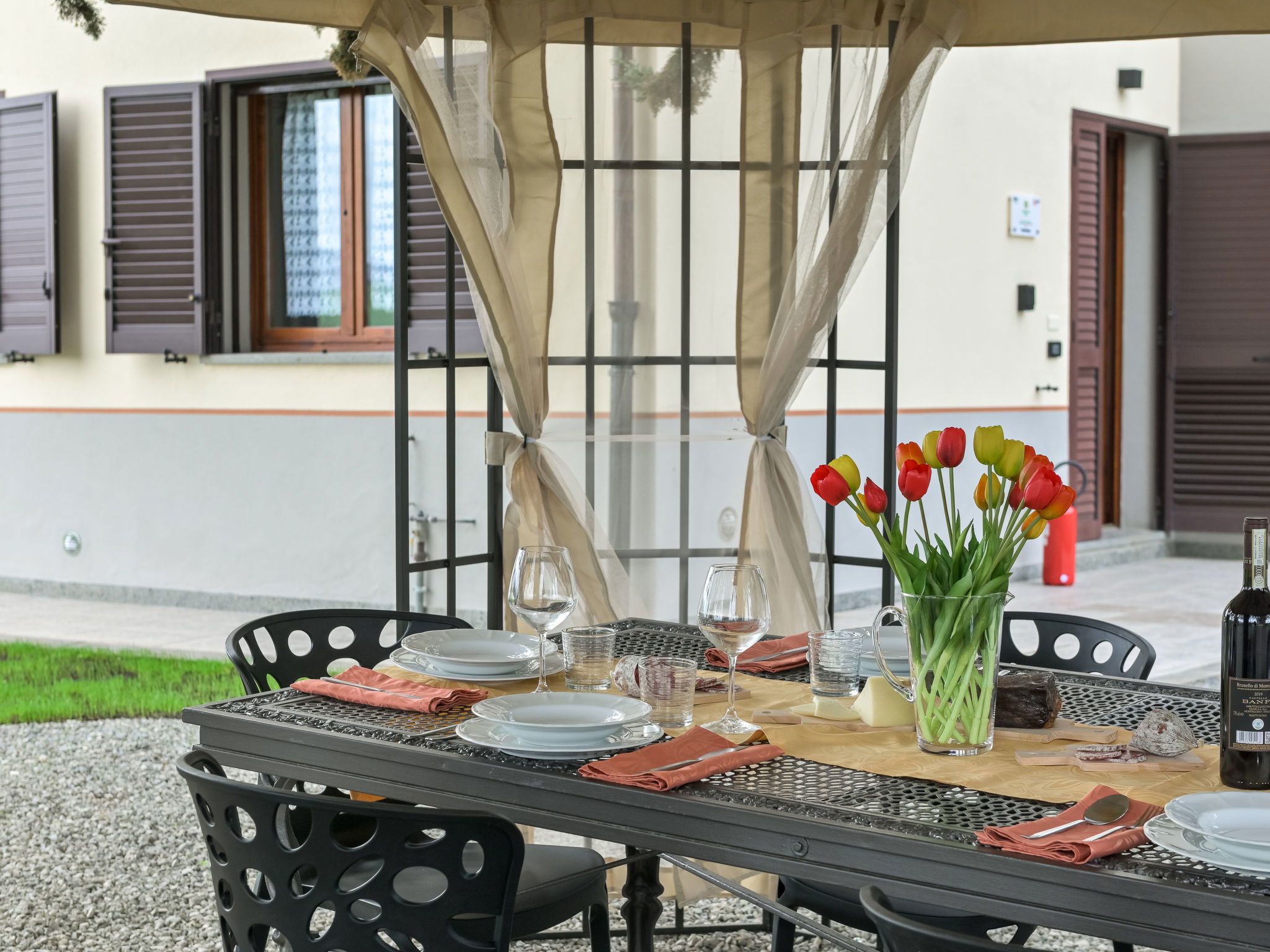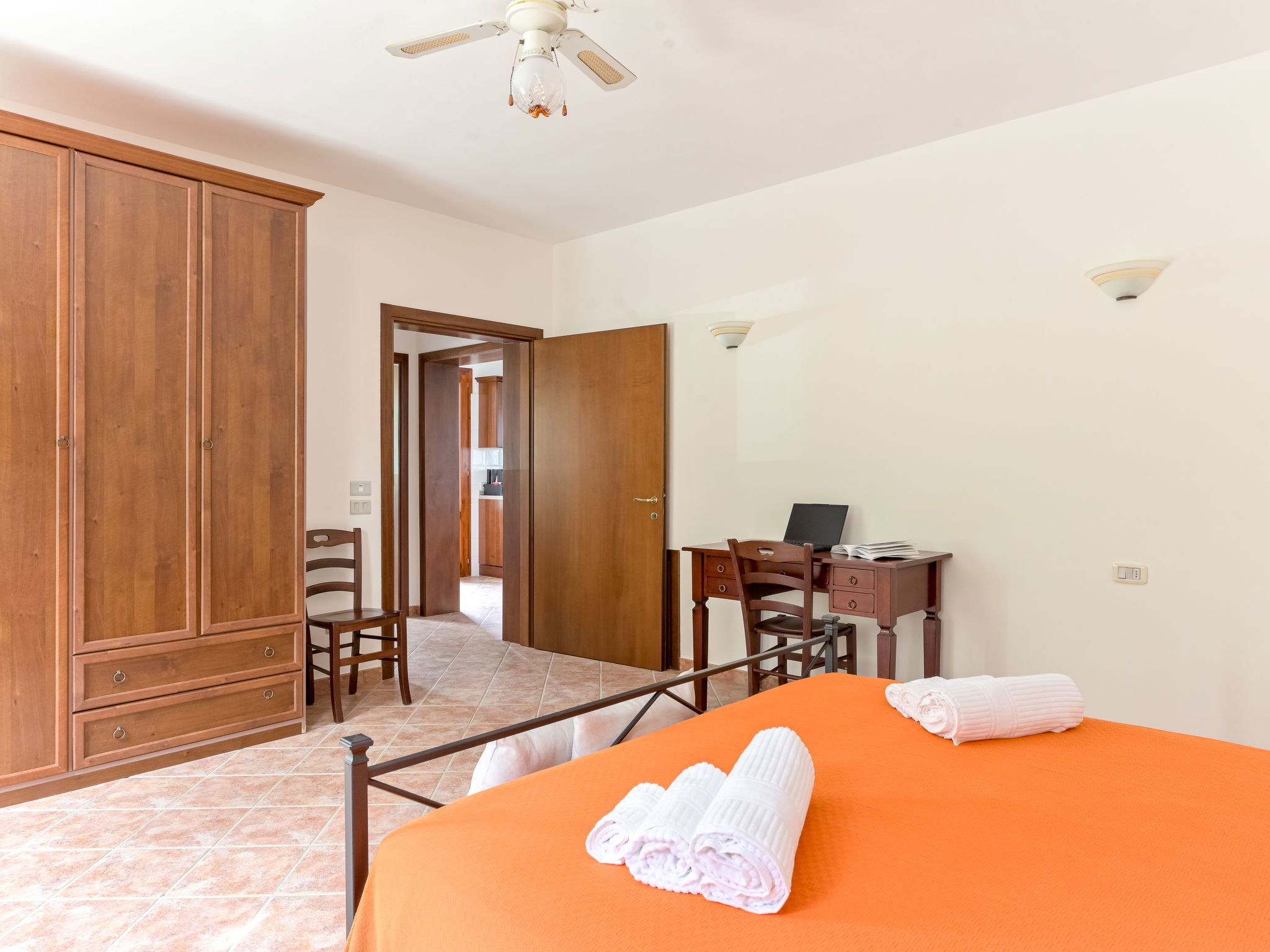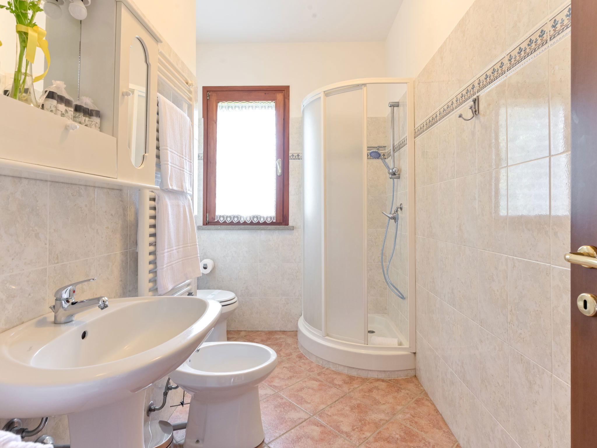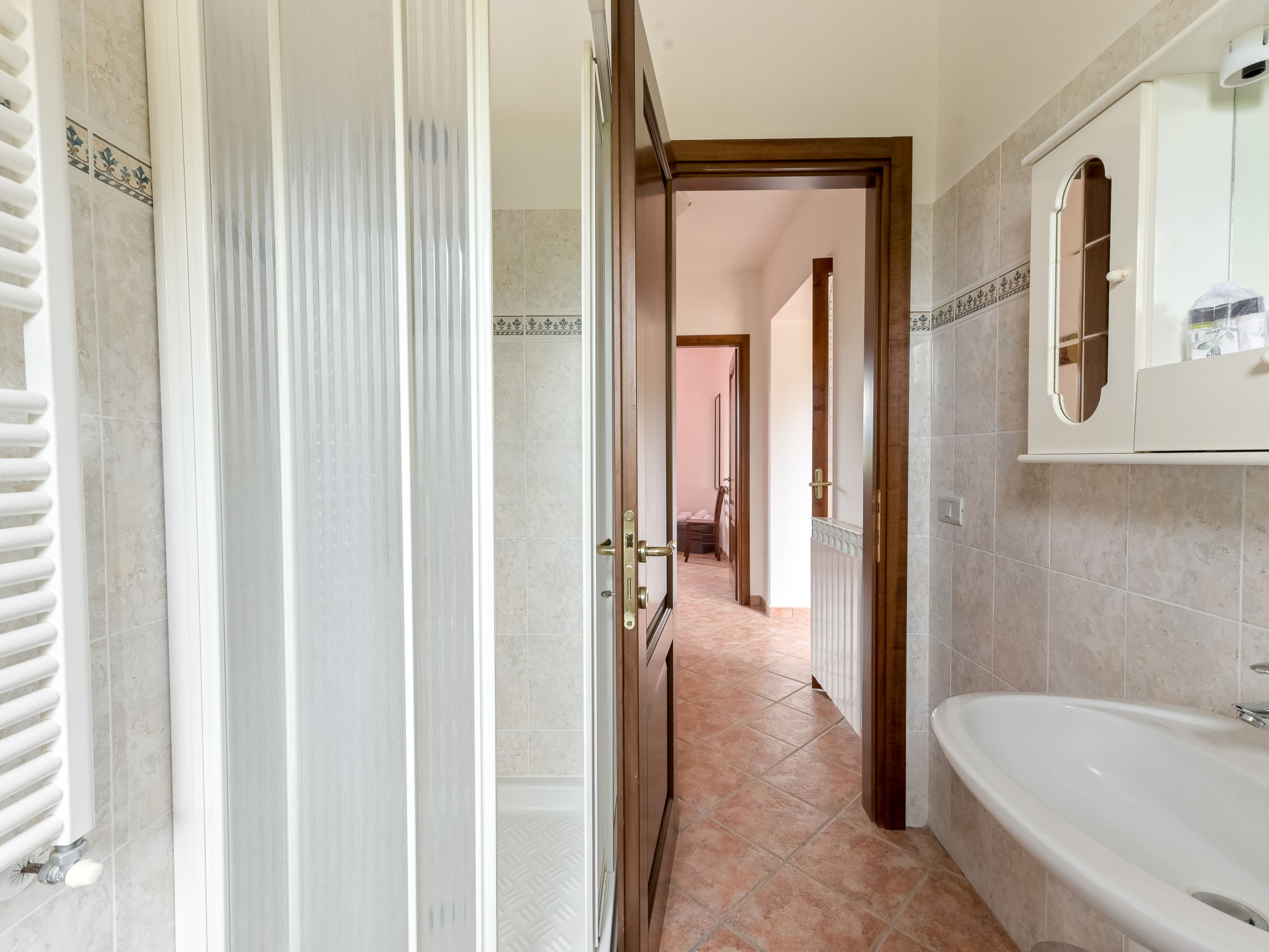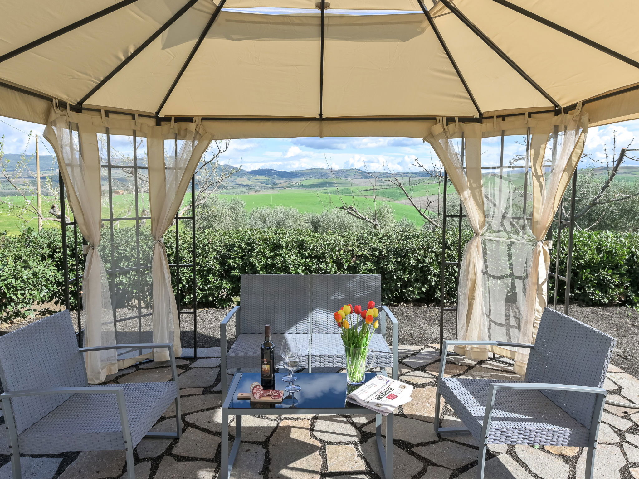 6-room house 160 m2 on 2 levels. Spacious, practical furnishings: large living/dining room with dining table and TV. Exit to the garden. 1 large double bedroom. 1 room with 2 beds. Open kitchen (oven, dishwasher, 4 gas rings, kettle, electric coffee machine). Exit to the garden. Shower/bidet/WC. Upper floor: 3 double bedrooms. 2 showers/bidet/WC. Gas heating. Heating available only from 15.10. to 15.04. Large balcony, large patio, garden, lawn, porch. Terrace furniture, balcony furniture, barbecue, deck chairs. Beautiful panoramic view of the countryside. Facilities: washing machine, mosquito net, baby cot for up to 2 year olds, hair dryer. Internet (WiFi, free). Please note: maximum 2 pets/ dogs allowed. Private entrance, smoke alarm, fire extinguisher. No internal connecting door between the floors. IT053004B5564DLFYO