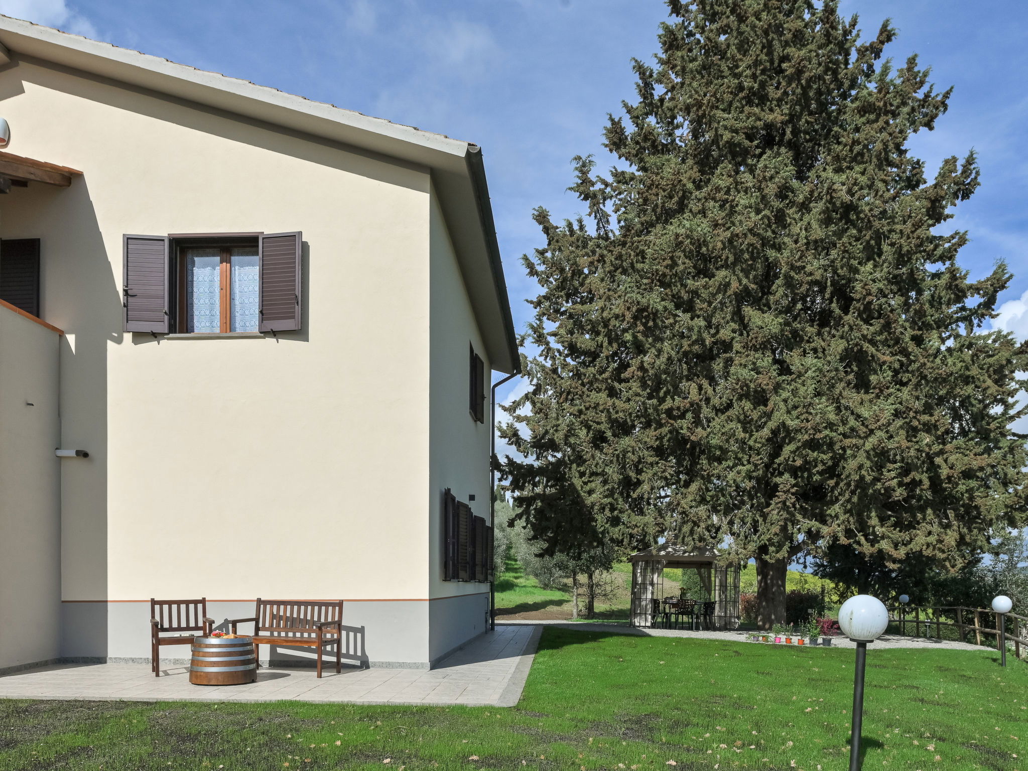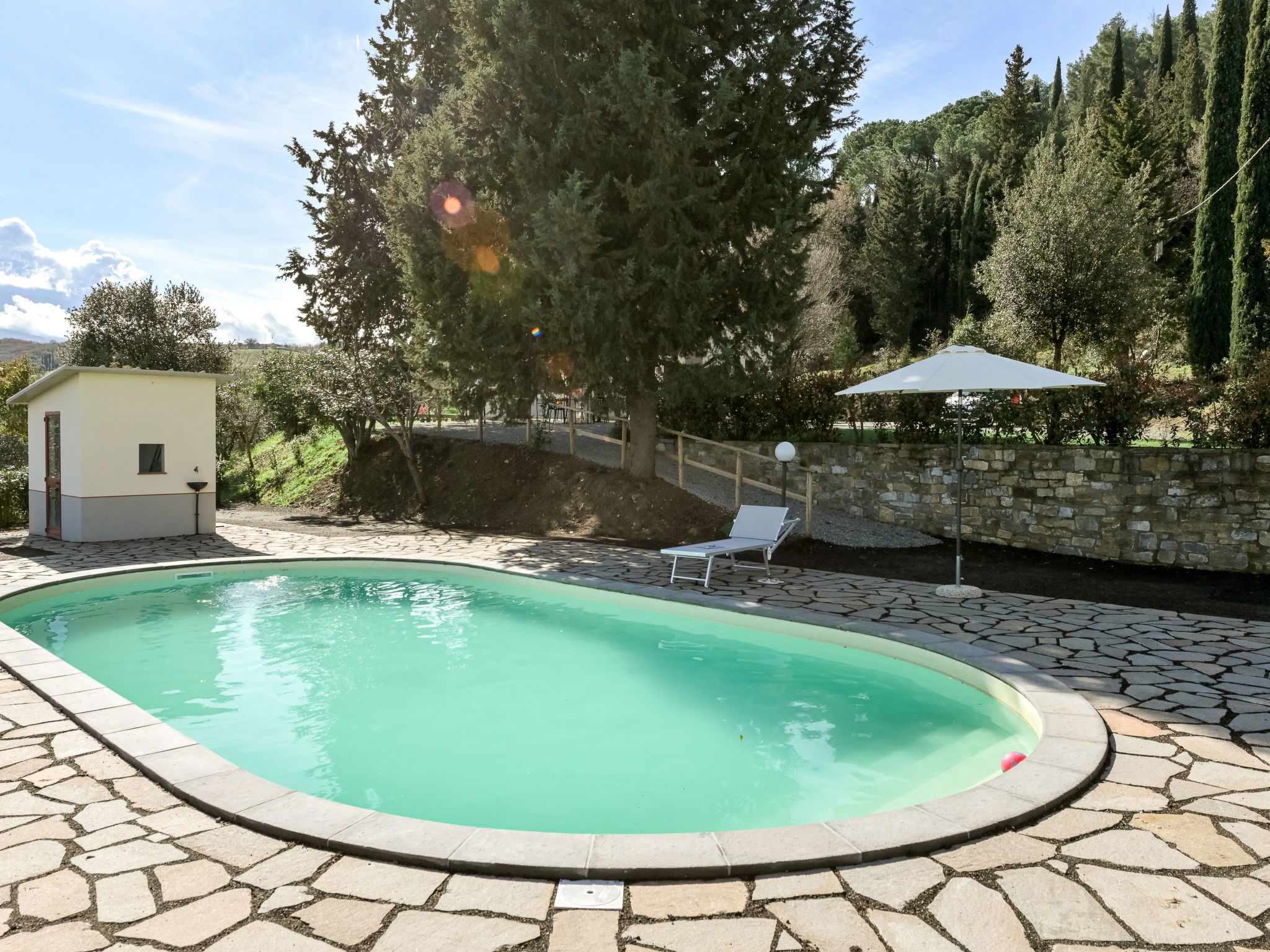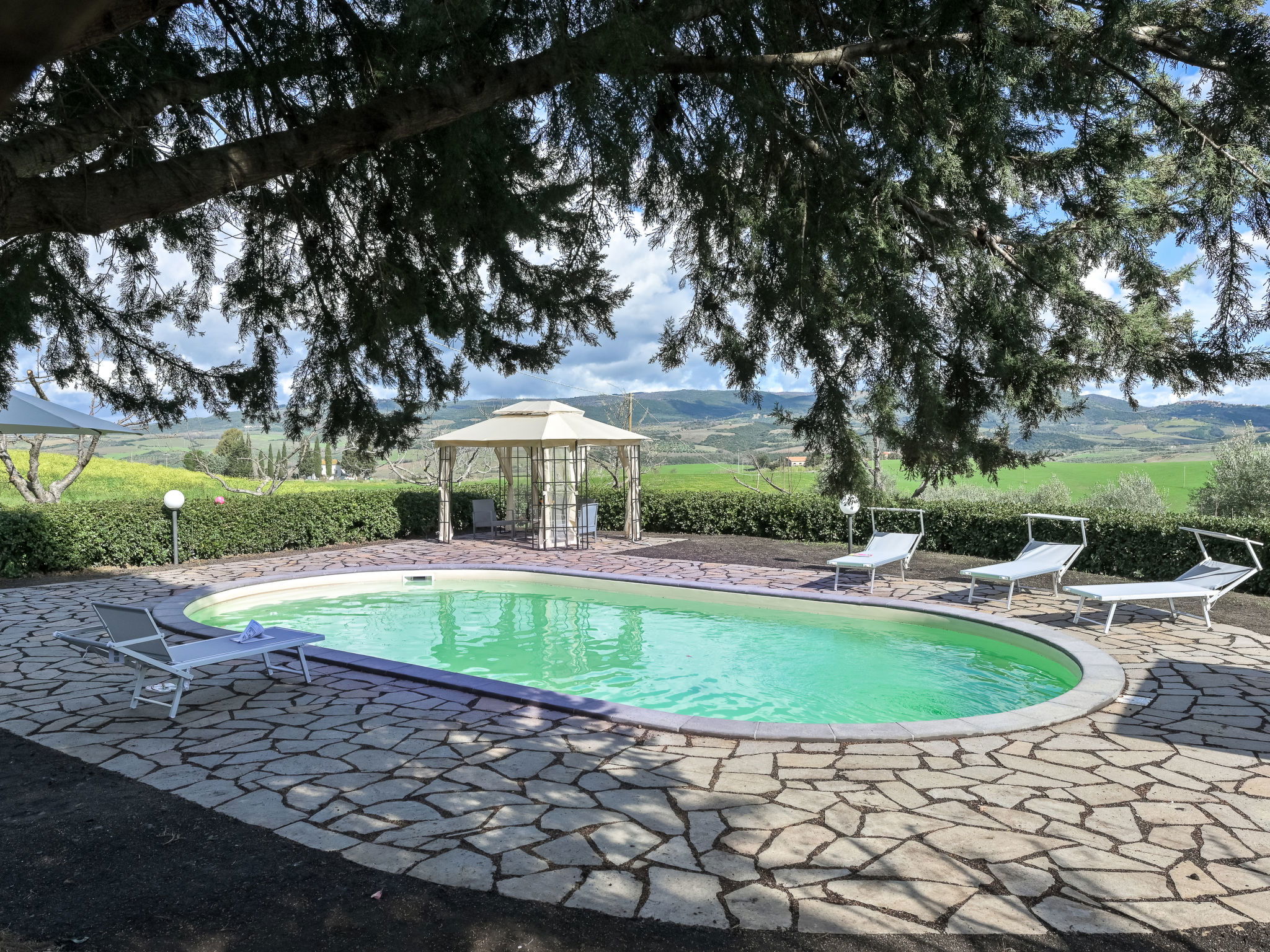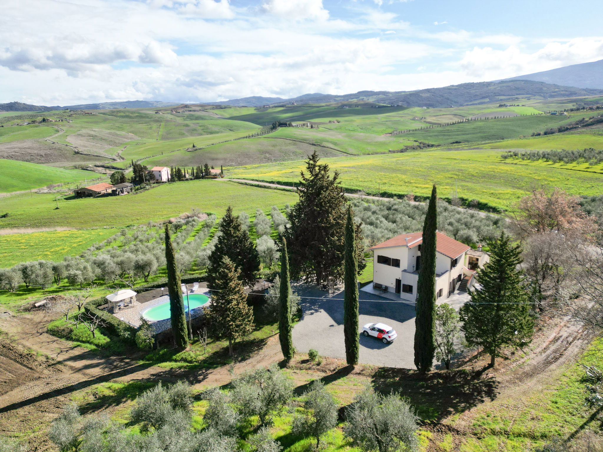Cosy house "Il Cipresso", 2 storeys, renovated in 2025, surrounded by trees and meadows. 2 km from the centre of Montenero, 23 km from the centre of Montalcino, in a secluded, quiet position, 60 km from the sea, 60 km from the beach, in the countryside. Private: terraced garden with wildlife garden and trees, swimming pool kidney shaped (10 x 5 m, depth 124 cm, seasonal availability: 15.Apr. - 30.Oct.). Outdoor shower, pergola, garden furniture, barbecue, parking at the house. Shop 2 km, grocery 2 km, supermarket 15 km, restaurant 2 km, bar 2 km, bakery 2 km, bus stop "Montenero Bivio" 7 km, railway station "Paganico" 20 km, sandy beach "Castiglione della Pescaia" 67 km, thermal baths "Bagni San Filippo" 40 km. Nearby attractions: Cinigiano / Castel del Piano 16 km, Monte Amiata 28 km, Grosseto 46 km, Pienza 45 km, Siena 60 km. Please note: car recommended.