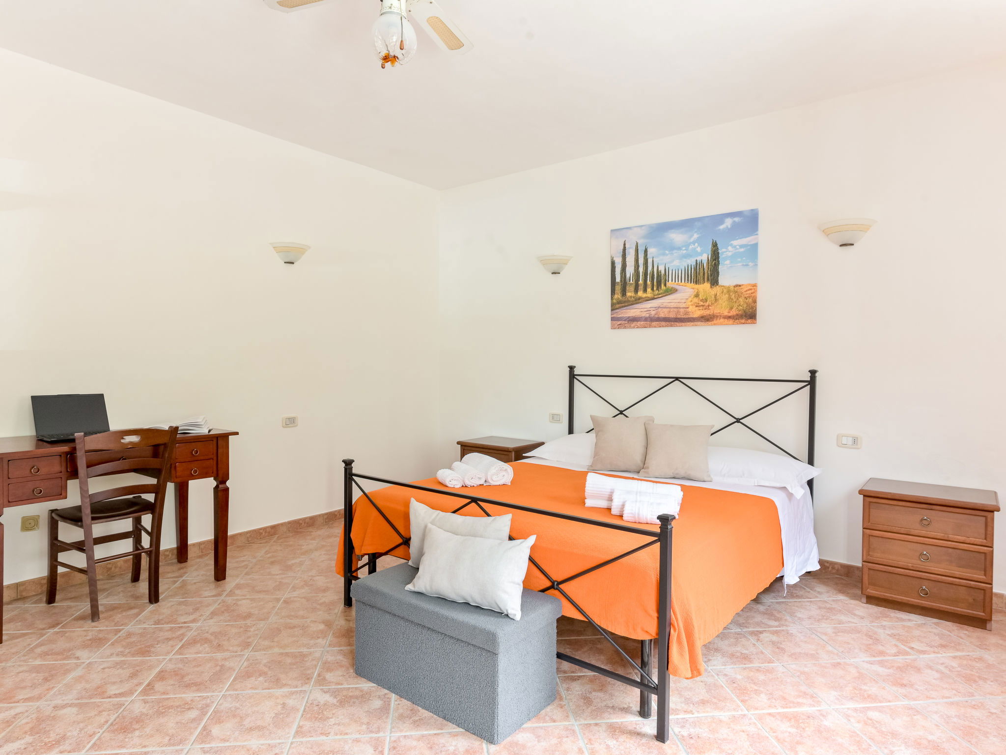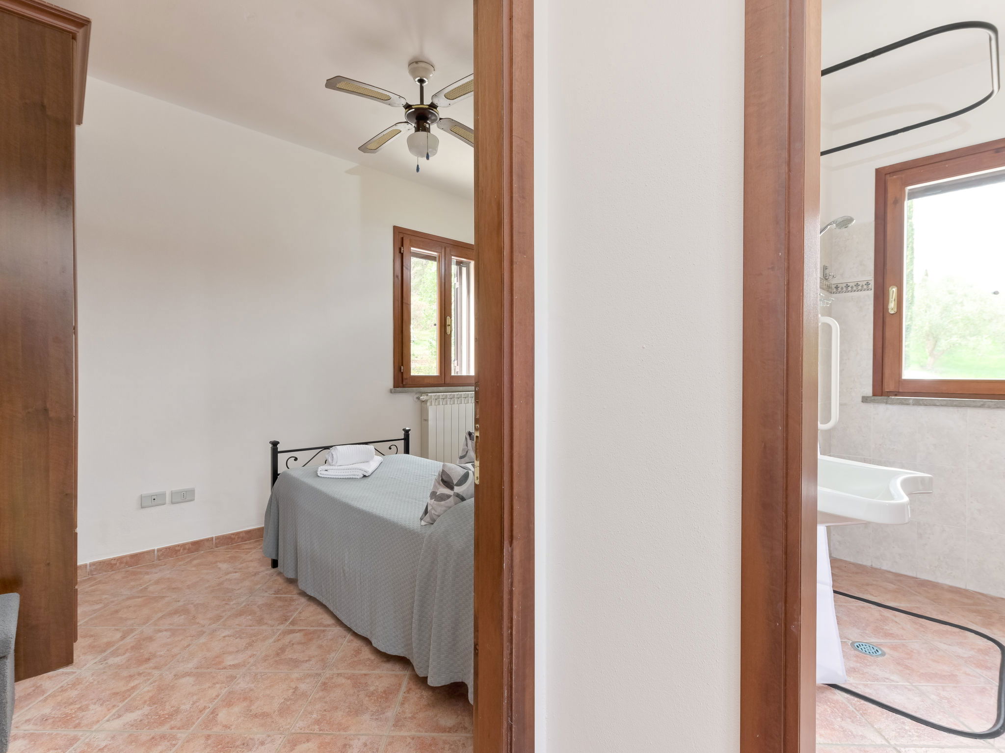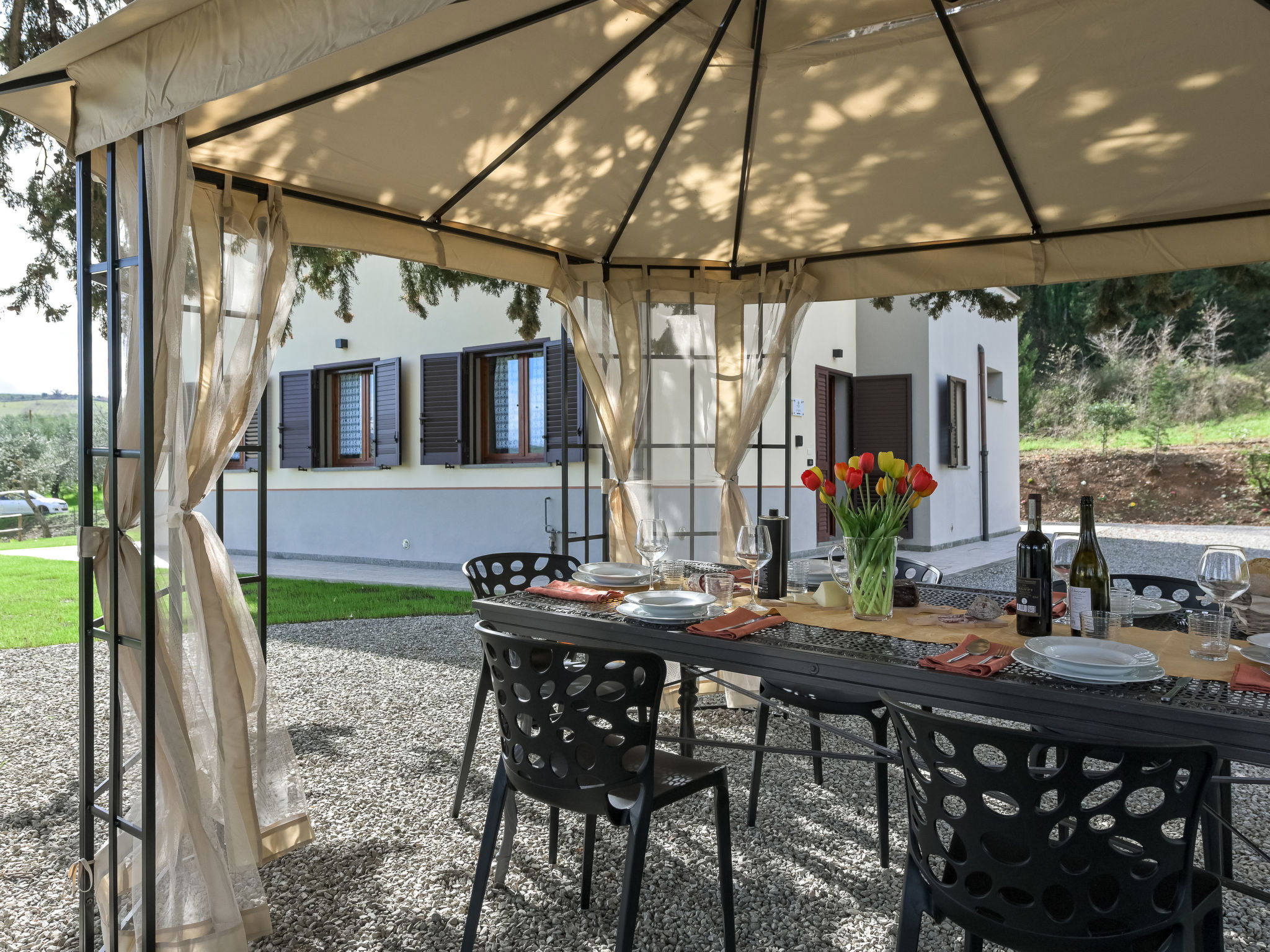 Cosy house "Il Cipresso", 2 storeys, renovated in 2025, surrounded by trees and meadows. 2 km from the centre of Montenero, 23 km from the centre of Montalcino, in a secluded, quiet position, 60 km from the sea, 60 km from the beach, in the countryside. Private: terraced garden with wildlife garden and trees, swimming pool kidney shaped (10 x 5 m, depth 124 cm, seasonal availability: 15.Apr. - 30.Oct.). Outdoor shower, pergola, garden furniture, barbecue, parking at the house. Shop 2 km, grocery 2 km, supermarket 15 km, restaurant 2 km, bar 2 km, bakery 2 km, bus stop "Montenero Bivio" 7 km, railway station "Paganico" 20 km, sandy beach "Castiglione della Pescaia" 67 km, thermal baths "Bagni San Filippo" 40 km. Nearby attractions: Cinigiano / Castel del Piano 16 km, Monte Amiata 28 km, Grosseto 46 km, Pienza 45 km, Siena 60 km. Please note: car recommended.