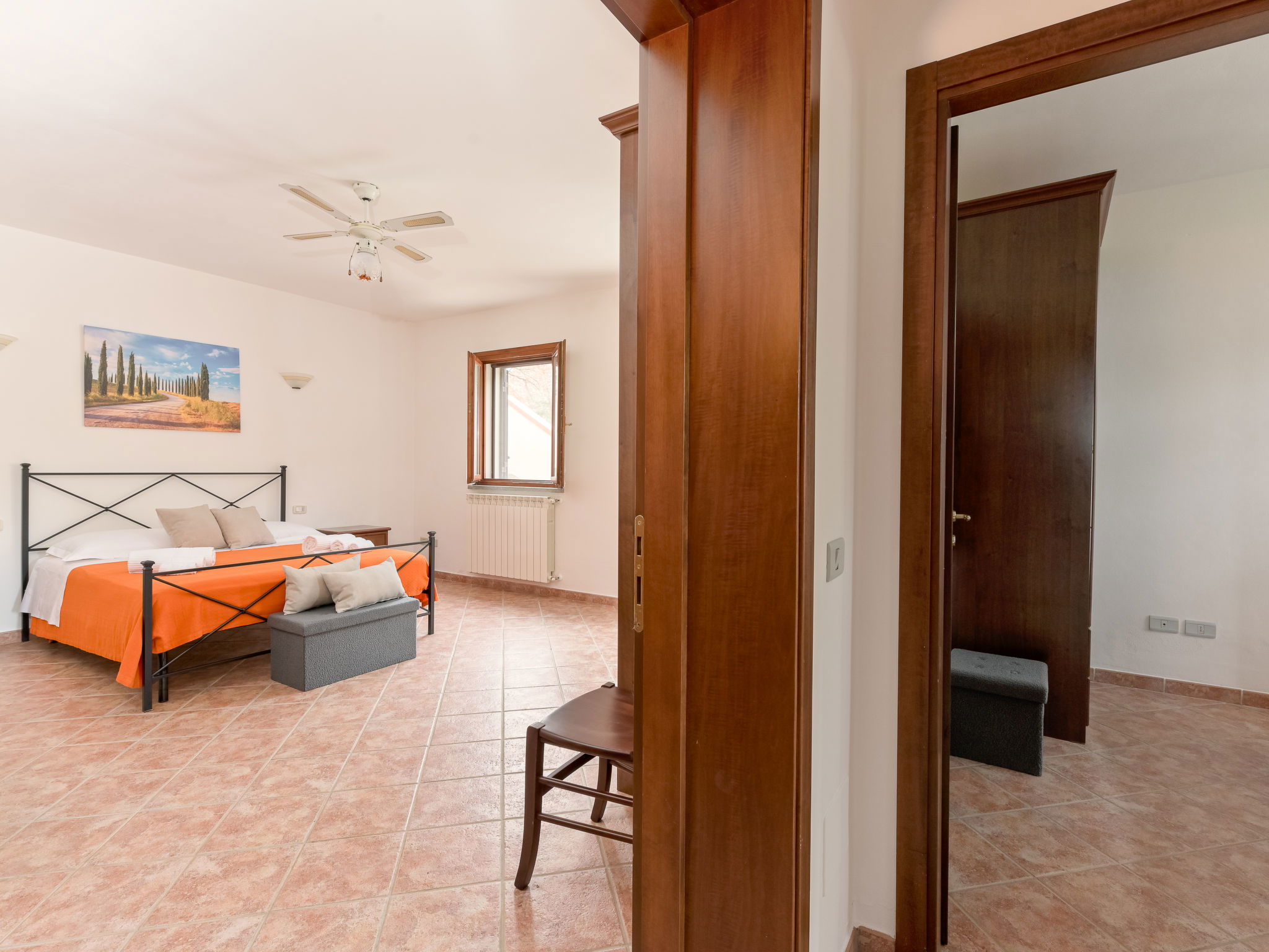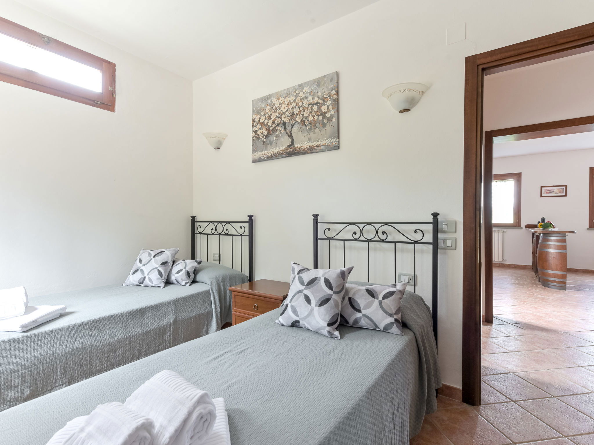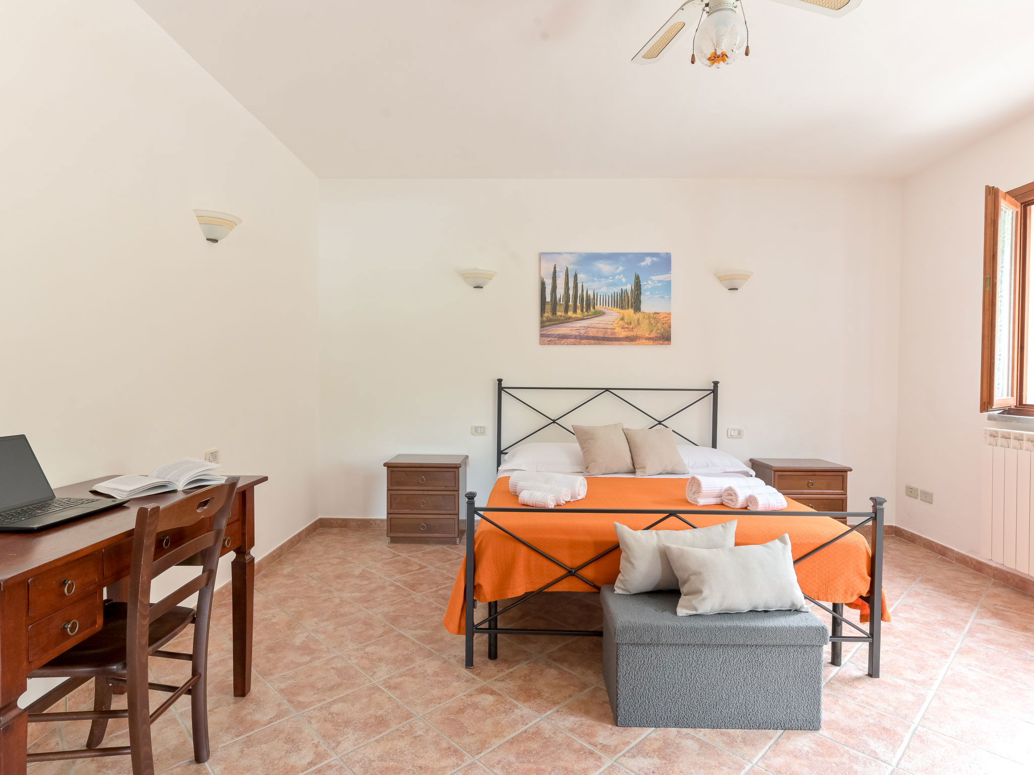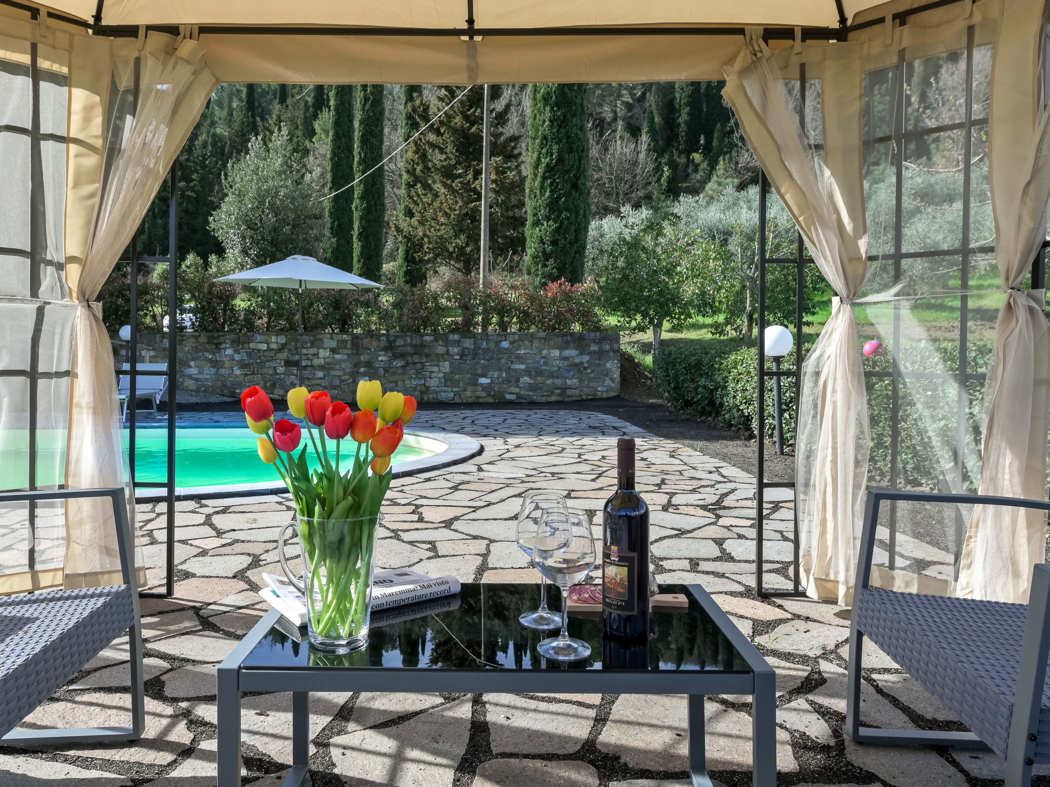 Cosy house "Il Cipresso", 2 storeys, renovated in 2025, surrounded by trees and meadows. 2 km from the centre of Montenero, 23 km from the centre of Montalcino, in a secluded, quiet position, 60 km from the sea, 60 km from the beach, in the countryside. Private: terraced garden with wildlife garden and trees, swimming pool kidney shaped (10 x 5 m, depth 124 cm, seasonal availability: 15.Apr. - 30.Oct.). Outdoor shower, pergola, garden furniture, barbecue, parking at the house. Shop 2 km, grocery 2 km, supermarket 15 km, restaurant 2 km, bar 2 km, bakery 2 km, bus stop "Montenero Bivio" 7 km, railway station "Paganico" 20 km, sandy beach "Castiglione della Pescaia" 67 km, thermal baths "Bagni San Filippo" 40 km. Nearby attractions: Cinigiano / Castel del Piano 16 km, Monte Amiata 28 km, Grosseto 46 km, Pienza 45 km, Siena 60 km. Please note: car recommended.