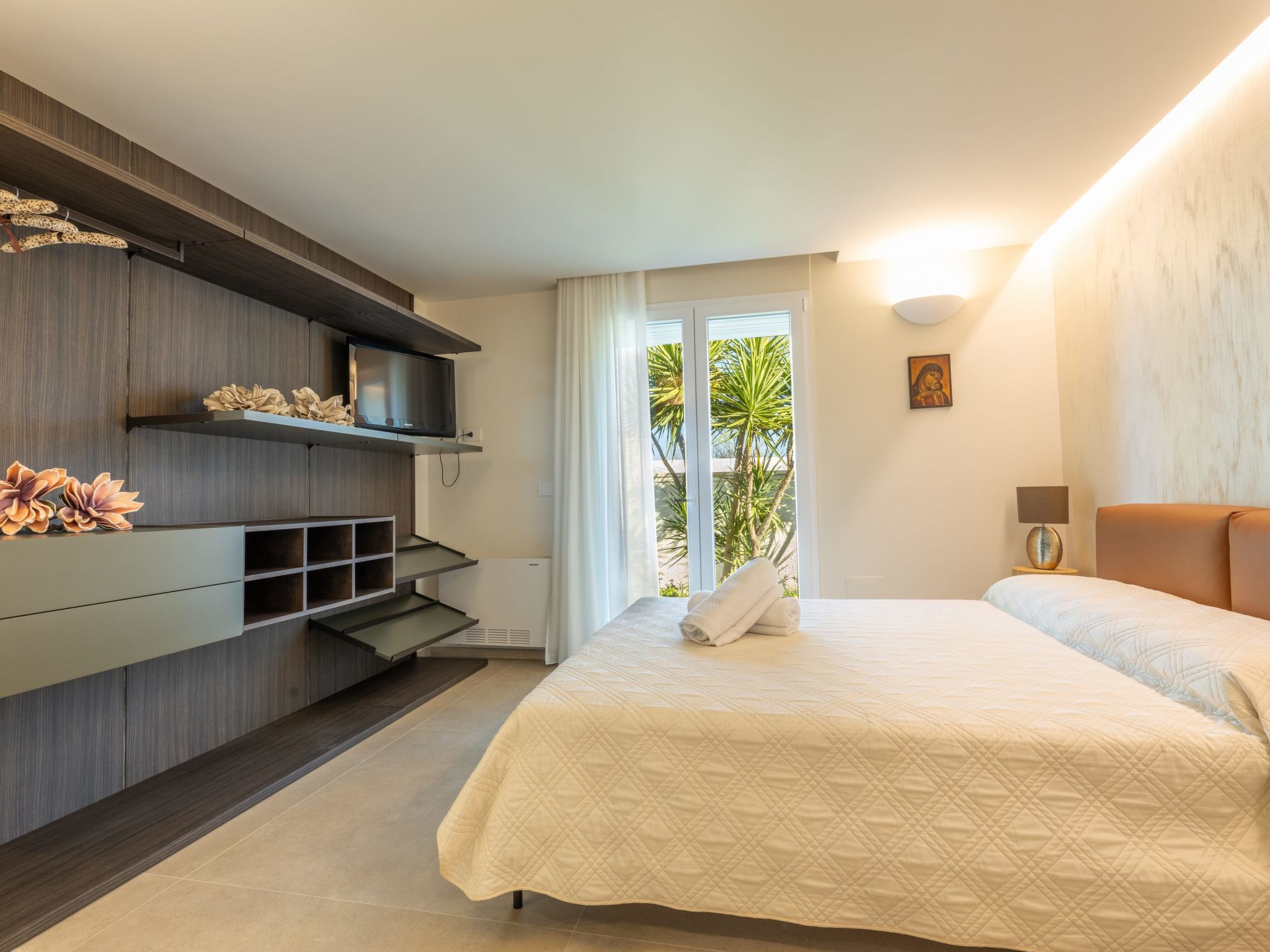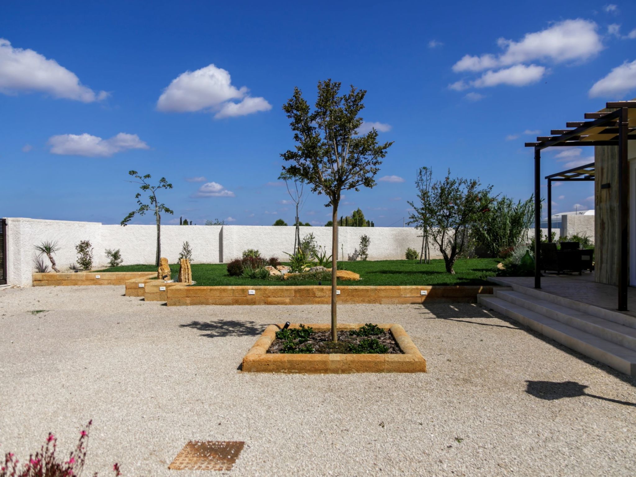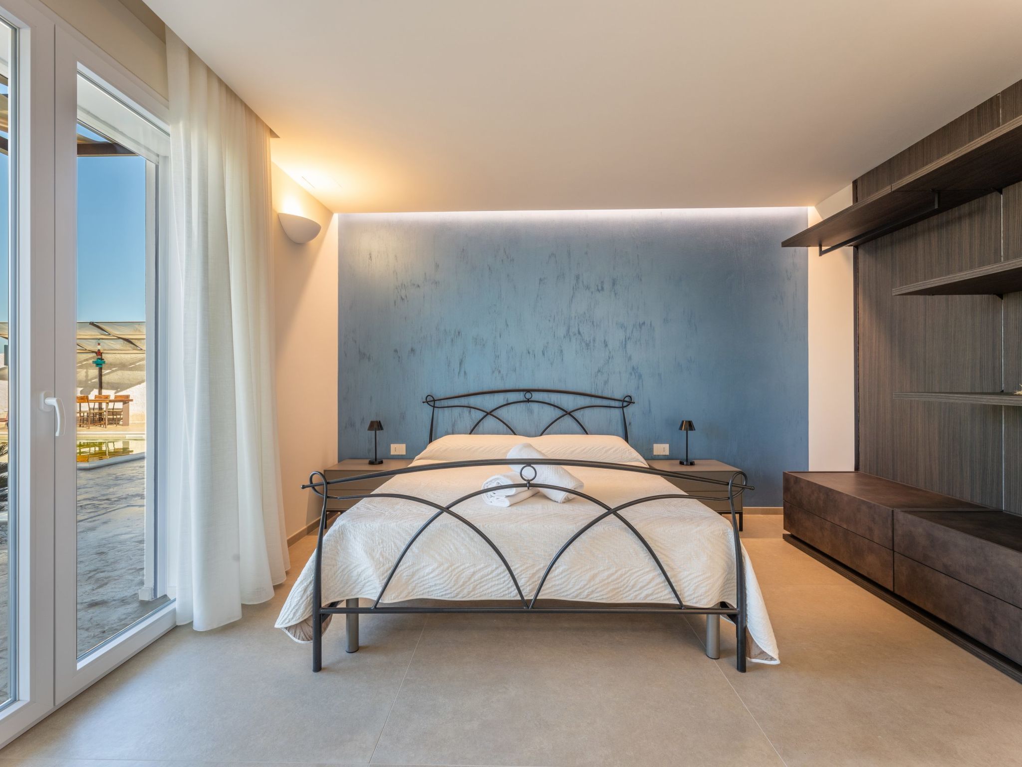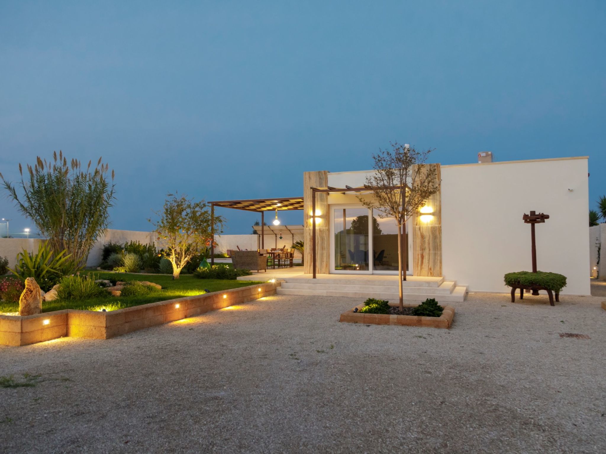 Modern, luxurious villa "Incoronata New Dependance", built in 2024, surrounded by trees and fields. 1 km from the centre of Nardò-Città del Barocco Leccese, 15 km from the centre of Gallipoli, 24 km from the centre of Lecce, in a quiet, sunny position, 3 km from the sea, 3 km from the beach, in the countryside. Private: property (fenced), large, beautiful, well-kept garden 1'200 m2 (fenced) with flowers and trees, lawn for sunbathing, swimming pool with privacy (4 x 10 m, depth 50 - 140 cm, seasonal availability: 01.Apr. - 30.Oct.). WC in the pool area, outdoor shower, pergola, garden furniture, barbecue, pool maintenance by the owner/gardener. In the house: burglar alarm system. Linen change (suppl. charge extra). Towel change (suppl. charge extra). Parking at the house. Grocery, supermarket 700 m, restaurant 3 km, bar 3 km, bakery 3 km, bus stop 700 m, railway station "Nardò" 3 km, sandy beach "Santa Caterina" 3 km, rocky beach "Porto Selvaggio" 3 km. Tennis, sports centre 350 m. Nearby attractions: Melpignano - Città della Taranta 40 km, Otranto 60 km, Santa Maria di Leuca-Punta Sud Puglia 60 km, Alberobello 143 km, Polignano a Mare 149 km, Matera 162 km. Hiking paths: Parco Naturale Porto Selvaggio 25 km, Parco Naturale Terra delle Gravine 119 km, Grotte carsiche di Castellana 155 km. Please note: car recommended. Property ref. IT6770.810.1 is situated on the same property.
