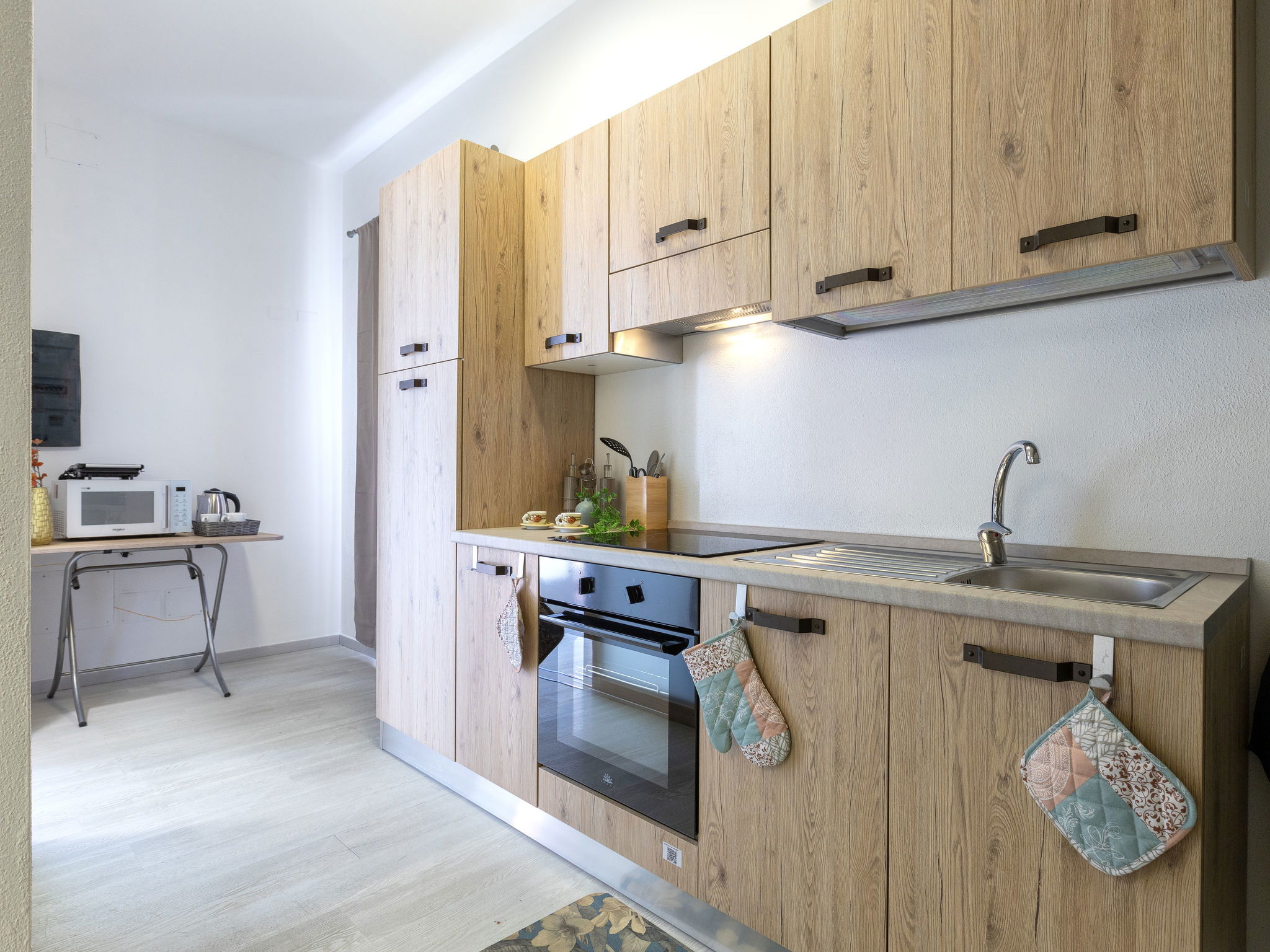"Domus Flavia", 3-room apartment 97 m2, on the upper ground floor. Spacious, fully renovated in 2025, tasteful and cosy furnishings: living/dining room with dining table and TV (flat screen). 1 room with 1 double bed, shower/WC and TV (flat screen). Exit to the veranda. 1 room, window onto the courtyard with 1 double bed and TV (flat screen). Kitchen (oven, 4 induction hot plates, toaster, kettle, microwave) with air conditioning. Shower/WC. Air-conditioning, forced-air heating, boiler (75 litres). Small terrace. Box-room. Facilities: washing machine, iron, hair dryer. Internet (WiFi, free). Parking space n 3 (fenced 1 car). Please note: apartment carpark side. Non-smoking house. Maximum 1 pet/ dog allowed. Private entrance, smoke alarm, fire extinguisher. IT090047C2000S9258