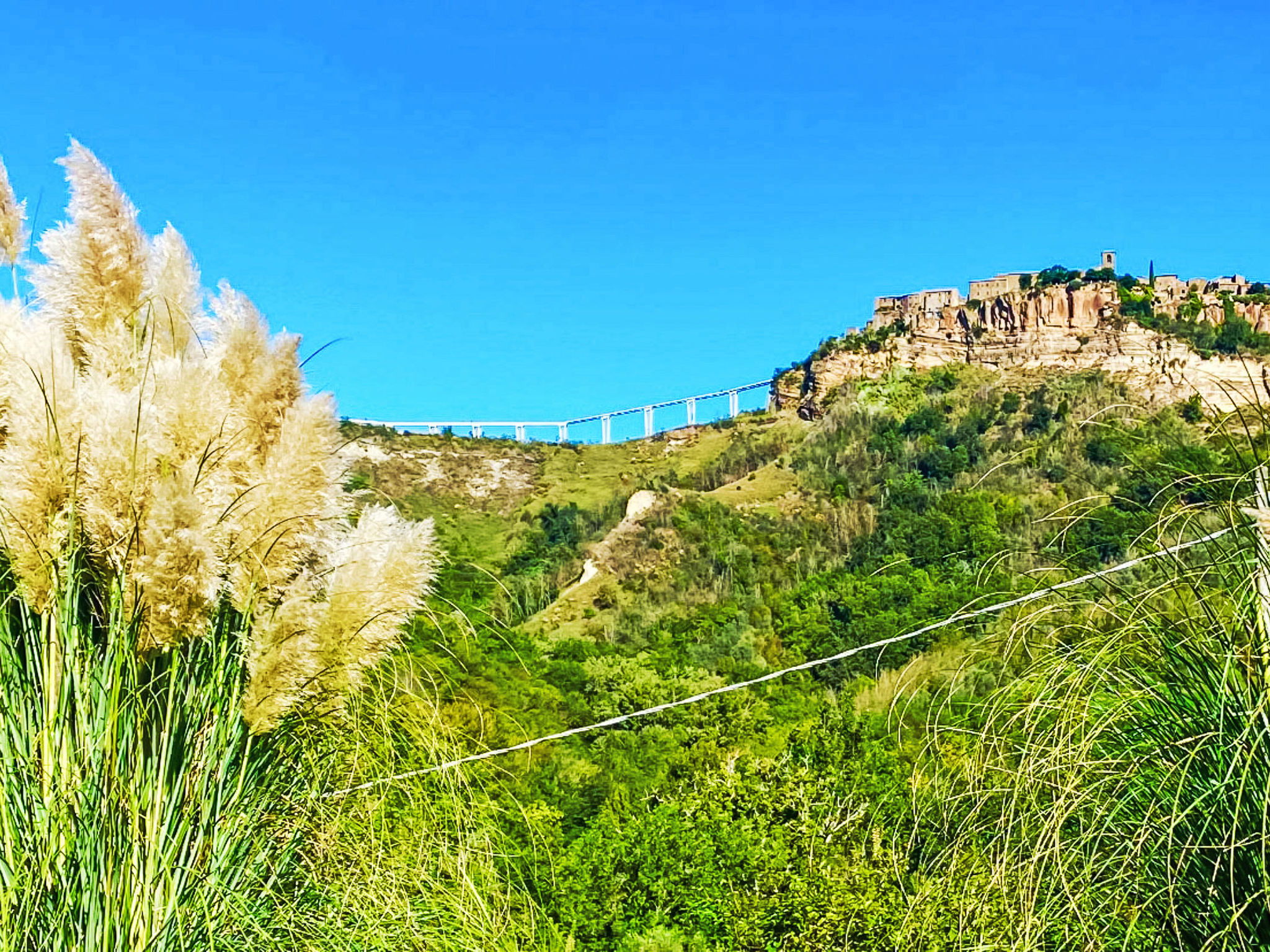 Cosy, comfortable country house "Dimora Bella Civita", detached, surrounded by fields. 5 km from the centre of Bagnoregio, in a secluded position. For shared use: property 2 ha (fenced). Private: natural garden 1'000 m2. Garden furniture, barbecue. Motor access (500 m via unmade road). Parking on the premises. Shop 5 km, grocery 5 km, shopping centre 5 km, restaurant 5 km, bus stop 500 m, lake Bolsena 17 km. Nearby attractions: Bolsena 17 km, Montefiascone 18 km, Orvieto 21 km, Marta 28 km, Capodimonte 30 km, Viterbo 30 km. Please note: car recommended. The owner lives on the same property. Owner lives in separate semi-detached house.