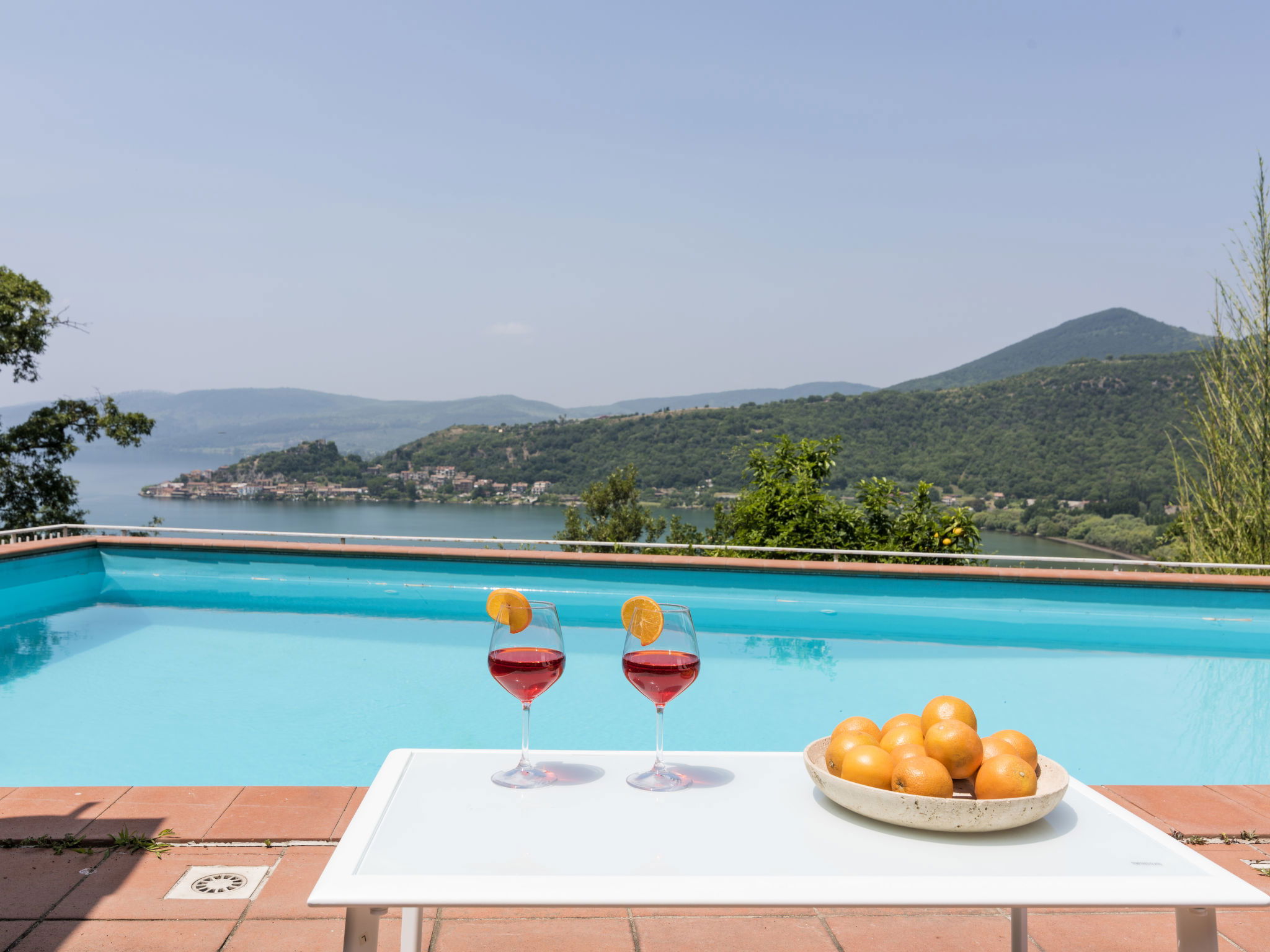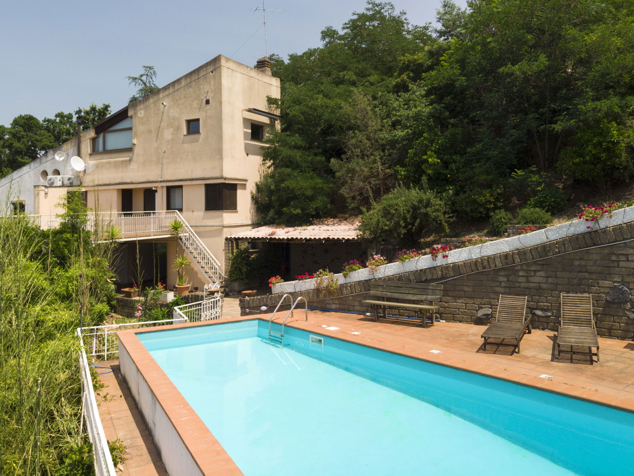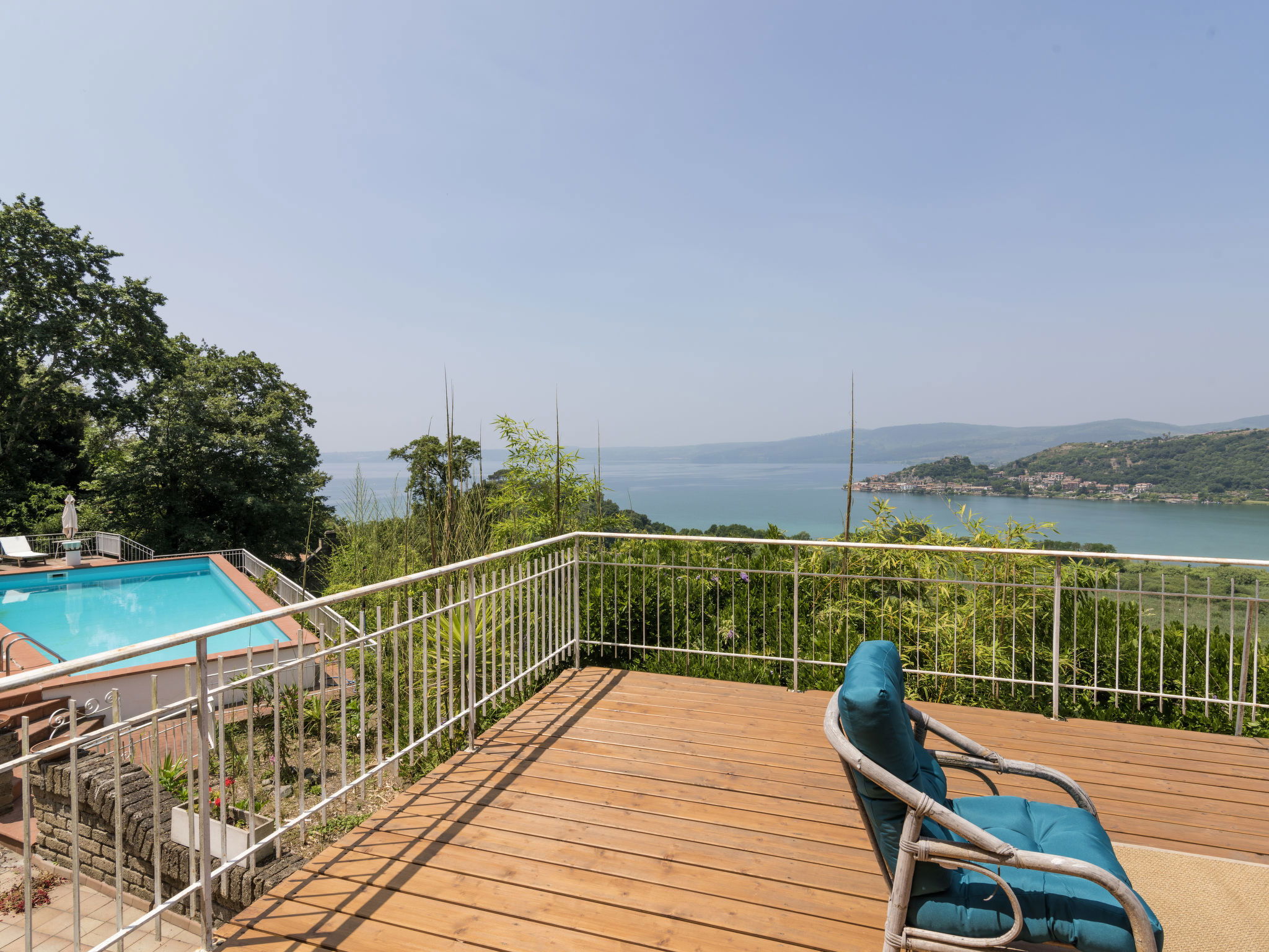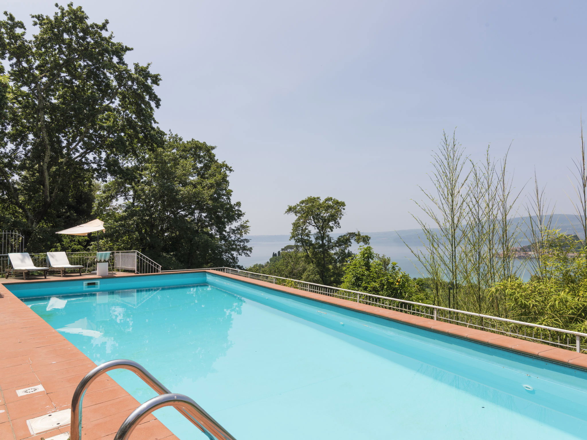 Villa "Miralago", 3 storeys, detached. 4 km from the centre of Trevignano, 40 km from the sea, 1 km from the lake. Private: terraced garden, 1'000 m2 (fenced), swimming pool (12 x 6 m, depth 280 - 150 cm, seasonal availability: 15.May. - 15.Oct.). Pool house with fridge and shower, table tennis, barbecue. 10 m long steep motor access. Roofed, parking space n 2. Grocery 3 km, supermarket 3 km, restaurant 3 km, bar 3 km, bus stop 1 km, railway station "Roma-Napoli" 37 km, grass beach 1 km. Nearby attractions: Anguillara Sabazia 8 km, Sutri 15 km, Sutri 15 km, Roma 45 km. The owner does not accept any groups. Residence with electric gates.